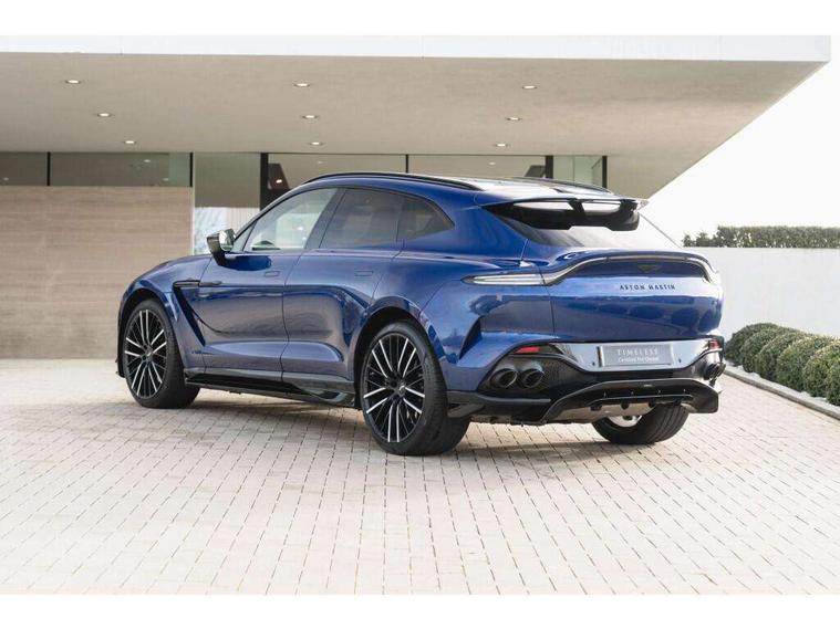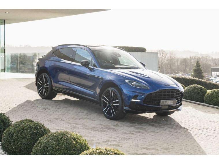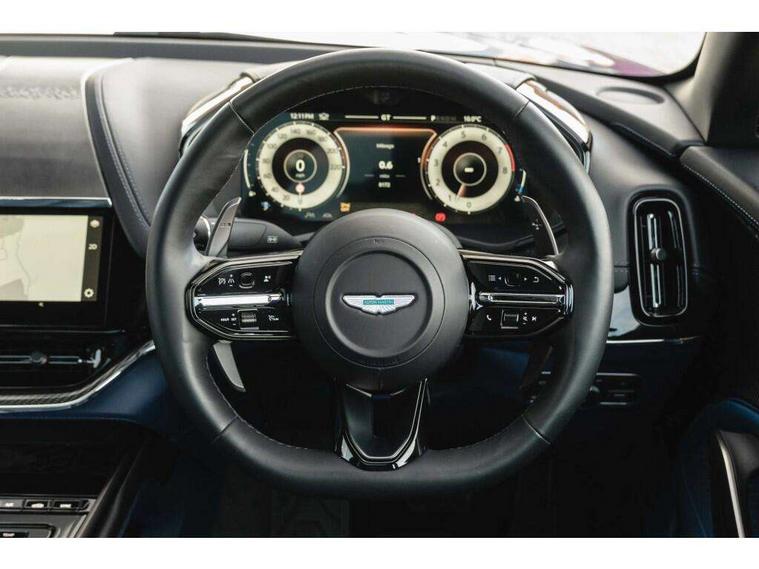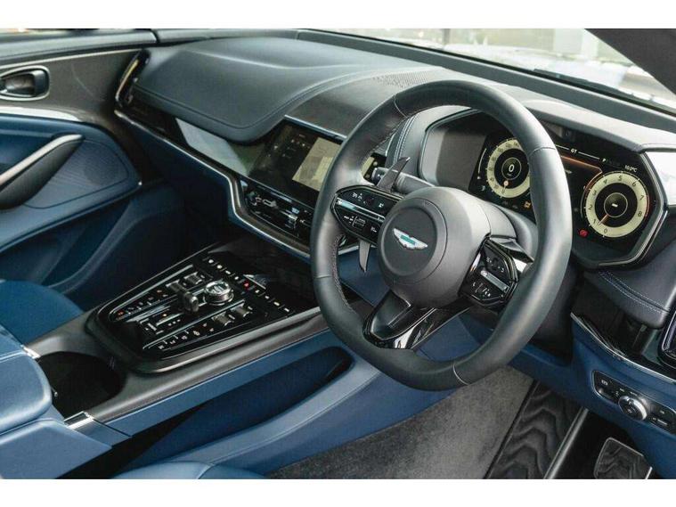 10.25" TFT centre display, 12.3" TFT instrument display, Adaptive cruise control, Apple car play/Android Auto, Aston martin satin chrome designer key, Blind spot monitoring, Bluetooth telephone connectivity, Brake pad wear indicator, Drive modes Terrain, Individual, GT, Sport, Sport + including launch control, eCall emergency call system, Electric power assisted steering (EPAS), Forward collision warning, Front parking aid with visual indicator, Inductive phone charger, Infotainment touchpad and dial, Lane change warning, Lane departure warning system (LDW), Lane keep assist, Outside temperature display, Park assist system, Rear crossing traffic warning, Rear parking aid with visual indicator, Rotary dials, Rotary infotainment system interface, Satellite navigation system, SOS emergency call button, Speed limiter, Standard underbonnet, Stop/start system, Surround camera system with deploying rear camera, Traffic sign recognition, Voice control system, 9 speed automatic transmission, Active centre transfer case, Adaptive triple chamber air suspension, All Wheel Drive (AWD), Battery conditioning connector, Electric active roll control, Electric limited slip rear differential, Electronic adaptive damping system, AM/FM radio, Aston martin premium audio, Bluetooth audio streaming, DAB Digital radio, SD card slot, USB port, 3rd brake light, Acoustic laminated front windows, Active rear brake lights, Approach Illumination, Auto dimming interior rear view mirror, Automatic headlights, Automatic high beam - AHB, Bi LED headlights, Body colour side vent, Carbon fibre rear wing lip spoiler, Electric windows, Fixed panoramic glass sunroof, Heat insulating glass, Heated rear window, Horizontal DRL/turn indicator design with larger air intakes and brake cooling grilles, LED centre high mounted stop light, LED daytime running lights, LED rear fog light, Matte black mesh bonnet vents, Power foldback door mirrors, Rain sensing windscreen wipers, Rear bumper design with integrated quarter panel vents, Rear side wing doors, Rear wiper, Sport exhaust, Standard paint protection film, 12V power sockets, 16 way electric front seats with memory, 3 seat bench in 2nd row, 40:20:40 split folding rear seats, Ambient lighting, Anodised aluminium sill plaques with aston martin wings, Automatic climate control, Black loadspace carpet, Courtesy Light, Embossed - Aston martin wings, Front and rear door pockets, Front centre console storage cover, Front head restraints, Gloss black double layer side sills, Glovebox with electric locking, Heated seats, Isofix/I size rear outer, Load rails in load space, Load tie downs in load space, Lower front console storage, Map pocket on front seat storage, Rear head restraints, Single front passenger seat, Soft close doors, Sports plus seats, Stainless steel sill protector in load space, Twin cupholders in front and rear, Twin front centre armrest, Twin sunvisors with illuminated vanity mirrors, 3x3 point rear seatbelts, Airbags - Driver and front passenger and knee, Anti theft locking wheel bolts, Anti-lock braking system (ABS), Auto vehicle hold function, Autonomous emergency braking, Carbon ceramic disc brakes, Door exit warning, EBD - Electronic brakeforce distribution, Electric parking brake (EPB), Emergency brake assist, ESC (Electronic Stability Control), Front thorax airbags/Side curtain airbags, HDC - Hill descent control, High performance braking system, Hill start assist, Intelligent wet brake control, Rear child proof door locks, Rear thorax airbags, RSC - Roll stability control, Seatbelt pre-tensioners, Seatbelt status indicator, Torque vectoring brake, Traction control, Tyre pressure monitoring system, Warning triangle, Alarm/immobiliser, Keyless entry with start/stop button, Remote central locking, Seat perforaton elegant, Seat quilting elegant,