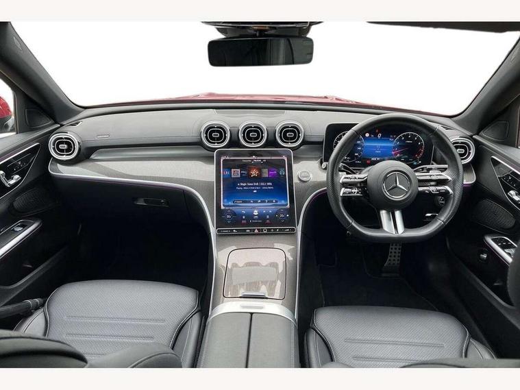 11.9" high resolution multimedia colour display, 12.3" digital instrument cluster display, Active blind spot assist, Active brake assist plus, Active lane keeping assist, Attention assist, Cruise control with speedtronic variable speed limiter, DYNAMIC SELECT with a choice of driving modes (Comfort, ECO, Sport, Sport+, Individual), E-call, Easy pack automatic powered tailgate, Extended MBUX functions, Finger print sensor, Fluorescent jacket for driver, MBUX navigation premium, MBUX voice control activated by keywords "Hey Mercedes", Mercedes connect me, Mercedes me remote services, Outside temperature gauge, Pre-installation for digital key transfer, Remote boot release, Service indicator (ASSYST), Smartphone integration, Speed limit assist, Sports direct steer speed sensitive steering, Status display for rear seat belts in instrument cluster, Traffic sign assist, Wireless charging system for mobile devices, 66l fuel tank with increased capacity, 9G TRONIC 9 speed automatic transmission, Agility control sports suspension and lowered by 15 mm, Petrol Particulate Filter, Sporty engine sound system, DAB Digital radio, MBUX multimedia system, Adaptive brake lights, Adaptive high beam assist, AMG body styling front apron, rear apron and side skirts, AMG front bumper with sporty air intakes and chrome elements, AMG rear bumper with high gloss chrome elements, AMG side skirts in vehicle colour, B-pillar trim in glossy black, Body coloured bumpers, Body coloured door mirrors, Chrome beltline trim, Chrome roof rails, Daytime running lights, Electric windows with one touch opening/closing and obstruction sensors, Electrically adjustable and heated door mirrors, Green tinted glass, Heat insulating dark tinted glass, Illuminated front door sill panels, LED high performance headlamps, LED Indicators, LED tail lights, LED third brake light, Powerdomes on bonnet, Privacy glass, Radiator diamond grille with integrated Mercedes Benz star and louvre silver with chrome pins, Radio aerial integrated into rear window, Rain sensor with automatic windscreen wiper activation, Rear side wing doors, Rear wiper, Side windows surround in polished aluminium, Two visible exhaust pipes integrated into rear bumper, 3 seat bench in 2nd row, 3 spoke flattened bottom AMG multifunction steering wheel in black nappa leather with chrome inserts and perforated leather in grip area, 40:20:40 split folding rear bench seat, AMG sports seats, Artico man-made leather upholstery, Audio and onboard settings control on multifunction steering wheel, Auto Mercedes-Benz child seat recognition sensor, Black air vents with silver chrome elements, Black floor mats with AMG lettering, Black roof liner, Door trim elements high gloss black with silver chrome surroundings and switches, Double cupholder in centre console, Folding rear seat backrest, Front and rear head restraints, Front centre armrest with storage compartment, Front door sills with Mercedes Benz lettering, Gearshift paddles on steering wheel, Heated front seats, Illuminated glove compartment stowage, Interior lighting - 64 colour Ambient lighting, Load compartment cover, Manually height and reach adjustable steering column, Overhead control unit in high gloss black, Rear top tether child seat ISOFIX attachment, Single front passenger seat, Sports pedals with stainless steel surfaces and rubber studs, Sunvisors with illuminated vanity mirrors, THERMATIC 2 zone automatic climate control, Interior lighting package - C Class, Memory package - C Class, Mirror pack - C Class, Parking package with reversing camera - C Class, Seat comfort pack - C Class, Stowage space pack - C Class, USB package plus - C Class, 3 rear 3 point seatbelts, Active bonnet pedestrian safety measure which detects an impact and raises bonnet, Adaptive brake system with HOLD function and brake drying in the wet, Anti-lock braking system (ABS), Black seat belts, Brake calipers with Mercedes-Benz lettering + perforated front brake discs, Child proof door locks, Drivers knee airbag, Drivers pelvis airbag, Dual stage driver/passenger airbags, Electric parking brake, Electronic Stability Programme (ESP), Front centre airbag between driver and front passenger seats, Front side airbags, Larger brake discs on front axle, Rear seatbelt warning indicator, Sports braking system, Tyre pressure monitoring system, Warning triangle and first aid kit, Window airbags for driver, front passenger and rear passenger, Central locking with interior switch, automatic locking and crash sensor with emergency opening function, Chrome surround in electric key, Keyless Go, URBAN GUARD vehicle protection (Thatcham Category 1) consisting of break-in, anti-theft alarm system (ATA), interior monitoring and tow-away protection, Artico man-made leather dashboard with contrast stitching, Centre console trim in metal weave, 18" AMG 5 spoke design aerodynamically optimised alloy wheels painted in tantalite grey with high sheen finish, Summer tyres, TIREFIT with tyre inflation compressor,