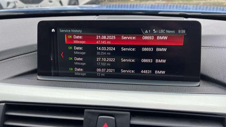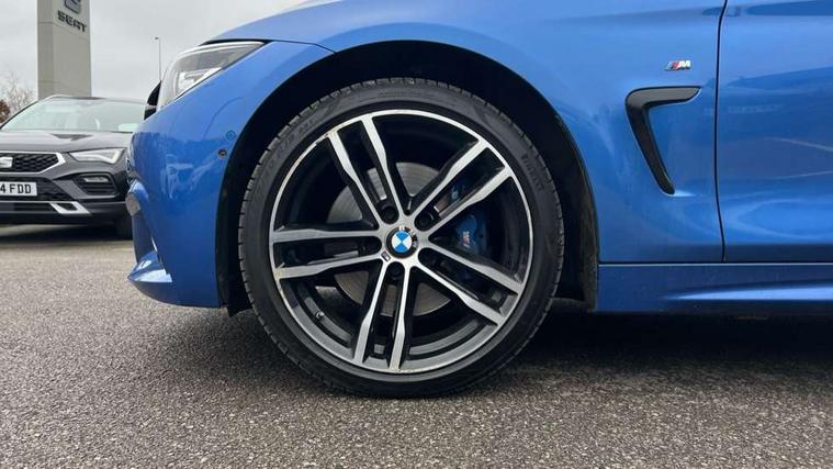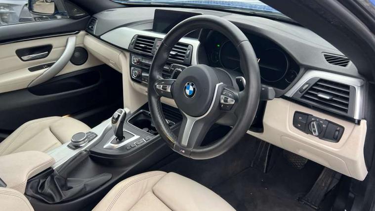 Auto start-stop, Automatic tailgate operation, BMW Online services, BMW remote services, BMW Teleservices, Brake pad wear indicator in front and rear, Check Control warning system for monitoring of lights and door/luggage compartment open warning, Condition based service, Control display - 6.5" colour display screen, Front/rear park distance control (PDC), iDrive Controller with 8 favourite buttons, Instrument cluster with speedometer with mph readout, tachometer, fuel gauge and oil temperature gauge, Lights on warning by audio warning signal when ignition is switched off, M Sport instrument cluster, Oil sensor for level and grade, warning by check control system, On board computer - average speed, fuel consumption, outside temp display with acoustic warning, clock/date, service interval, odometer/trip meter, Optimum shift indicator, Personal Profile - automatic lock when driving away selectable, Professional multimedia navigation system, Run flat indicator, Aluminium front suspension, Drive performance control with ECO PRO comfort + sport mode, Electronic differential lock, Five link rear suspension, Permanent all wheel drive, Sport automatic transmission with steering-wheel mounted gearshift paddles and launch control, VALVETRONIC engine management, DAB tuner, Auto dimming rear view mirror, Body colour door handles, Body colour front bumper, Body colour mirror caps, Body colour rear bumper, Body colour roof mouldings, Chrome kidney grille with extra wide black, high gloss black vertical slats, Direction indicator, side repeaters, integrated in exterior mirrors, Door sill finishers with M designation, Dual exhaust tailpipes in left with chrome finisher, Dynamic brake lights, Electric front windows with fingertip open/close + anti-trap facility, Follow me home headlights, Front air inlet with high gloss black finish, Front and rear bumper system, Green tinted heat protection glazing, Heated windscreen washer jets, Heated, electrically adjustable exterior mirror aspheric on driver side, convex on passenger side, High gloss black air breather, High gloss black rear bumper insert, High gloss shadow line exterior trim, High level third brake light, LED daytime running lights, LED direction indicator lenses, LED eyebrow light, LED front fog lights, LED tail lights with 3D L-shaped LED light design, Lightweight engineering, M aerodynamic bodystyling, Model designation, Rain sensor including auto headlights activation, Shark fin antenna, Two speed adjustable intervals windscreen wipers, Visible VIN plate, Welcome lighting, Windscreen with grey shadeband, 12V sockets in front centre console and passenger footwell, 2 Rear seat headrests, 3 spoke leather M sport multifunction sports steering wheel, 4 grab handles, Air conditioning and radio control panel in high gloss black, Ambient lighting - switchable BMW classic orange/ cold white LED, Anthracite headlining, Automatic air conditioning with two zone control, Bottle holders integrated into front door trim storage compartments, Chrome centre console panel highlight, Driver and front passenger seat heating, Front and rear side armrests integrated into door trim, Front folding sliding armrest with storage compartment, Front head restraints, Front sports seats, Full black panel display, Glove compartment, Interior lighting, front centre over interior mirror and rear centre automatic interior light activation when door is opened, Leather gearknob and handbrake lever, Load lashing eyes in luggage compartment, Reach + rake manual adjustable steering column, Rear child seat isofix attachment with passenger airbag deactivation, Rear coded belt buckles, Storage compartment in rear centre console, Sunvisors with vanity mirrors and ticket pocket, Toolkit located in luggage compartment, Two front cup holders with a sliding lid, Velour floor mats, Extended lighting package - 4 Series Gran coupe, Non Smokers pack, 3 point seatbelts on all seats, Airbag - Front driver and passenger, front and rear head, front side, curtain head protection, manual deactivation of front passenger airbag possible, Anti lock braking system (ABS) with brake assist, Automatic Stability Control (ASC), Battery safety cut-off, BMW emergency call, Brake drying, Brake energy regeneration, Brake pretensioning, Cornering brake control (CBC), Crash sensor activating central locking release, hazard warning lights, Dynamic brake control, Dynamic stability control + (DSC+), Dynamic Traction Control - DTC, Front and rear ventilated brake disc, Front seatbelt force limiters, Hill start assistant, Pyrotechnically pre-tensioned front seatbelts, Seat belt security check for driver, Side impact protection, Twin horns, Tyre pressure monitoring with three level warning strategy, Variable torque distribution, Warning triangle and first aid kit, Alarm system (Thatcham 1) with electronic engine immobiliser, Central locking switch for all doors, fuel filler cap and luggage compartment, Remote control integrated key with blue inset, Start/stop button with Comfort Go keyless engine start and auto Start/stop deactivation button, Reduced rolling resistance tyres, Run flat tyres,