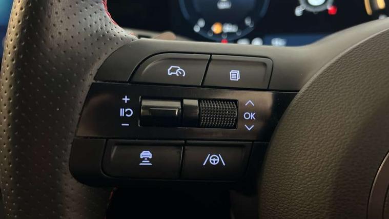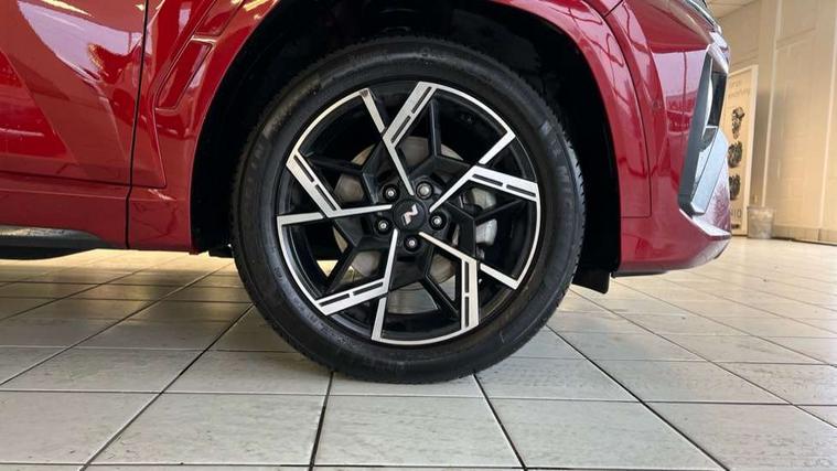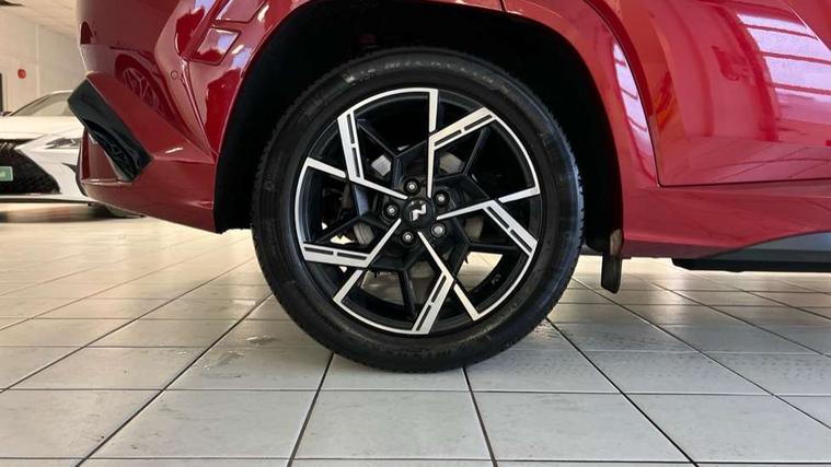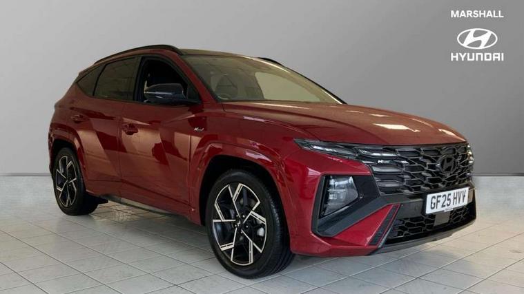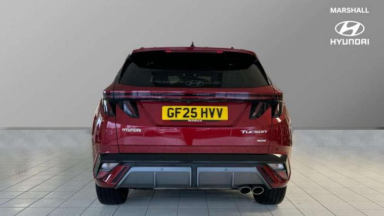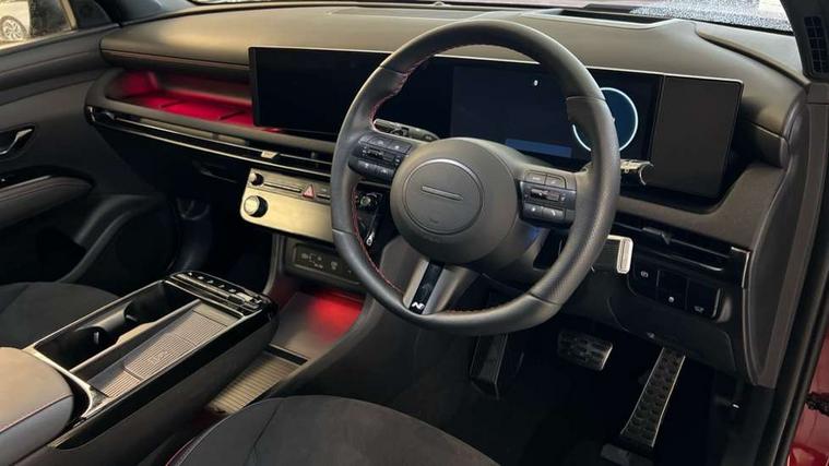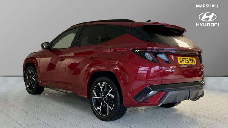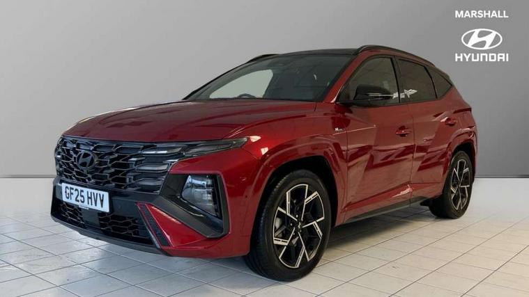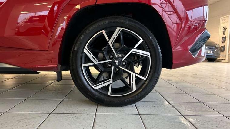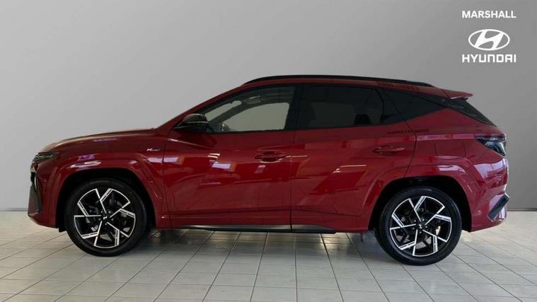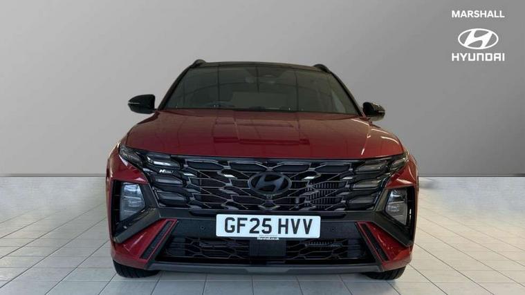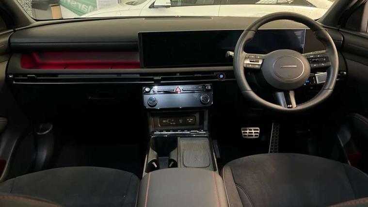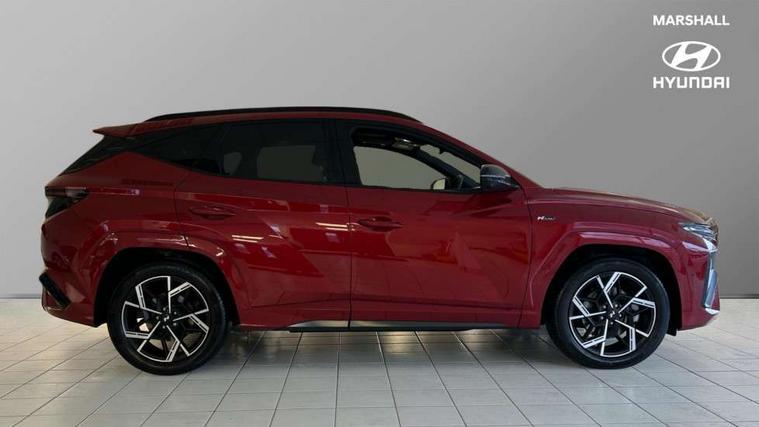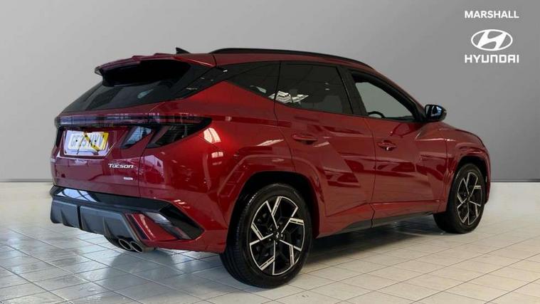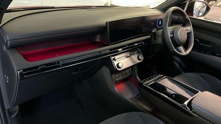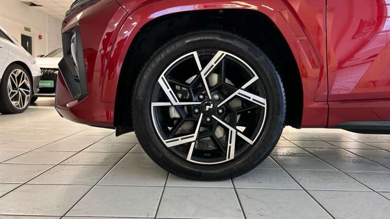 12.3" LCD display with driver's supervision instrument cluster, 12.3" widescreen navigation with bluelink and mapcare, Blind spot view monitor, Bluetooth system, Cruise control - smart adaptive speed control with stop and go function, Digital clock, Drive mode selector, Driver attention warning, E-call, Emergency stop signalling system, Forward Collision Avoidance Assist (FCA) - Car, Pedestrian and Cycle, Forward Collision Avoidance Assist Junction Turning (FCAJX), Front and rear parking sensors, Front, rear and side parking distance warning, Head up Display, Highway Driving Assist (HDA), Hyundai road side assistance, Intelligent speed limit assist, Lane follow assist, Lane keep assist, Over the air updates(OTA), Parking collision avoidance assist (PCA), PAS, Rear camera and guidance parking system, Rev counter, Smart power tailgate, Surround view monitor, Tailgate open warning light, Trip computer, Trip odometer, Voice recognition, Water temperature gauge, Windscreen washer fluid sensor and warning indicator, Wireless Apple CarPlay/Android Auto, Wireless phone charging pad, Shift by Wire Gear Selector (SBW), 2 front and 2 rear USB-C ports, DAB Digital radio, Krell premium audio system with 8 speakers and subwoofer, Steering wheel mounted audio/phone controls, Adjustable intermittent front windscreen wipers with aero wiper blade, Auto dimming rear view mirror, Automatic defog system, Automatic headlights with dusk sensor, Automatic windscreen wipers with rain sensor, Body colour bumpers, Body colour door mirrors with integrated indicators, Body colour exterior door handles, Body coloured wheel arches, Electric tilt/slide panoramic sunroof, Electrically adjustable, heated and power folding door mirrors, Follow me home headlights, Front and rear electric windows with anti-trap mechanism and one touch control, Front fog lights, Glossy black bumper mouldings, LED 3rd brake light, LED daytime running lights, LED rear lights, Matrix LED headlights, Positioning Lights - LED, Privacy glass - Rear windows and tailgate, Rear side wing doors, Rear wash/wipe with intermittent wipe setting, Roof rails, Soft touch rear door paneling, Tinted glass with windscreen shade band, Trailer stability assist, 12V power outlets in front console and luggage compartment, 3 seat bench in 2nd row, 40/20/40 split folding rear seat, 64 colours interior ambient lighting, Adjustable head restraints (Up and down), Cupholders in rear armrest, Door courtesy lights, Driver and passenger sunvisors with illuminated LED vanity mirrors, Driver's seat electric adjustments, Front and rear door pockets, Front armrest with storage box, Front centre console and door bottle holders, Front passenger's seat electric adjustments, Heated front seats, Heated rear seats, Heated steering wheel, Height/reach adjustable steering column, Illuminated/air conditioned glove compartment, ISOFIX child seat anchorage points attached on outer rear seats, Leather wrapped steering wheel and gear knob, Leather/faux textile suede upholstery, LED interior lighting, Luggage compartment lighting, Luggage cover, Luggage hooks, Luggage net, Map and reading lights, Metal pedals, Rear seat remote folding function, Rear side window sunblind, Reclining rear seats, Retractable load cover, Single front passenger seat, Sunglasses holder, Three zone climate control, Touch sensitive climate controls with temperature dials, TUCSON branded metal door scuff plate, Underfloor boot compartment, Ventilated front seats, Wireless charging with armrest, N Line design package - Tucson, N Line interior design package - Tucson, Trailer wiring package - Tucson, 3x3 point rear seatbelts, Active bonnet, Airbag - Front, front side, curtain and centre front airbags, Anti-lock brake system (ABS), Brake assist function, Childproof rear door locks, Curtain airbag roll over sensor, Downhill brake control, Electric parking brake, Electronic stability control, Front and rear seatbelt reminder, Front passenger airbag deactivation switch, Front seatbelt pretensioners, Hill start assist control (HAC), Multi-Collision braking, Outer rear seatbelt height adjustment, Seatbelt height adjustment for front seats, Traction control, Tyre pressure monitoring system with individual tyre pressure display - TPMS, Vehicle stability management, Deadlocks, Immobiliser, Locking wheel nuts, Remote control central locking, Smart key with keyless entry and engine start/stop button, Speed sensitive auto door locking, Thatcham category 1 alarm, 19" Alloy wheels, Tyre repair kit,