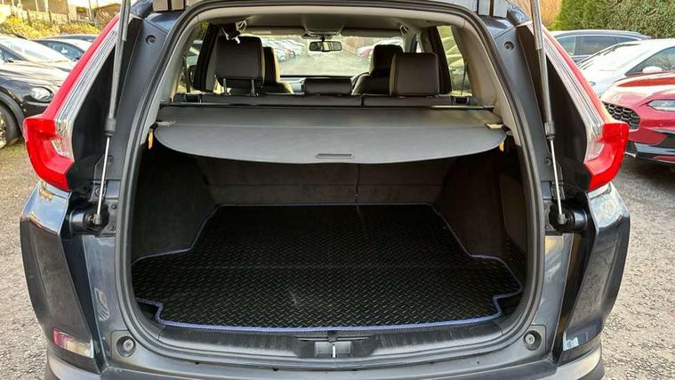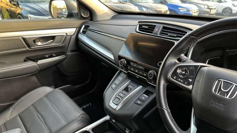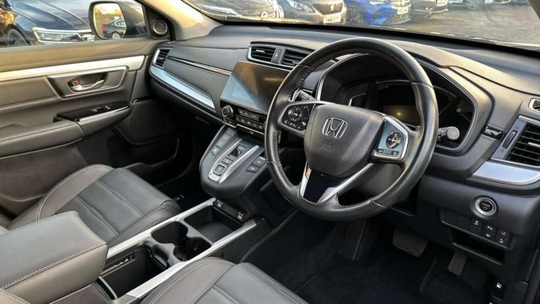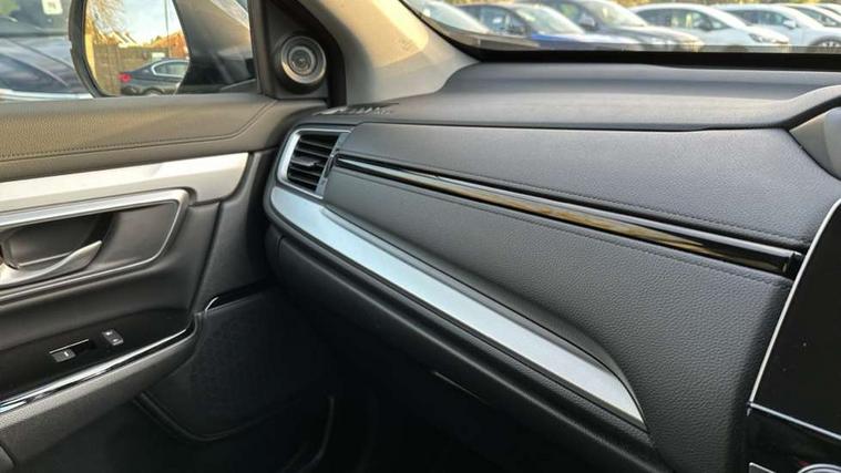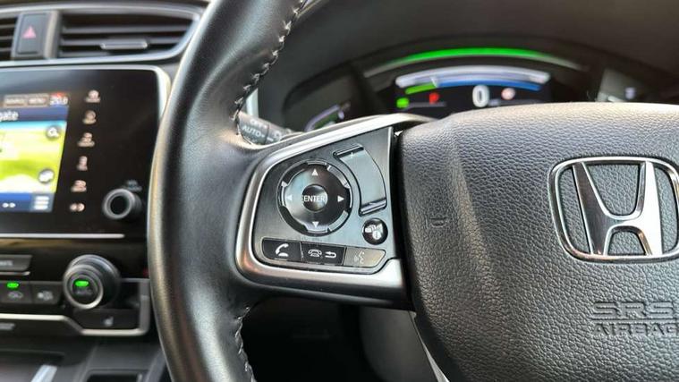 Adaptive cruise control, Agile handling assist, BLIS (Blind Spot Information System) with dual power heated blind spot mirrors, Bluetooth hands free telephone connection, E-call, Economy mode, Electric power steering, Emergency stop signalling system, Forward collision warning, Front parking sensors, Honda CONNECT with GARMIN Navigation + 7" touchscreen, DAB radio, Apple CarPlay, Android Auto, Aha app integration and internet browsing, Intelligent multi info display, Lane departure warning system, Lane keep assist system, Low speed following, Rear parking sensors, Rear view camera, Road departure mitigation, Speed limiter, Traffic sign recognition, Vehicle stability assist, 2 USB sockets in rear, 2x USB sockets in front, 9 speakers, DAB Digital radio, Dashboard centre speaker, Front tweeters, Steering wheel mounted controls, Subwoofer, Aspheric door mirrors, Auto dimming rear view mirror, Automatic headlights with dusk sensor, Body colour bumpers, Body colour door handles, Cornering light, Door mirrors tilt when reversing, Electric front windows/one touch facility, Electric rear windows + one touch facility, Electrically adjustable and heated door mirrors, Electrically retractable door mirrors, Front windscreen de-icer, High beam assist, LED daytime running lights, LED front fog lights, LED Headlights, LED rear lights, Rain sensor, Rear privacy glass, Rear side wing doors, Rear wiper, Roof rails, Shark fin roof aerial, Third brake light, Welcome home function, 3 seat bench in 2nd row, 60/40 split folding rear seat, Accessory sockets, Ambient interior lighting, AWD emblem rear, Cargo hooks, Courtesy lights, Driver's electric adjustable lumbar support, Driver/passenger front seatback pockets, Driver/passenger sunvisors with illuminated vanity mirrors, Dual zone automatic climate control, Electric lumbar adjustment on passenger's seat, Front centre armrest, Front map lights, Front passenger seat height adjust, Heated front seats, Height adjustable driver's seat, Hybrid emblem, Illuminated glovebox, Instrument panel with garnish wood film, Isofix child seat preparation, Leather steering wheel, Leather upholstery, Paddle shift controls, Rear air vents, Rear centre armrest, Rear headrests, Rear reading lights, Rear seat conversation mirror, Silver interior door handles, Single front passenger seat, Sunglasses holder with mirror, Tilt/telescopic adjustable steering wheel, Tonneau cover, Trunk light, 5 x 3 point seatbelts, ABS/EBD, Anti-whiplash front headrests, Brake assist function, Collision mitigation braking system, Deflation detection system, Driver airbag, Electronic parking brake with auto hold, Front and rear curtain airbags, Front and rear seat belts with emergency locking retractor (ELR), Front side airbags, Hill start assist, Manual child lock in rear doors, Passenger airbag deactivate switch, Honda super locks, Immobiliser, Security alarm, Smart entry + Smart start, Ultrasonic security sensor, Tyre repair kit,