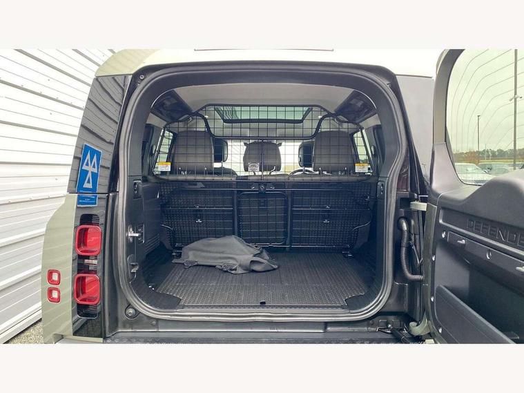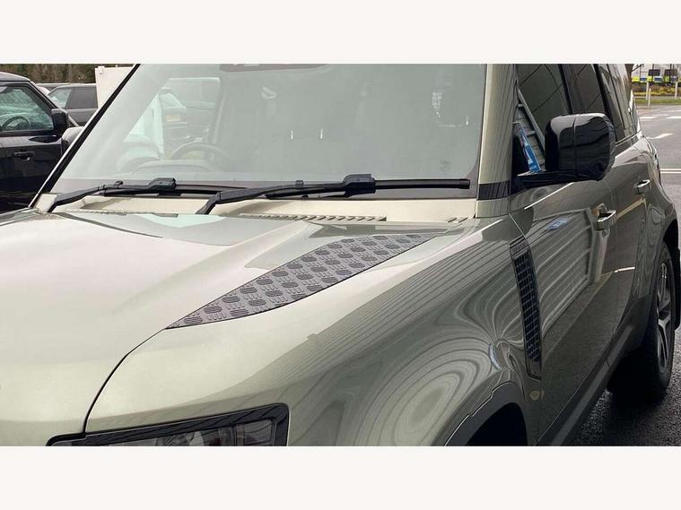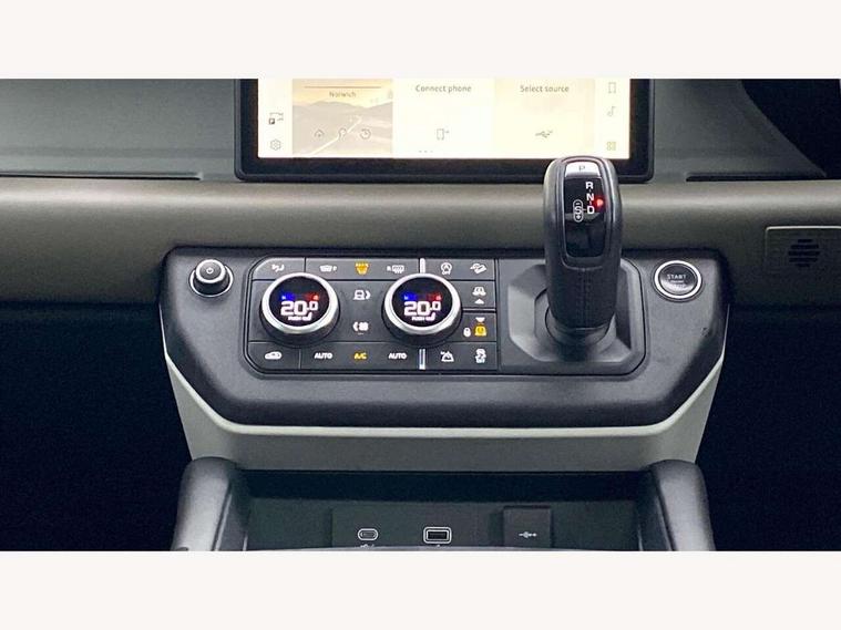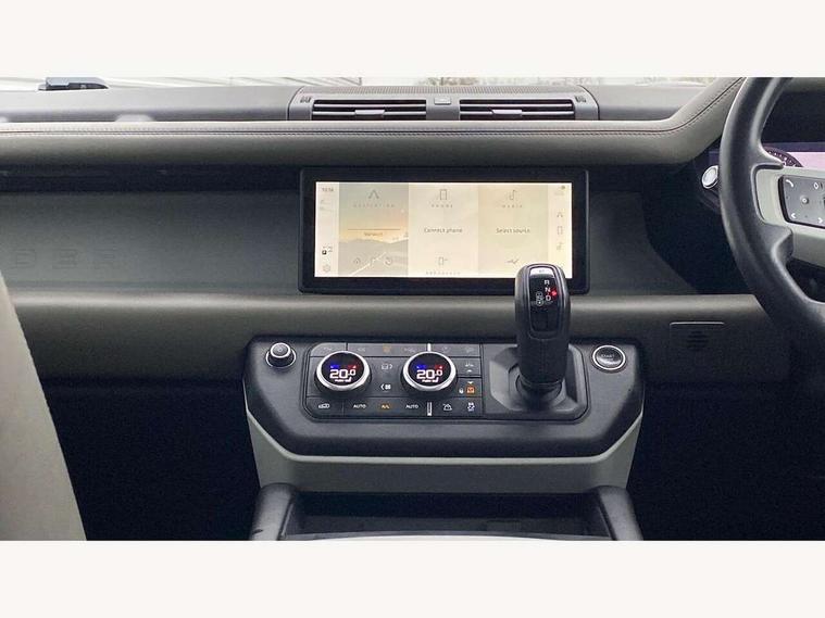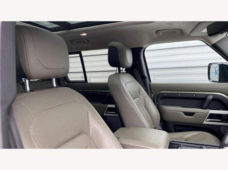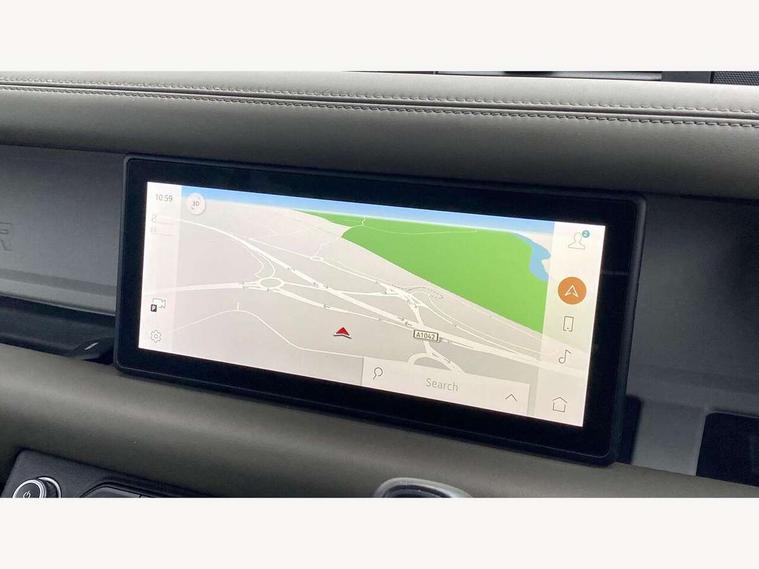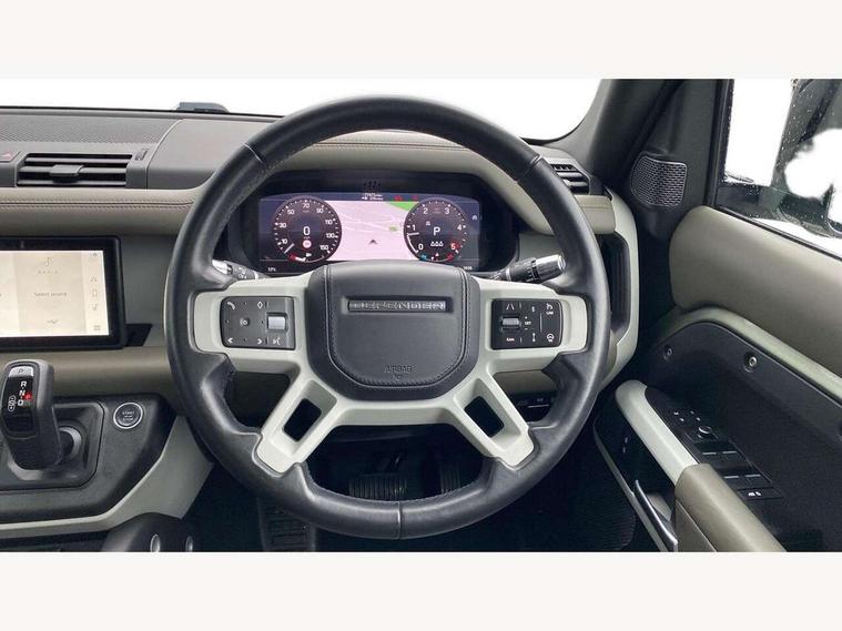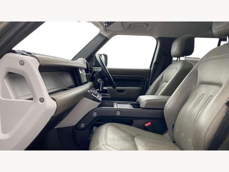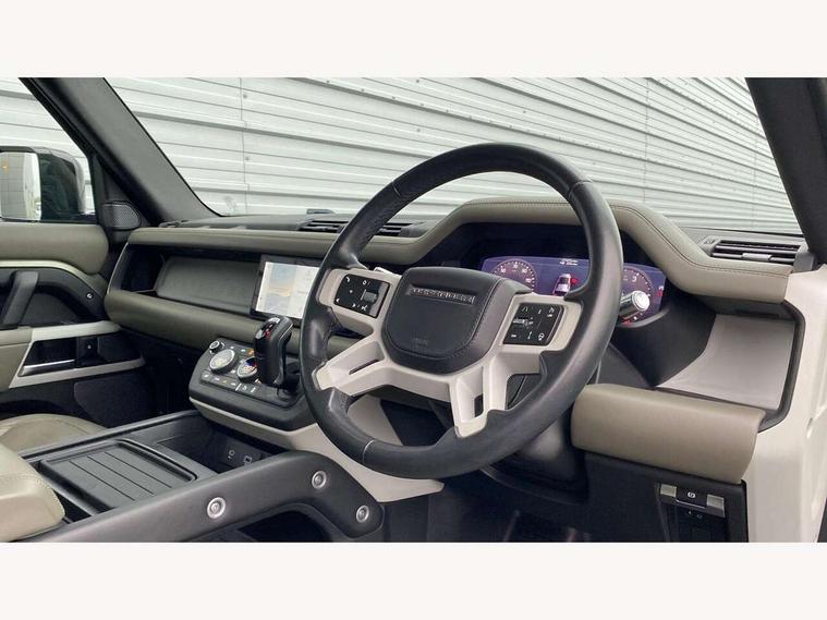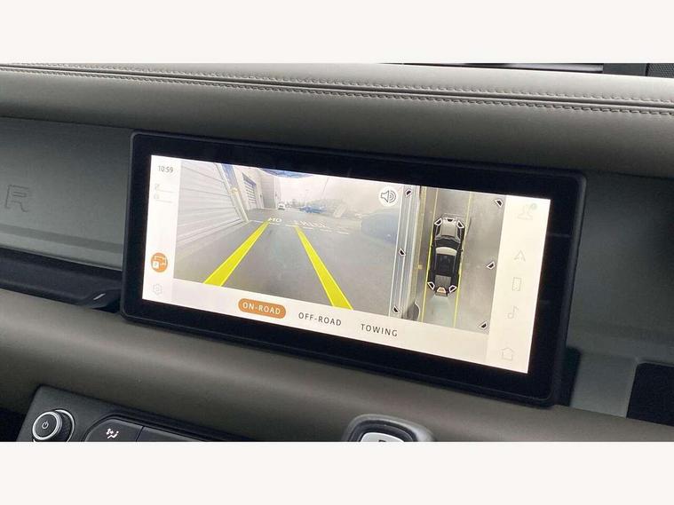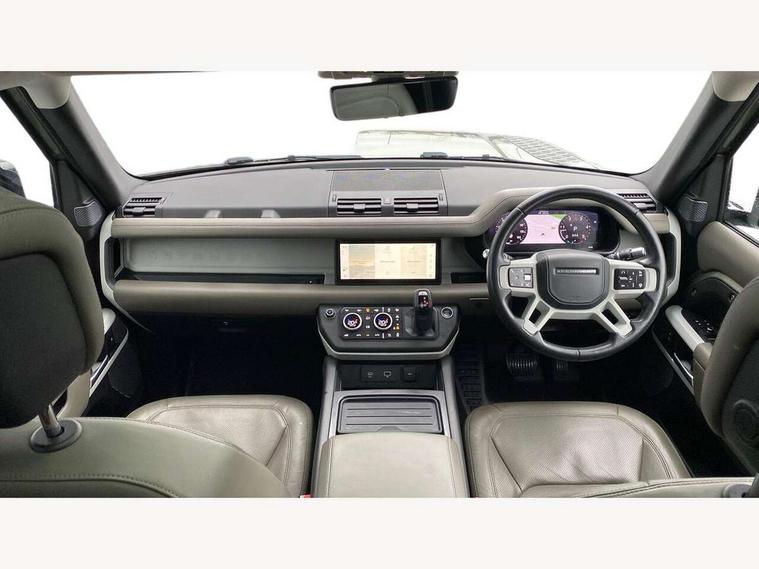 10" touch screen, 360 degree parking aid, 3D Surround Camera with 360 View, 180 Rear View, Front Traffic Detection, Forward Vehicle Guidance, Tow Hitch Assist and clear sight Ground View, Adaptive cruise control, Android Auto, Apple CarPlay, Blind spot assist, Bluetooth system, Clear exit monitor, Click and go integrated base unit, Connected navigation pro, Driver condition monitor, Interactive driver display, Lane keep assist, PAS, Pivi Pro connected navigation system with upgraded Infotainment, Rear collision monitor, Rear traffic monitor, Traffic sign recognition with adaptive speed limiter, Trip computer, Wade Sensing, Adaptive dynamics, Electronic air suspension, DAB Radio (Digital Audio Broadcasting), Automatic headlight levelling, Automatic headlights, ClearSight interior rear view mirror, Front fog lights, Heated windscreen, LED tail lights, Matrix LED headlights with signature DRL, Power fold, auto-dimming, heated door mirrors with memory and approach lights, Puddle lights, Rain sensing windscreen wipers, Signature graphic (with interior storage), Sliding panoramic roof, Standard treadplates, 14 way heated and cooled electric adjustable memory front seats with 4 way manual headrests, Carpet mats, Electric reach + rake adjustable steering column, Extended leather upgrade, Front passenger isofix child seat attachment, Heated steering wheel, Leather gearshift, Leather steering wheel, Loadspace cover, Morzine headlining, Multifunction steering wheel, Rear headrests, Rear ISOFIX, Sunvisors with illuminated vanity mirrors, Twin front cupholders with cover, Windsor leather upholstery, Online pack with data plan - Defender, 5 x 3 point seatbelts, ABS, Driver and passenger airbags, Emergency braking, ESP + traction control, TPMS (Tyre pressure monitoring system), Alarm, Immobiliser, Intrusion sensor, Keyless entry and go, Locking wheel nuts, Remote locking,