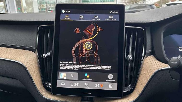 11.2" centre console touch screen, 12.3" Progressive Driver Display, 360 degree surround view parking camera with side proximity sensors, Adaptive cruise control, Adjustable steering wheel force, Android auto (Wired), Apple carplay (wired), Bluetooth handsfree system, Drive mode settings, Driver alert control with lane keeping aid, Emergency services call system, Front and rear park assist, Google Automotive Services, Intelligent speed assistance, Oncoming Lane Mitigation, PAS, Power operated tailgate with handsfree opening and closing, Service interval indicator, Speed limiter, Speed sensitive steering, Trip computer, Volvo cars services with app, Volvo on call with App, Wireless/Inductive Mobile Phone Charging, 2 phase on board charger 6.4kW (home charging limited to 3.7kW), 6m 3 phase 16amp Type 2 / mode 3 charge cable, 8 speed automatic transmission with start/stop + manual change functions, Active four-C chassis + four corner adaptive damper with electronic rear air suspension, Electric rear axle drive, Recharging port located in nearside front wing, DAB Digital radio, Low speed exterior sound speaker, Premium Sound by Bowers and Wilkins, dirac live, dolby pro logic II surround sound, 14 speakers/1100W output and subwoofer, Steering wheel remote infotainment controls, Active bending headlights with adaptive shadow technology, Adaptive brake lights with high level LED brake lights, Auto dimming interior + exterior mirrors, Automatic headlight levelling system, Automatic LED Headlights + Active high beam incorporating daytime running lights, Dark tinted windows for rear side windows and cargo area, Electric adjustable/heated/auto power folding door mirrors, Electric front+rear windows, Front aluminium tread plates, Headlight cleaning system, High gloss black door mirrors, High gloss black front and rear bumper decoratives, High gloss black mesh front grille with high gloss black surround, Home safe and approach lighting, Integrated roof rails in high gloss black, Power glass tilt and slide panoramic sunroof with sun curtain, Puddle lights, Rain sensor with automatic windscreen wiper activation, Rear side wing doors, Rear wiper, Roof antenna, Roof spoiler, Tinted windscreen, Visible VIN plate, 12V socket in front tunnel console and luggage compartment, 2 zone electronic climate control with Clean zone air quality system and pollen filter, 3 seat bench in 2nd row, A-pillar parking ticket holder, Air purifier particulate matter (PM) 2.5 filter, B Pillar ventilation, Bright metal luggage scuff plate, Centre console cupholders and storage, Charcoal floor mats, Front and rear courtesy lights, Front and rear door pocket illumination, Front cupholder illumination, Front footwell illumination, Front reading lights, Front seat cushion extensions, Glovebox compartment with illumination, Head restraints for all seats, Heated front seats, Heated steering wheel, Height/reach adjustable steering column, Illuminated luggage compartment, Illuminated vanity mirrors + ticket holder, Inner door release handle illumination, ISOFIX attachment on outer rear seats, Load cover, Load protection net, Multi directional lumbar support, Power driver seat with memory + exterior mirrors memory, Power folding rear headrests, Power passenger seat with memory, Rear armrest with cupholder, Rear footwell and front and rear side step illumination, Rear reading lights, Rear seat concealed storage, Single front passenger seat, Tailgate illumination and ambient door lighting, Underfloor stowage compartment, Versatile split folding rear seat - 60/40, Driver assist pack without Adaptive cruise control - XC60, 5 three point seatbelts, City safety with steering support with Pedestrian + cyclist + front collision warning with full auto brake and rear auto brake, Drivers knee airbag, Dual stage driver/passenger airbags, Electronic parking brake with auto hold, First aid kit, Front seats SIPS airbags, Hill descent control - Off-road drive mode, Hill start assist, IC (Inflatable Curtains) - Full Length, Passenger airbag cut-off device, Power child locks on rear doors, Run off Road Mitigation, Run off Road Protection, Seatbelt reminder and pretensioners, SIPS (Side Impact Protection System), Slippery road and hazard light alert, Stability and Traction Control with Spin control, Engine Drag Control and Corner Traction Control, Tyre pressure monitoring system, Vehicle deceleration control with Anti-lock Brake System, Electronic Brake Distribution and Emergency Brake Assist, Warning triangle, WHIPS whiplash protection system - front, Anti-theft alarm including immobiliser/volume sensor + level sensor, Key integrated remote control central locking + fuel flap with deadlocking system and auto open/close power windows, Keyless Drive (includes Keyless Entry and Keyless Start), Locking wheel nuts, Private locking for tailgate, Tailored instrument panel with contrast stitching, Summer tyres, Tyre sealant kit + 12v compressor,