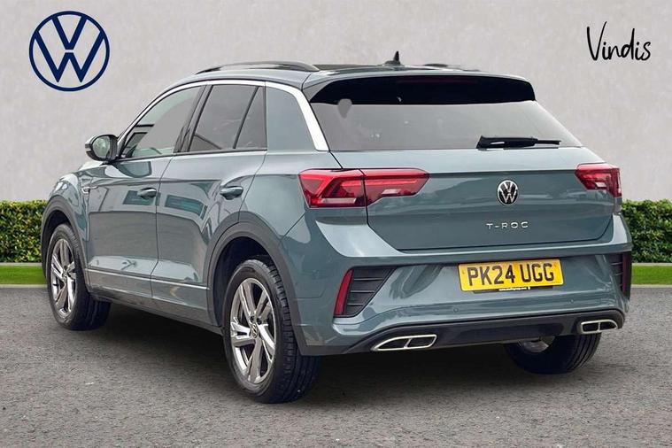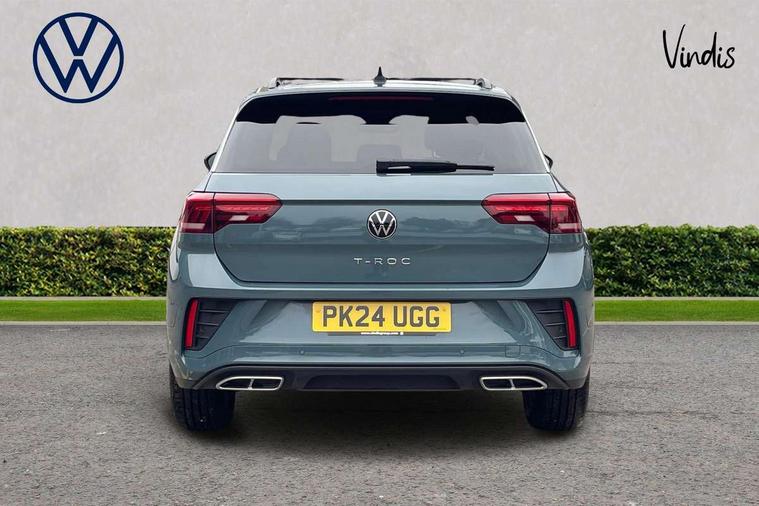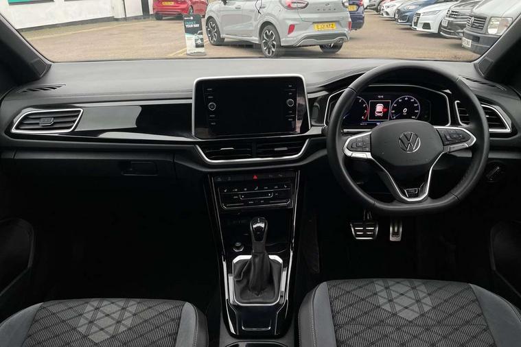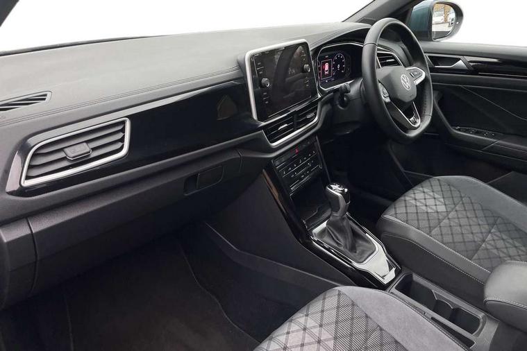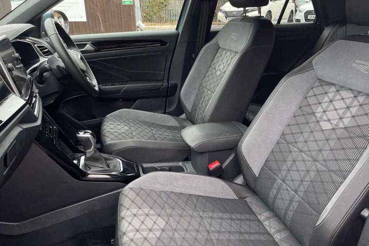 10.25" Digital cockpit pro, Advanced driver attention and drowsiness monitor, Bluetooth mobile phone interface, Emergency call service, Lane keeping system Lane Assist, Modified key software - reduce switch off time for key status change to Long no motion, Online services, Park assist including front and rear parking sensors, Service interval indicator, Tailgate/trunk lid release from outside, Think blue trainer driver tips and journey analysis, Warning sound and light for front seatbelts unfastened, Wireless app connect, Battery regeneration during braking, Start/stop function with battery regeneration, Diversity antenna for FM reception, Music playback - MP3, WMA and AAC files, Premium USB cable in choice of either Apple or Android smartphone compatibility, SD card slot, Simultaneous pairing of 2 compatible mobile devices, Title and cover art display, We Connect and We Connect Plus functionality, 3rd brake light, Auto dimming interior rear view mirror, Automatic hazard lights activation under emergency braking, Automatic headlight control with LED separate daytime running lights with coming/leaving home function, Electrically adjustable and heated door mirrors, Extended roof spoiler, Exterior mirrors aspherical on driver side, convex on front passenger side, External USB type C socket and charging sockets, Front windscreen wiper with intermittent wipe and 4 position delay, Heated rear window, LED rear combination lamps, LED rear number plate lights, Power windows with comfort operation and circuit breaker, R-Line design body coloured bumpers, Rain sensor, Rear exhaust tailpipe, Rear fog light on one side and reversing lights on both sides, Rear side wing doors, Rear wash/wipe with intermittent wipe setting, Remote electrically foldable door mirrors, puddle lights and reverse activated passenger's door mirror, 12V power socket in centre console, 3 rear head restraints, 3 seat bench in 2nd row, 4 load lashing points in luggage compartment, Air care climatronic air conditoning system with active combination filter and 2-zone temperature control, Black roof lining, Chrome plated radiator grille inserts, air vent surrounds and light switch surrounds, Door and side trim panel with leatherette insert, Front + rear carpet mats, Front centre armrest, Front cupholders x 2, Front footwell illumination, Front reading light, Front scuff plates with R Line logo, Front seat back storage pockets, Glove compartment door with light, Instrument lighting, white adjustable panel illumination, Interior ambient lighting and surround lighting, Interior light delay, Isofix child seat preparation, Leather gearshift handle, Load-through provision with cup holder when folded down ('Unsplit rear seat bench, split folding backrest, with centre armrest), Luggage compartment lighting, Single front passenger seat, Stainless steel pedals, Storage compartment in left and right luggage area, Storage compartment in rear doors, Storage compartments in driver and front passenger doors, Sunvisors with illuminated vanity mirrors, Variable boot floor, height adjustable and removable, Driver assistance pack without proactive passenger protection - T-Roc, 3 point height adj front seatbelts + pretensioners, 3 point seatbelts in outer rear with ECE label, ABS, Child locks on rear doors, City emergency braking and pedestrian monitoring, Driver and front passenger airbag with front passenger airbag deactivation, Driver and front passenger safety-optimised head restraints, Drivers seatbelt reminder, Electronic parking brake, Electronic Stability Control (ESC) inc EDL (Electronic Differential Lock) and ASR (Traction Control), Front and rear passengers curtain airbag system including front side airbags, Hill start assist, Predictive pedestrian protection, Rear disc brakes, Two tone horn, Tyre pressure loss indicator, Volkswagen roadside assistance, Anti-theft alarm system with interior monitoring, backup horn, and towing protection, Remote central locking with SAFELOCK, radio remote control with 2 remote control folding keys, Trims for alloy wheels,