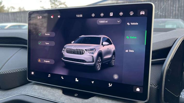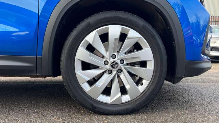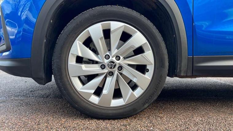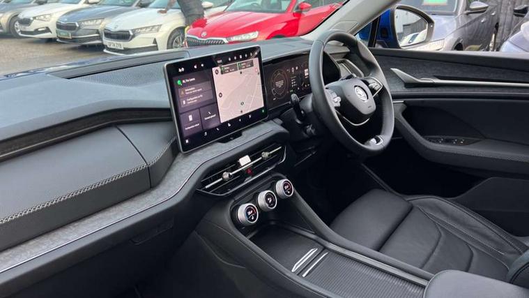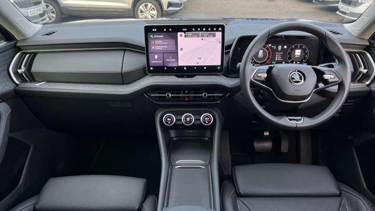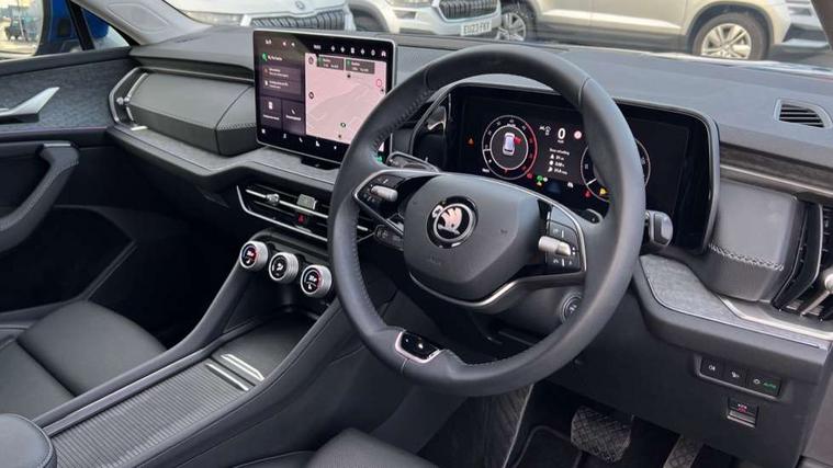 13" satellite navigation touchscreen display, Blind spot detection with door exit warning, Bluetooth system, ChatGPT functionality, Drive mode selector, Driver alert with fatigue sensor, Driver drowsiness alert system, Dry display cleaner, e call+, Front cross traffic assist, Lane assist, PAS, Rear traffic assist, Tailgate unlocking from outside, Traffic sign recognition, USB C Port x 2 in front centre console, Virtual Cockpit - 10.25" digital display, Voice control system, Wireless charging for two smartphones (15W) with cooling function, Wireless SmartLink for Apple CarPlay and Android Auto, Stop/start function, 2x USB-C in the rear, DAB Digital radio, Aero front windscreen wipers with intermittent function, Auto dimming rear view mirror, AWL (all weather lighting) and all weather light with cornering function, Black wheel arch surrounds, Body colour bumpers, Body colour door mirrors and handles, Cornering light and poor weather light, Electric folding /adjustable/separted heated/folding door mirrors, auto dimming with boarding sports and memory function, Electric front and rear windows, Exterior black decorative trims, Heat insulating glass in windshield, Heated rear window, Ice scraper in fuel tank cap, Invisible tailpipe, LED daytime running lights, LED rear fog light, LED third brake light in rear spoiler, Light assistant with automatic headlight control and coming home feature, Logo projection in door mirrors, Privacy glass, Rear side wing doors, Rear spoiler, Rear window wiper, Red decorative strip between rear LED lights, Safety reflectors on front and rear doors, Window control switches with black trim, Windscreen wipers with rain sensor, Without engine designation, 1.5l bottle holder points in all door, 12V socket in boot, 1x centre rear reading light, 2 seat bench in 3rd row, 3 configurable smart dials with 32mm coloured display, 3 seat bench in 2nd row, 4 foldable roof handles with rear coat hooks, Ambient interior lighting - Dashboard, front-door stowage compartments, front and rear door panels and footwell lighting, Automatic gear selector on steering wheel, Chrome interior door handles, Driver/front passenger reading lights, Fabric headlining, Fixed bench 40:60:40 split folding backrests, Front and rear floor mats, Front centre armrest with jumbo box storage compartment, cup holder and 12V socket, Front courtesy lights, Height adjustable front headrests, Isofix child seat fittings in outer middle row rear seats and front passenger with top tether, Manually adjustable steering column, Pollen filter, Rear centre armrest with cupholders, Rear seat boot backrest release, Retractable luggage compartment cover, Single front passenger seat, Sliding trunk cover, Small Bags on the inner sides of the front backrests, Storage pocket including mobile phone pockets on the backs of the front seats, Sunvisors with illuminated vanity mirrors, Three rear height adjustable headrests, Ticket holder on A Pillar, Tri zone climate control, Umbrella in door panel x1 made from sustainable materials, Upper and lower glovebox with card holder and coin compartment, USB C port by rear view mirror for charging only (15W), Exterior styling pack - Kodiaq, Auto door release and activation of warning lights in the event of an accident, Driver and front passenger airbag with knee airbag and front passenger airbag deactivation, Electric child locks, Electronic parking brake, ESC (incl. ABS+EMD+MSR+ASR+EDL+HBA+DSR+RBS+ESBS+MCB+TSA+XDS), Front assist with braking reaction to vehicles, pedestrians and cyclists, Front disc brakes, Fuel cut off safety device, Height adjustable front 3 point seatbelts + pretensioners, Hill hold control, Junction assist with automatic emergency braking, Rear disc brakes, Safety vest holder in door, Seat belt reminder for all seats, Three point rear seat belts, Two tone horn, Tyre pressure monitor, Anti-theft wheel bolts, Immobiliser, Remote central locking with 2 keys, Breakdown kit,