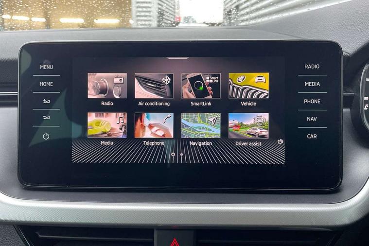 Amundsen satellite navigation with 9.2" touchscreen display, voice control, virtual cockpit and web radio, Bluetooth system, E-call, Front assist system, Lane assist, PAS, Service indicator, Speed limiter, Trip computer, Virtual cockpit with 10.25" display, Wireless SmartLink for apple car play, android auto and mirrorlink, 2 USB - C ports with 1x adaptor cable, Auxiliary input socket, DAB Digital radio, Auto dimming rear view mirror, Body colour bumpers, Body colour door mirrors and handles, Chrome grille surround, Electric folding door mirrors, Electrically adjustable and heated door mirrors, Front and rear electric windows, Headlight range control, Heated rear window, High functionality rear led lights with dynamic indicators, Privacy glass, Rear fog lights, Rear wiper, 12V Accessory socket in centre console, Chrome inner door handles, Dual zone climate control, Front gesture control, Front head restraints, Glove compartment with illumination, Ice scraper, Isofix child seat fittings on outer rear seats, ISOFIX on front passenger seat, Manual lumbar support for front seats, Pollen filter, Rake/reach adjustable steering wheel, Reading lights for driver and front passenger, Sun visor with make up mirror for front passenger, Textile floor mats, Third rear headrest, Top tether for front passenger seat, Umbrella in driver's door, 3x3 point rear seatbelts, Airbags - driver and front passenger, ESP, Front passenger airbag deactivation switch, Front side airbags with curtain airbags, Hill hold control, Manual parking brake, One tone horn, Rear disc brakes, Seatbelt reminder for driver an co-driver, Traction control, Tyre pressure monitor, Alarm with interior monitoring, back up horn and tilt sensor with safe function and towing protection, Anti-theft wheel bolts, Immobiliser, Remote central locking with SAFE system,