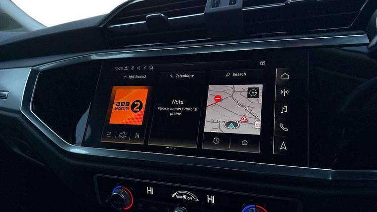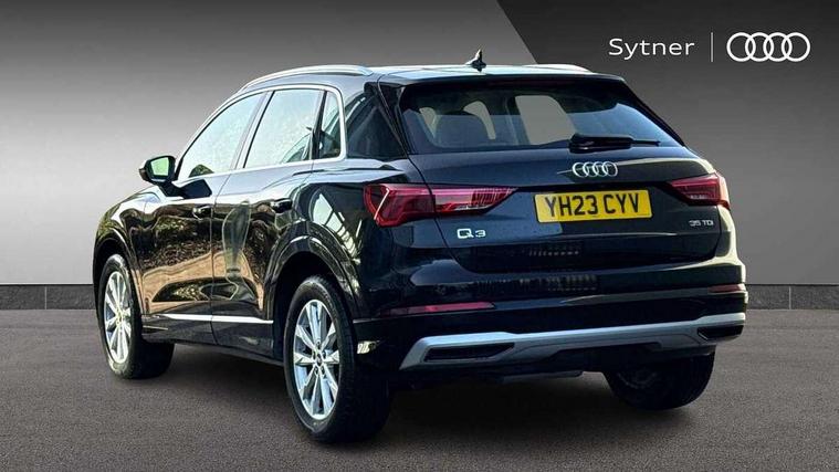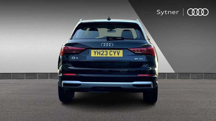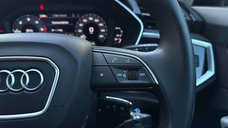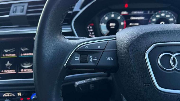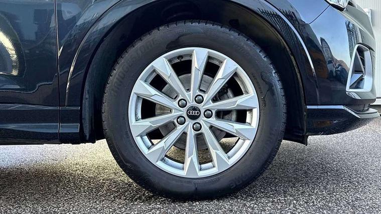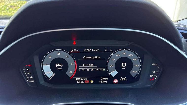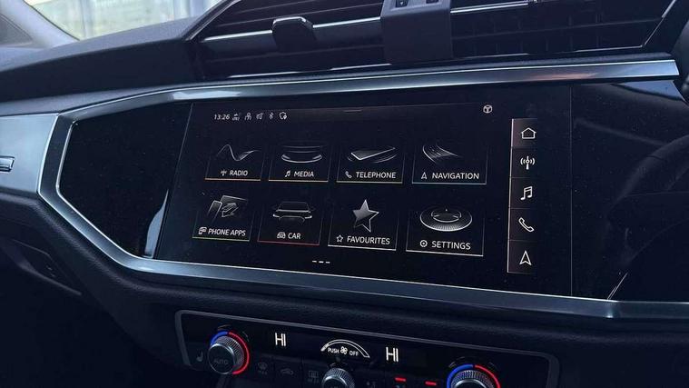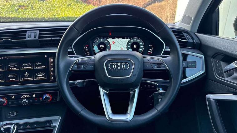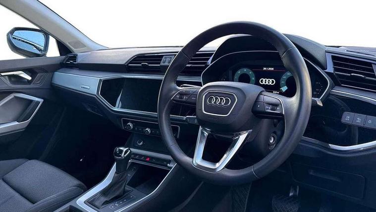 Amazon alexa Integration, Audi drive select, Audi lane departure warning, Audi Virtual Cockpit - 10.25" display, Bluetooth interface, Camera based traffic sign recognition, Legal emergency call, MMI Navigation Plus with high resolution 10.1 inch touchscreen colour display, Power operated tailgate, Progressive steering, Service interval indicator, Smartphone interface includes wireless Apple carplay/Android Auto, Start stop system with recuperation, Voice control system with natural language interaction, Diesel particulate filter, Standard suspension, 2 USB-C ports with charge and data functions, 6 passive loudspeakers, DAB digital radio module, Acoustic windscreen, Aluminium roof rails, Aluminium window trim, Anthracite black radiator grille, Auto dimming frameless rear view mirror, Body coloured bumpers, Electrically folding, adjustable and heated door mirrors with integrated LED side indicators and kerb view function for passenger side, Front and rear electric windows, Front fog lights, Front side air inlets in matt selenite silver, Front spoiler in matt selenite silver, Grille vertical bars in aluminium silver/Matt, High gloss black finish B and C pillars, LED Dynamic rear indicators, LED headlights with LED daytime running lights, LED rear lights, LED third brake light, Rain and light sensors, Rear diffuser strip in matt selenite silver, Rear side wing doors, Rear wiper, Variable front intermittent wipers, 12V socket in rear centre console, 3 seat bench in 2nd row, 3 spoke multi-function leather steering wheel, 40:20:40 folding with manual adjustment for 60:40 forwards/backwards position and backrest angle, Door sill trims with aluminium inlay, Dual zone electronic climate control, Front and rear floor mats, Front and rear headrests, Front and rear roof module including reading lights, Front centre armrest, Glove compartment lighting, Height and reach adjustable steering wheel, ISOFIX child seat mounting for front passenger with airbag deactivation and outer rear seat including top tether attachment point for outer rear seats, Luggage compartment light, Lunar silver cloth headlining, Manual front seats with height adjustment, Single front passenger seat, Stainless steel luggage compartment sill finisher, Non smoking pack - Q3, 3x3 point rear seatbelts, 6 airbags - Driver, front passenger, curtain and side windows, Audi pre-sense front with pedestrain and cyclist recognition, Electrically operated child locks on rear doors, Electromechanical parking brake, Electronic stabilisation control including ABS, ASR and EDL, Front seatbelt reminder, Hill descent control, Hill hold assist, Pre sense basic, Seatbelt monitoring, Tyre pressure warning, Warning triangle and first aid kit, Anti theft alarm, Anti theft wheel bolts, Immobiliser, Remote central locking, Aluminium look interior elements, Detail dashboard around MMI touch colour display in glass look, black with surround in aluminium look, Micrometallic silver inlay,