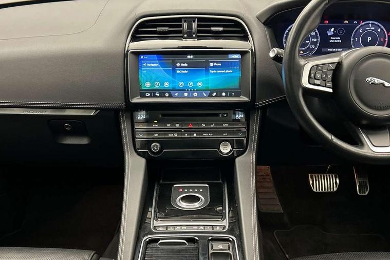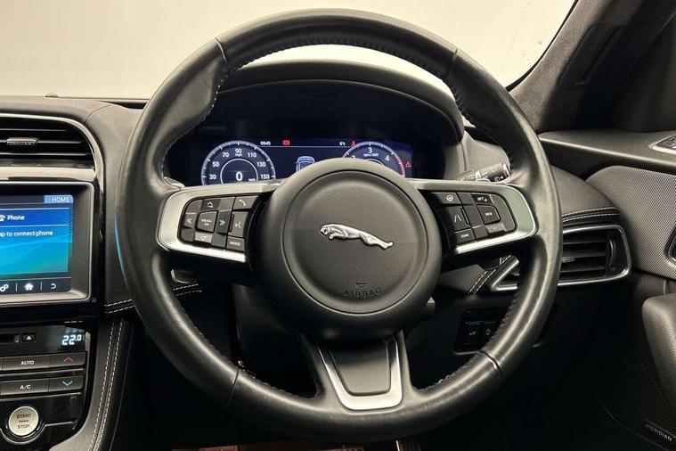 Android Auto, Apple car play, Driver condition monitor, Eco driving style assistant, Electric power assisted steering, InControl remote premium, Interactive Driver display instrument cluster, JaguarDrive control, Lane departure warning system, Lane keep assist with driver alert control, Outside temperature gauge, Pro services and wifi hotspot, Push button starter, Rotary shifter, Service interval indicator, Speed proportional steering, Start up sequence with movement in dials and lighting, Traffic sign recognition, Trip computer, Voice control system, 8 speed automatic transmission, All terrain progress control, All Wheel Drive (AWD), Open differential with torque vectoring by braking, AM/FM radio, Bluetooth connectivity including audio streaming, CD/DVD player, DAB Radio (Digital Audio Broadcasting), Dynamic volume control, InControl apps, InControl protect, 3 flash lane change indicators, Antenna roof pod in gloss black, Approach Illumination, Auto dimming rear view mirror, Automatic headlights, Body colour door claddings with gloss black finish, Body colour door mirrors, Dual tailpipes with 75mm finishers, Electric front/rear windows with one touch/auto up/down, Front fog lights, Gloss black grille with gloss black surround, Gloss black roof rails, Gloss Black side vents with Limited Edition badge, Gloss black side window surrounds, Green tinted heat insulating glass, Headlight power wash, Heated front windscreen + heated washer jets, Heated rear window with timer, Jaguar script and leaper, LED tail lights, Metallic paint, Non acoustic front windscreen, R-sport body kit, R-Sport rear bumpers, Rain sensor windscreen wipers, Rear fog lights, Rear metal tread plates, Rear wiper, S front bumpers, Trailer stability assist, Variable front intermittent wipers, 12V power point front, 3 rear headrests, 40:20:40 split folding rear bench seat, Bright metal foot pedals, Centre armrest console, Centre console with side storage, Door sill tread plates, Fold flat front seats, Front centre armrest with storage compartment, Front headrests, Glovebox finisher with jaguar script, Heated steering wheel, Hooks in loadspace, Illuminated glovebox, Illuminated luggage compartment, Interior front door handles with separate locking switches, ISOFIX on outer rear seats, Jaguar sense, Luggage tie downs in loadspace, Multifunction steering wheel, Overhead lighting console, Passive front head restraints, Perforated grained leather upholstery with contrast stitching, Premium carpet mats, Rear air vents, Rear armrest with twin cupholders, Rear centre headrest, Reversible boot floor, Satin chrome gearshift paddles, Soft grain leather sport steering wheel, Sunvisors with illuminated vanity mirrors, Twin front cupholders with cover, 3x3 point rear seatbelts, ABS, All surface progress control (ASPC), Anti-whiplash front headrests, Autonomous emergency braking (AEB) with forward facing camera, Brake pad warning light, Driver/Front Passenger airbags, DSC - Dynamic Stability Control, Electronic parking brake, Front and rear curtain airbags, Front and rear seatbelt reminder, Front passenger seat occupancy sensor, Front side airbags, Hill launch assist, Power operated child locks, Torque vectoring brake, Traction control, Tyre pressure monitoring system, Unpainted brake calipers, Immobiliser, Keyless Start, Perimeter alarm, Remote central locking, Valet mode, Luxtec door trim, Luxtec wrapped instrument panel topper with wrapped binnacle, Satin chrome centre console storage surround finishers, Satin chrome touchscreen surround,