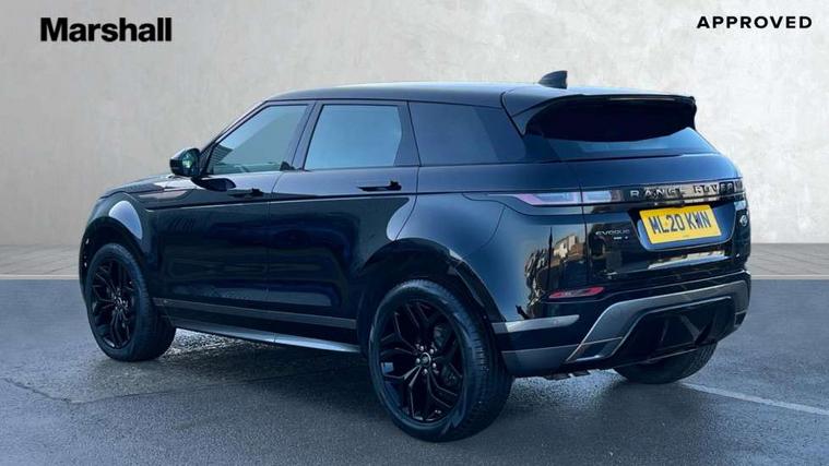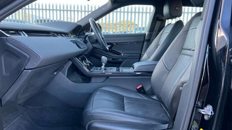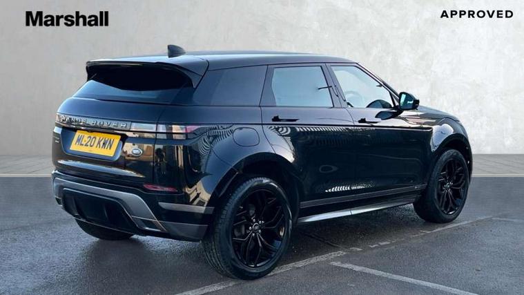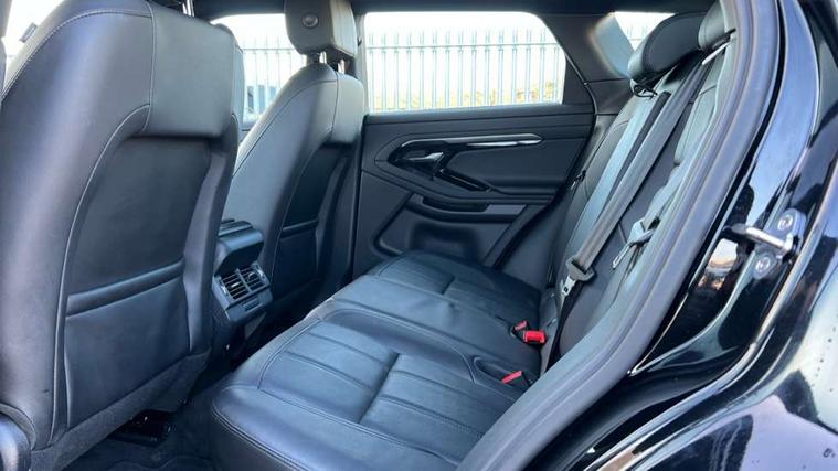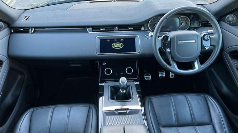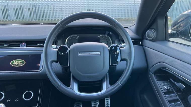 10" touch screen pro, Android Auto, Apple car play, Bluetooth connectivity, Brake pad wear indicator warning light, Cruise control + speed limiter, Driver condition monitor, Electronic power assisted steering (EPAS), InControl remote, Land Rover InControl apps, Lane keep assist, Navigation pro system, Pro services and wifi hotspot, Push button starter, Smart settings, Traffic sign recognition with adaptive speed limiter, Voice control system, Passive suspension, Digital Audio Broadcast radio-DAB, Steering wheel mounted controls, Electric windows with one touch open/close and anti trap, Evoque and R-Dynamic badge, Flush deployable exterior door handles, Heated rear window with timer, Heated washer jets, Heated windscreen, Rain sensing windscreen wipers, Rear fog lights, Shadow atlas bonnet and tailgate script, Tailgate spoiler, 40:20:40 split folding rear seats, Bright metal pedals, Isofix system on outer rear seats, Overhead lighting console, Overhead stowage for sunglasses, Passive front head restraints, Rear air vents, Rear centre headrest, Sunvisors with illuminated vanity mirrors, Twin front cupholders with cover, Twin sliding front centre armrest, 3 rear 3 point seatbelts, Anti-lock braking system (ABS), Customer configurable autolock, DSC - Dynamic Stability Control, Electronic brake force distribution, Electronic parking brake, Electronic traction control, Emergency braking, Front and rear seatbelt reminder, Hill launch assist, Power operated child locks, Roll stability control, Six airbags - Driver and passenger airbags/driver knee airbag/front side airbag and curtain airbags, Tyre pressure monitoring system, Alarm, Immobiliser, Intrusion sensor, Locking wheel nuts,