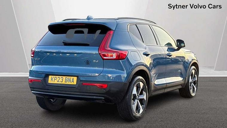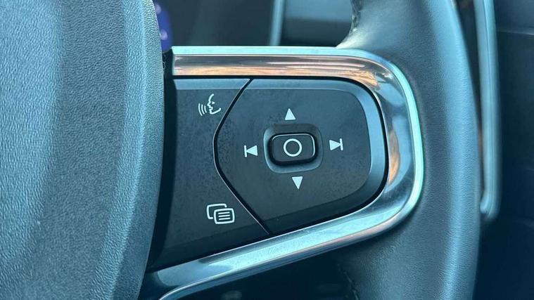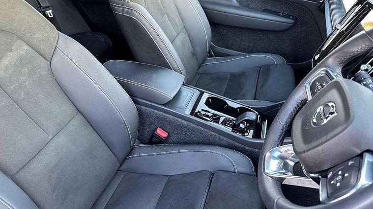 12.3" Progressive Driver Display, 360 degree surround view parking camera with side proximity sensors, 9" centre console portrait touch screen, Adjustable steering wheel force, Bluetooth hands free telephone kit, E-call, Front park assist, Google automatic services - Nav with google maps, apple carplay/android auto, voice recognition with google assistant, Hands free power tailgate, Lane keep assist with driver alert control, Oncoming Lane Mitigation, Rear park assist, Speed limiter, Speed sensitive steering, Wireless/Inductive Mobile Phone Charging, Dynamic chassis, DAB Digital radio, Premium Sound by Harman Kardon, Dolby Pro Logic II Surround Sound, Dirac Unsion, 12 speakers/600W and subwoofer, Steering wheel mounted remote controls, Active bending pixel LED headlights with adaptive shadow technology, Active high beam incorporating daytime running lights, Adaptive brake lights with high level LED brake lights, Auto dimming interior mirror, Automatic headlamp levelling, Dark tinted windows for rear door side windows and cargo compartment, Front aluminium tread plates, Front and rear electric windows, Headlight cleaning system, High gloss black front and rear skid plate, High gloss black mesh front grille with high gloss black surround, High gloss black window trim, Home safe and approach lighting, Integrated roof rails in high gloss black, LED front fog lights, Power glass tilt and slide panoramic sunroof with sun curtain, Puddle lights, Rain sensor with automatic windscreen wiper activation, Rear side wing doors, Rear wiper, Roof antenna, Roof spoiler, Visible VIN plate, 12V socket in front tunnel console and cargo compartment, 2 zone electronic climate control with clear zone air quality system and pollen filter, 3 seat bench in 2nd row, 3 Spoke tailored steering wheel with chrome trim, 60/40 versatile split folding rear seat, A-pillar parking ticket holder, Ambient front door and instrumental panel lighting, Centre console cupholders and storage, Flexible load floor and grocery bag holder, Floor mats, Front door pocket and front cupholder illumination, Front footwell illumination, Front headrests, Front reading light and theatre lighting, Front seat cushion extensions, Front tunnel pocket, Glovebox bag hook, Heated front seats, Height adjustable passenger seat, Height/reach adjustable steering column, High gloss centre tunnel deco, Illuminated glovebox, Illuminated luggage compartment, Illuminated tailgate, Illuminated vanity mirrors, Integrated waste bin, Isofix attachments on rear seats, Load protection net, Multi directional lumbar support, Power driver seat with memory + exterior mirrors memory, Power folding rear headrests, Power passenger seat, Rear armrest / integral cup holders / storage tray, Rear reading and courtesy lights, Single front passenger seat, Underfloor cargo storage, Climate pack without heated front seats - XC40, Driver assist pack - XC40, 3x3 point rear seatbelts, City safety with steering support with Pedestrian + cyclist + front collision warning with full auto brake and rear auto brake, Drivers knee airbag, Dual stage driver/passenger airbags, Electronic parking brake with auto hold, First aid kit, Front and outer rear seatbelt reminder and pretensioners, Front seats SIPS airbags, Hill descent control, Hill start assist, Inflatable curtain, Passenger airbag cut-off device, Power child locks on rear doors, Road sign information display, Run off Road Mitigation, Run off Road Protection, SIPS (Side Impact Protection System), Slippery road and hazard light alert, Stability and Traction Control with Spin control, Engine Drag Control and Corner Traction Control, Tyre pressure monitoring system, Vehicle deceleration control with Anti-lock Brake System, Electronic Brake Distribution and Emergency Brake Assist, Warning triangle, WHIPS whiplash protection system - front, Anti-theft alarm including immobiliser/volume sensor + level sensor, Key integrated remote control central locking + fuel flap with deadlocking system and auto open/close power windows, Keyless drive includes keyless entry and keyless start, Locking wheel nuts,