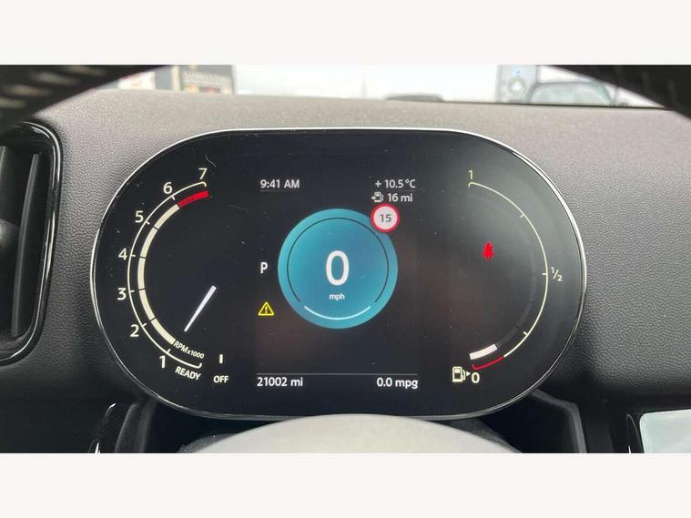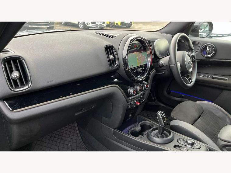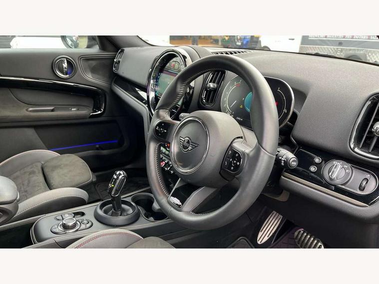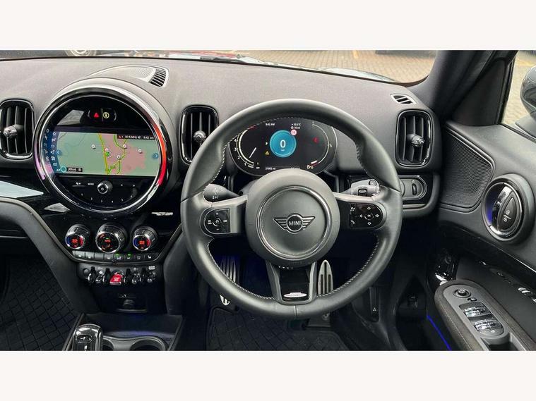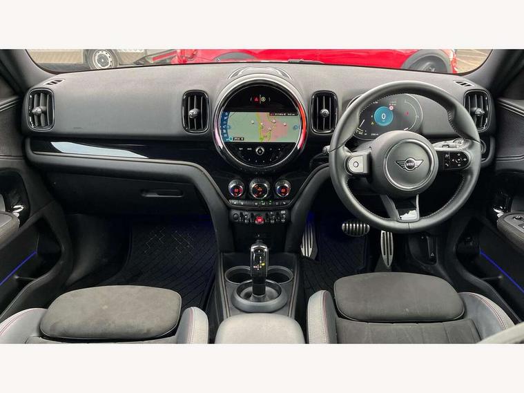 Active Guard incl speed limiting and lane departure functions with auto steering, and front collision warning with brake intervention, Automatic start/stop function with brake energy recuperation, Compatible mobile phone bluetooth with audio streaming, Cruise control with brake assist, Electro-mechanical speed dependant steering assistance, Instrument cluster, MINI Driving Modes - centre toggle switch to control driving setting (sport, mid and green), Mini E-call, On board computer, Double Vanos system, Fully variable valve control, High precision injection, Performance Control, Steptronic transmission with double clutch, FM tuner and DAB digital radio, 3rd brake light, Body colour fuel filler cap, Day time driving lights, Door sill strips, Dynamic brake lights, Electric windows, Heated rear window, Heated windscreen washer jets, John Cooper Works - aerodynamic kit (front and rear apron, spoiler), front and rear sport bumpers and part-painted side sills with door sill finishers, John Cooper Works Logo, LED fog lights, Model logo, Model logo on Tailgate, Rain sensor with auto headlights, Rear fog lights, Rear side wing doors, Rear window wiper, Side scuttle panel with integrated indicator, Split rear doors, Sun/heat protection glass, White indicator lenses, 12V socket in centre console, 3 seat bench in 2nd row, 360L luggage compartment capacity, 4 lashing eyes in luggage compartment, 40:20:40 split folding rear seats, Anthracite headlining with grab handles and clothes hooks, Chrome interior highlights, Colour line - Carbon black, Cupholders, English handbook, Front headrests, Glove compartment, Height and length steering column adjustment, Interior lighting with 12 basic colours selectable via toggle switch in roof, Isofix rear child seat preparation, LED reading lights, vanity mirror lights, front foot well light and spotlight on front seats, Mini John Cooper Works leather gearshift lever and handbrake gaiters, Multifunction steering wheel, Nappa leather steering wheel with MINI Yours logo, Rear headrests, Single front passenger seat, Stainless steel pedals and foot rest, Storage compartments in doors, Sunvisors with vanity mirrors, Excitement pack - Countryman, Navigation pack - Countryman, Piano black exterior pack - Countryman, 2 tone horn, 3 point seatbelts on all seats, 6 Airbags - front, side, head and seat belt tensioners, Anti-lock braking system (ABS), DSC - Dynamic Stability Control, Electronic handbrake, Front and rear disc brakes, Hill start assist, Manual rear child locks, Tyre pressure monitoring system, Alarm system with tilt sensor, monitoring doors, bonnet interior and tailgate, Auto drive away locking, Deadlocking function, Electronic vehicle immobiliser, Locking wheel bolts, Start/stop toggle with keyless go, Piano black JCW interior trim, Tool kit,