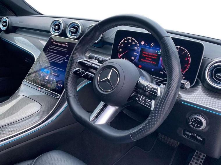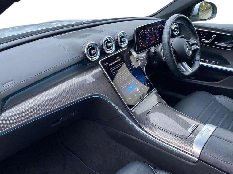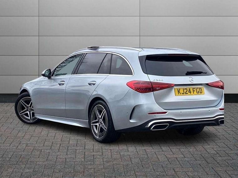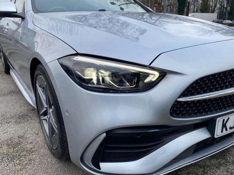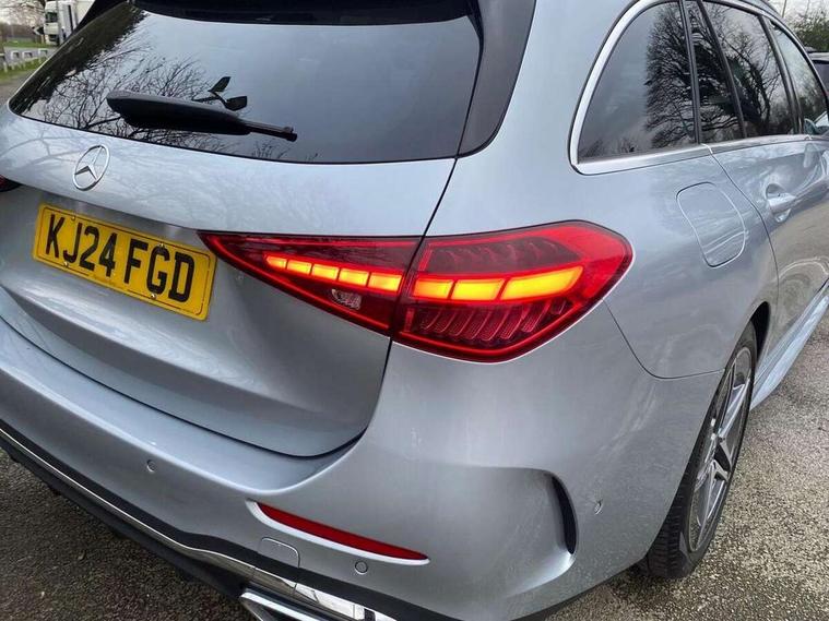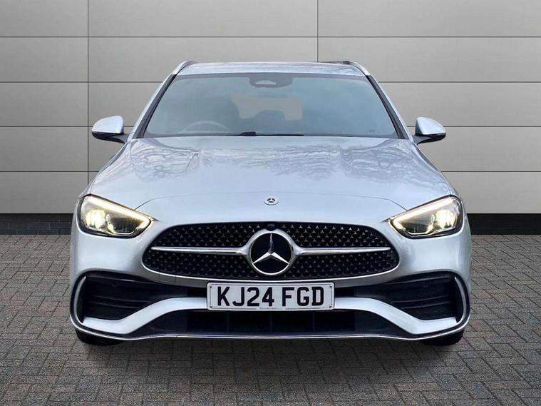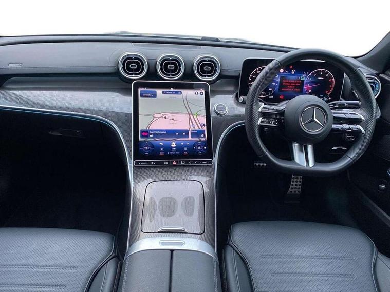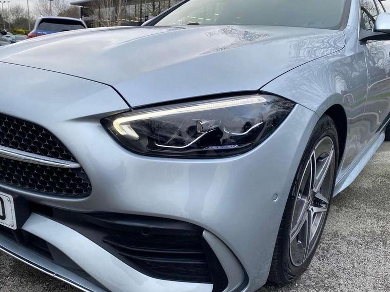 11.9" high resolution multimedia colour display, 12.3" digital instrument cluster display, Active lane keeping assist, Active parking assist with PARKTRONIC, Attention assist, Blind spot assist, Cruise control with speedtronic variable speed limiter, DYNAMIC SELECT with a choice of driving modes (Comfort, ECO, Sport, Sport+, Individual), E-call, Extended MBUX functions, Finger print sensor, Fluorescent jacket for driver, Hard disc navigation, MBUX navigation premium, Mercedes me remote services, Outside temperature gauge, Service indicator (ASSYST), Smartphone integration, Sports direct steer speed sensitive steering, Status display for rear seat belts in instrument cluster, Tailgate, Traffic sign assist, Wireless charging system for mobile devices, 9G TRONIC 9 speed automatic transmission, Petrol Particulate Filter, Sport suspension, DAB Digital radio, MBUX multimedia system, Adaptive brake lights, Adaptive high beam assist, Aluminium roof rails, AMG body styling front apron, rear apron and side skirts, AMG Line exterior, Body coloured bumpers, Body coloured door mirrors, Electric windows with one touch opening/closing and obstruction sensors, Electrically adjustable and heated door mirrors, Heat insulating dark tinted glass, LED daytime running lights, LED high performance headlamps, LED Indicators, LED tail lights, LED third brake light, Radiator diamond grille with integrated Mercedes Benz star and louvre silver with chrome pins, Rain sensor with automatic windscreen wiper activation, Rear side wing doors, Rear wiper, Two visible exhaust pipes integrated into rear bumper, 3 seat bench in 2nd row, 40:20:40 split folding rear bench seat, Ambient lighting premium, Ambient lighting with projection of brand logo, AMG floor mats, AMG line interior, Artico man-made leather upholstery, Auto Mercedes-Benz child seat recognition sensor, Black roof liner, Double cupholder in centre console, Electrically height/reach adjustable steering column, Folding rear seat backrest, Front and rear head restraints, Gearshift paddles on steering wheel, Heated front seats, Illuminated door sills with Mercedes Benz lettering, Illuminated glove compartment stowage, Load compartment cover, Multifunction sports steering wheel in nappa leather, Rear top tether child seat ISOFIX attachment, Single front passenger seat, Sports seats, Sunvisors with illuminated vanity mirrors, THERMATIC 2 zone automatic climate control, Boot comfort package - C Class, Easy pack tailgate - C Class, Interior light package - C Class, Memory package - C Class, Mirror package - C Class, Parking package with reversing camera - C Class, Stowage space pack - C Class, USB package plus - C Class, 3 rear 3 point seatbelts, Active bonnet pedestrian safety measure which detects an impact and raises bonnet, Active brake assist, Adaptive brake system with HOLD function and brake drying in the wet, Anti-lock braking system (ABS), Black seat belts, Brake calipers with Mercedes-Benz lettering + perforated front brake discs, Child proof door locks, Drivers knee airbag, Drivers pelvis airbag, Dual stage driver/passenger airbags, Electric parking brake, Electronic Stability Programme (ESP), Front centre airbag between driver and front passenger seats, Front side airbags, Tyre pressure monitoring system, Warning triangle and first aid kit, Window airbags for driver, front passenger and rear passenger, Antitheft alarm system, Interior monitoring system and Increased antitheft protection, Central locking with interior switch, automatic locking and crash sensor with emergency opening function, Chrome surround in electric key, Keyless Go, Urban guard vehicle protection plus, Dashboard, instrument panel and beltlines in ARTICO man made leather in nappa look, Metal structure trim element with centre console in metal structure finish, 18" AMG 5 spoke design aerodynamically optimised alloy wheels painted in tantalite grey with high sheen finish, TIREFIT with tyre inflation compressor,