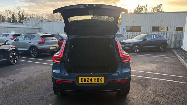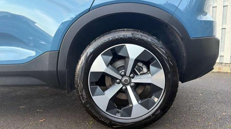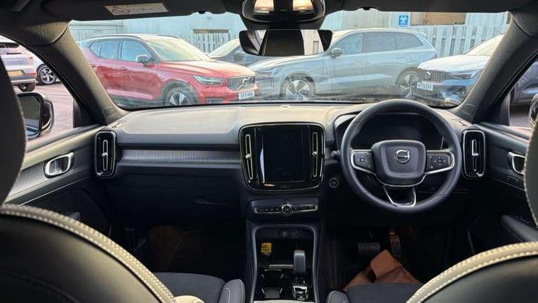 12.3" Progressive Driver Display, 9" centre console portrait touch screen, Adjustable steering wheel force, Apple carplay (wired), Bluetooth handsfree system, Cruise control, Driver alert control, Driver awareness - Blind spot information system with steer assist, cross traffic alert with autobrake and rear collision warning and mitigation, E-call, Front park assist, Google automotive services - Enabled entertainment apps, navigation with google maps, voice recognition with google assistant, Hands free power tailgate, Intelligent speed assistance, Lane keeping aid, Oncoming Lane Mitigation, Rear park assist, Rear park assist camera, Speed sensitive steering, Volvo cars services with app - Driving journal, emergency and breakdown call, engine remote start, remote door locking/unlocking and vehicle dashboard, Wireless/Inductive Mobile Phone Charging, Automatic transmission with start/stop and manual change functions, Dynamic chassis, DAB Digital radio, High performance sound, 8 speakers/250W, 2 front type C and 2 rear type C USB, Steering wheel mounted remote controls, Adaptive brake lights with high level LED brake lights, Auto dimming feature for exterior door mirrors, Auto dimming interior mirror, Automatic headlamp levelling, Automatic LED Headlights + Active high beam incorporating daytime running lights, Front aluminium tread plates, Front and rear electric windows, High gloss black front and rear skid plate, High gloss black front bumper deco, High gloss black mesh front grille with high gloss black surround, High gloss black window trim, Home safe and approach lighting, Integrated roof rails in high gloss black, LED front fog lights, Puddle lights, Rain sensor with automatic windscreen wiper activation, Rear side wing doors, Rear wiper, Roof antenna, Roof spoiler, Visible VIN plate, 12V socket in front tunnel console and luggage compartment, 2-Zone electronic climate control with CleanZone air quality system and pollen filter, 3 seat bench in 2nd row, 3 Spoke tailored steering wheel with chrome trim, 60/40 versatile split folding rear seat, A-pillar parking ticket holder, Centre console cupholders and storage, Charcoal headlining, Connect textile/microtech upholstery, Flexible load floor and grocery bag holder, Floor mats, Front cabin courtesy lights, Front door pocket, front cupholder, ambient front door, rear reading, rear courtesy, instrument panel and tailgate lighting, Front footwell illumination, Front headrests, Front reading lights, Front seat cushion extensions, Front side step illumination (under door), Glovebox bag hook, Heated front seats, Height adjustable passenger seat, Height/reach adjustable steering column, High gloss centre tunnel deco, Illuminated glovebox, Illuminated luggage compartment, Illuminated vanity mirrors + ticket holder, Integrated waste bin, Isofix attachments on outer rear seats, Load cover, Load protection net, Multi directional lumbar support for driver and passenger seat, Power driver seat with memory + exterior mirrors memory, Rear armrest with cupholders, Rear headrests, Single front passenger seat, Underfloor cargo storage, Climate pack without heated front seats - XC40, 3x3 point rear seatbelts, City safety with steering support with Pedestrian + cyclist + front collision warning with full auto brake and rear auto brake, Driver and passenger airbags, Drivers knee airbag, Electronic parking brake with auto hold, First aid kit, Front and outer rear seatbelt reminder and pretensioners, Front seats SIPS airbags, Hill descent control, Hill start assist, Inflatable curtain, Passenger airbag cut-off device, Power child locks on rear doors, Road sign information display, Run off Road Protection, SIPS (Side Impact Protection System), Slippery road and hazard light alert, Stability and Traction Control with Spin control, Engine Drag Control and Corner Traction Control, Tyre pressure monitoring system, Vehicle deceleration control with Anti-lock Brake System, Electronic Brake Distribution and Emergency Brake Assist, Warning triangle, WHIPS whiplash protection system - front, 2 x Key integrated remote control central locking including with deadlocking system and auto open/close windows, Anti-theft alarm including immobiliser/volume sensor + level sensor, Keyless drive includes keyless entry and keyless start, Locking wheel nuts,