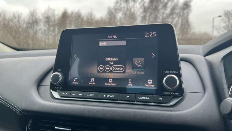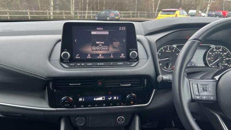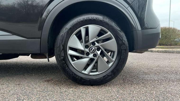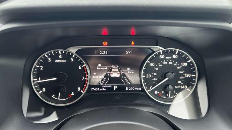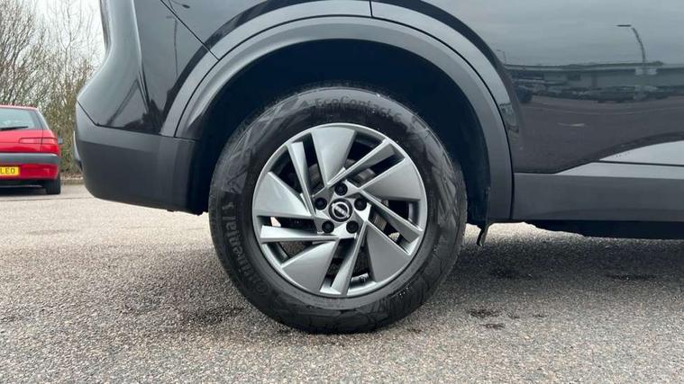 7" High definition full colour TFT screen combimeter, Android auto/Apple CarPlay (Wired), Blind spot warning, Drive modes (sport, normal, eco), Electric speed sensitive power steering, Emergency and breakdown call, Idle stop/start system, Intelligent Cruise control (ICC), Intelligent driver alert system, Intelligent forward collision warning, Intelligent lane intervention, Lane departure prevention, Lane departure warning system, Maximum speed limiter, Nissan connect 8" touchscreen infotainment system, Push button starter, Rear cross traffic alert, Rear parking sensors, Rear view camera, Traffic sign recognition with legal speed adjustment, Trip computer, 6 speakers, AM/FM audio system with DAB, Bluetooth audio streaming, Front USB connections (Type-A and Type-C), Auto dimming rear view mirror, Auto rear wiper when reversing, Automatic hazard signal with emergency stop signal, Body colour mirror caps, Body coloured door handles, Bodyside mouldings, Chrome side window finisher, Door handle with button, Dusk sensor, Electric auto folding door mirrors, Electrically adjustable and heated door mirrors with LED turn indicator, Follow me home headlights, High beam assist, Intelligent auto headlights, LED daytime running lights, LED Headlights, LED rear lights, One touch front and rear electric windows with remote opening and closing, Partially body coloured bumpers, Rear reversing light (bulb lighting), Rear roof spoiler, Rear side wing doors, Shark fin antenna, Splash free rain sensing wipers, Three blink turn signal, 12v power socket in dashboard and luggage, 2 way electrical driver lumbar adjustment, 2x Rear coat hooks, 3 bench rear seats in 2nd row, 3 rear headrests, 4 folding assist grip, 6-way manually adjustable driver's seat, 60/40 split folding rear seat bench, Centre console storage tray, Chrome interior door handles, Cloth monoform upholstery, Driver and front passenger sunvisors with illuminated vanity mirrors, Driver seat back pocket, Dual zone automatic climate control with pollen filter, Front and rear door storage, Front centre console and armrest, Front cupholders x 2, Front door with bottle holders, Glovebox with light, Hard trunk cover, Height adjustable front headrests, Height adjustable passenger seat, Leather steering wheel, Luggage space lighting, Manually adjustable passenger (slide recline + lifter), Multifunction steering wheel, Passenger seat back pocket, Rear armrest with 2 cupholders, Rear door bottle holders, Single front passenger seat, Steering wheel gearshift paddles, Steering wheel switches, Sunglasses holder, Tilt/telescopic adjustable steering wheel, Two rear isofix child seat anchorage points with top tether, 3x3 point rear seatbelt pretensioners + load limiters, ABS with EBD and brake assist, Active brake limited slip, Auto hold function, Child locks on rear doors, Curtain and front side, far side airbags, Driver and passenger airbags, Driver, passenger and 2nd row rear seat belt reminder, Electronic parking brake, Front seatbelt pretensioners + load limiters, Height adjustable front seatbelts, Hill start assist, Intelligent blind spot intervention, Intelligent front emergency braking with pedestrian, cyclist recognition and junction assist, Intelligent rear automatic braking, Tyre pressure monitoring system, Vehicle dynamic control, Capless fuel filler, Engine immobiliser, Nissan i-key, Remote central door locking with deadlocking, Thatcham Cat.1 alarm, Interior instrumental panel A finisher, 17" Alloy wheels, Tyre puncture repair kit,