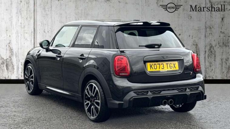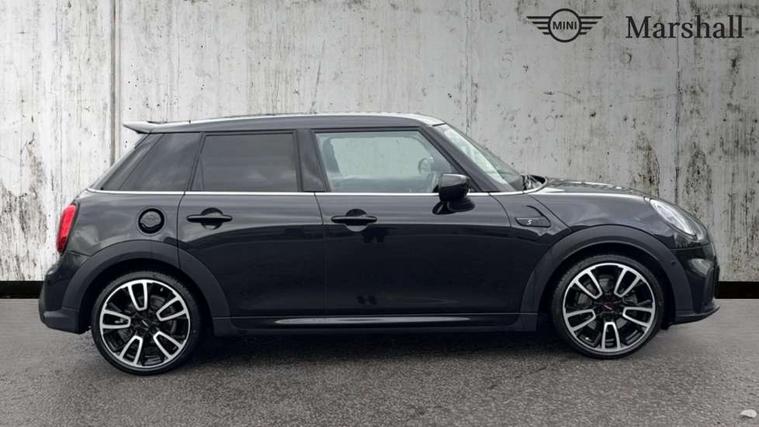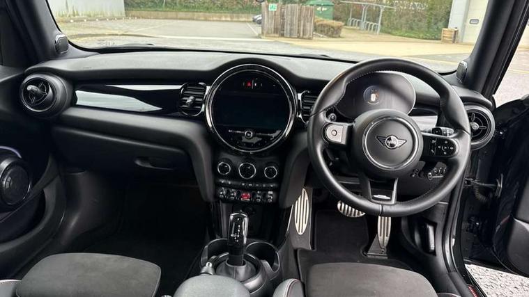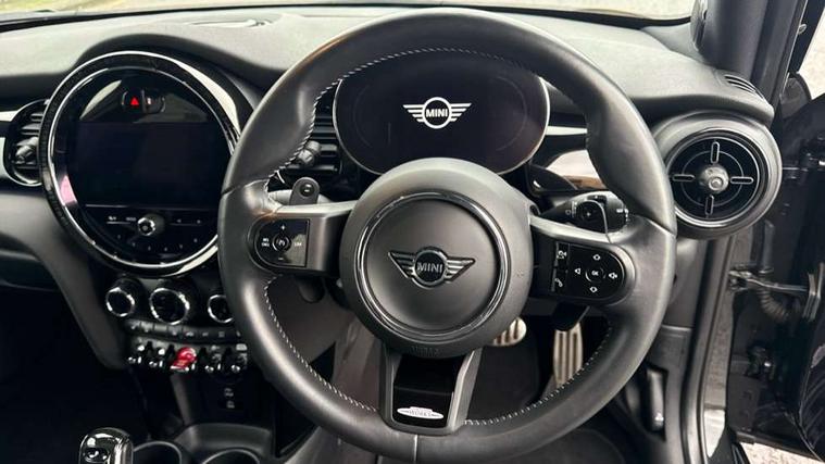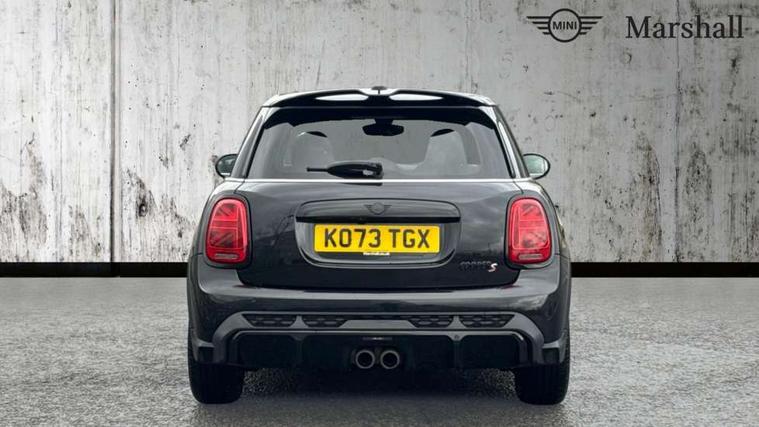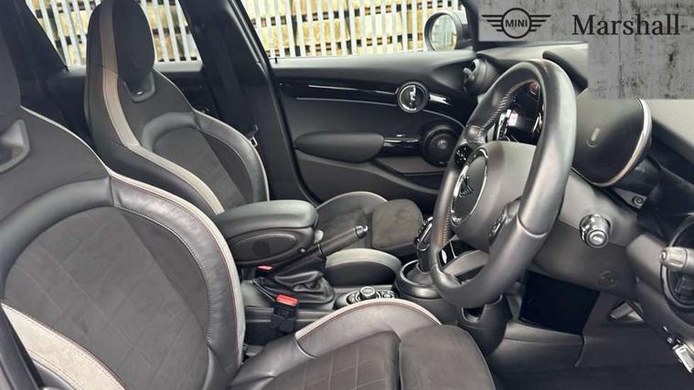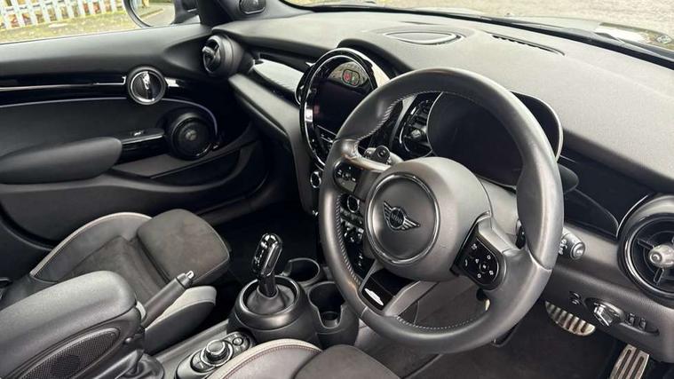 Apple CarPlay, Automatic start/stop function with brake energy recuperation, Compatible mobile phone bluetooth with audio streaming, Electro-mechanical speed dependant steering assistance, Flexible car sharing preparation, MINI Driving Modes - centre toggle switch to control driving setting (sport, mid and green), Mini E-call, MINI TeleServices, On board computer, Rear park distance control, Service interval indicator, Adaptive suspension, Double Vanos system, Fully variable valve control, Gear change indicator display, High precision injection, Performance Control, Steptronic sport transmission with double clutch and steering wheel paddles, 8.8" touchscreen with LED ring, FM tuner and DAB digital radio, 3rd brake light, Automatic headlight activation switch, Bonnet scoop, Dynamic brake lights, Electric front+rear windows, Heated rear window, Heated windscreen washer jets, JCW Aerodynamic kit - Front and rear bumpers with sporty JCW styling and part-painted side sills with MINI John Cooper Works door sill finishers, John Cooper Works rear spoiler, Metal door sill strips with Cooper S imprint, Model logo Cooper S on right of tailgate, Radiator grille chrome border with honeycomb structure including S Badge, Rain sensor window wipers, Rear fog lights, Rear LED lights with union jack design, Rear side wing doors, Rear window wiper, Side scuttle panel with integrated indicator, Sun/heat protection glass, Two central exhaust tailpipes with chrome finisher, White indicator lenses, 12V Accessory socket in centre console, 3 seat bench in 2nd row, 4 lashing eyes in luggage compartment, 60/40 split folding rear seat, Anthracite headliner including grab handles and clothes hooks, Carbon black colour line - Knee roll and door armrest, Chrome interior highlights, Cupholders, Front and rear isofix with front passenger airbag deactivation, Front and rear velour floor mats, Glove compartment, Height and length steering column adjustment, Interior lighting with 12 different colours across the dashboard, underneath door bezel with illuminated laser-engraved design on central display, JCW Sport seats with integrated headrests, adjustable thigh support and John Cooper Works logo, Leatherette gearshift lever and handbrake gaiters, LED reading lights, vanity mirror lights, front foot well light and spotlight on front seats, Mechanical seat adjustment - forward/back & backrest for front seats and driver seat height adjust, Multifunction steering wheel, Single front passenger seat, Sport leather steering wheel with speed limiter and audio/communication controls, Storage compartments in doors, Storage pocket on back of front seats, Sunvisors with vanity mirrors, Walknappa leather steering wheel with grey seam and John Cooper Works badge on Piano Black lower steering wheel spoke, Piano black exterior pack - Mini Hatchback Cooper S, 3 point seatbelts on all five seats, 6 Airbags - front, side, head and seat belt tensioners, Anti-lock braking system (ABS), Child locks on rear doors, DSC - Dynamic Stability Control, Front and rear disc brakes, Hill start assist, Two tone horn, Tyre pressure monitoring system, Alarm system with tilt sensor, monitoring doors, bonnet interior and tailgate, Electronic vehicle immobiliser, Start/stop toggle with keyless go, Piano black interior trim, Tool kit,