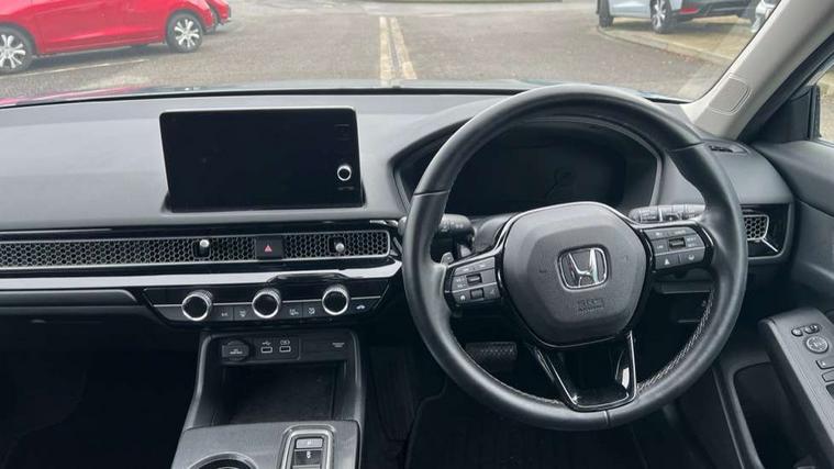 7" Multi information display screen, Adaptive cruise control, Adaptive motion for electric power steering, Adjustable speed limiter, Agile handling assist, BLIS (Blind Spot Information System) with Cross Traffic Monitor, Bluetooth hands free telephone connection, Driving modes, Economy mode, Electric power steering wheel with variable gear ratio steering, Emergency call service, Emergency stop signalling system, Forward collision warning, Front and rear parking sensors, Honda CONNECT with Navigation 9" touchscreen, AM/FM/DAB, Apple Carplay and Android Auto, live traffic info, Honda sensing, Idle stop, Intelligent speed limiter, Lane departure warning system, Lane keep assist, Low speed following, Power meter, Rear parking camera, Road departure mitigation, Tailgate, Traffic jam assist, Traffic sign recognition, Wireless apple carplay, Vehicle stability assist, 'Shark fin' mobile antenna, 2x USB Front socket (1 data & 1 charge), 8 Speakers, Digital Audio Broadcast (DAB) Tuner, Front tweeters, Steering wheel mounted audio controls, Aspherical driver door mirrors, Auto headlight adjuster, Auto headlights, Automatic coming/leaving home lighting function, Automatic rain sensing wipers, Body colour door handles, Body colour door mirrors, Chrome window garnish, Electric adjustable heated door mirrors, Electric front and rear windows, Electrically folding door mirrors, Headlight extension black, High beam assist, High level LED brake light, LED daytime running lights, LED front turn type, LED Headlights, LED rear lights, Material finish grille, Pop up hood, Privacy glass, Rear side wing doors, Rear wiper, Single hidden exhaust pipe, Variable front intermittent wipers, 3 seat bench in 2nd row, 60/40 split folding rear seat, Cargo accessory power socket, Cargo net hooks, Driver and front passenger seat armrests, Driver's electric lumbar adjustment, Driver's seat height adjustment, Dual climate control air conditioning system, Fabric upholstery, Front accessory power socket, Front map lights, Front/rear courtesy lights, Glovebox light, Heated front seats, Hybrid emblem, Isofix points/i size, Leather steering wheel, Meter Illumination white, Passenger seat back pocket, Platinum chrome interior door handles, Rear head restraints, Rear reading lights, Rear seat centre armrest, Single front passenger seat, Sunvisors with illuminated vanity mirrors, Tilt/telescopic adjustable steering wheel, Tonneau cover, Trunk light, USB Rear number 2 x charge, White ambient roof light, 3x3 point rear seatbelts, ABS+EBD+Brake assist, Airbags - driver and front passenger, Airbags - Knee (AS), Airbags - Knee (DR), Anti-whiplash front headrests, Brake hold function, Collision mitigation braking system, Collision mitigation throttle control, Deflation detection system, Driver SRS airbag (single stage inflation), Electronic parking brake with auto hold, Front and rear curtain airbags, Front and rear seat belts with emergency locking retractor (ELR), Front centre airbag, Front side airbags, Hill start assist, Low speed brake system, Manual child lock in rear doors, Passenger airbag deactivate switch, Rear airbags, Regenerative braking/deceleration paddle control, Immobiliser, Mirrors and windows key fob, Remote central locking with 2 jack knife keys, Security alarm, Selectable door unlock, Smart entry + Smart start, Superlocking, Tilt sensors, Ultrasonic security sensor, 17" 2 tone diamond cut alloy wheels, Tyre repair kit,
