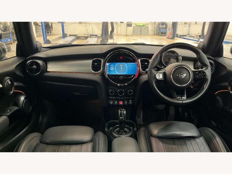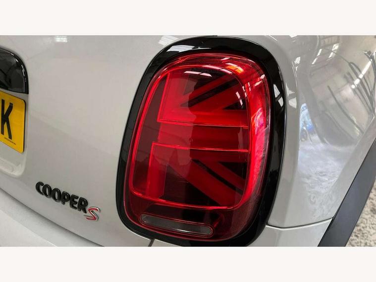 Apple CarPlay, Automatic start/stop function with brake energy recuperation, Compatible mobile phone bluetooth with audio streaming, Cruise control with brake assist, Electro-mechanical speed dependant steering assistance, Flexible car sharing preparation, Instrument cluster, MINI Driving Modes - centre toggle switch to control driving setting (sport, mid and green), Mini E-call, MINI TeleServices, On board computer, Rear park distance control, Service interval indicator, Double Vanos system, Fully variable valve control, High precision injection, Performance Control, Steptronic sport transmission with double clutch and steering wheel paddles, 8.8" touchscreen with LED ring, FM tuner and DAB digital radio, 3rd brake light, Automatic headlight activation switch, Bonnet scoop, Chrome line exterior - radiator grille bars, tailgate handle, lower front grille grating and rear central fog-light, Dynamic brake lights, Electric front windows, Heated rear window, Heated windscreen washer jets, LED headlight with closed ring and daytime driving lights, Metal door sill strips with Cooper S, Model logo Cooper S on right of tailgate, Rain sensor window wipers, Rear fog lights, Rear LED lights with union jack design, Rear window wiper, Side scuttle panel with integrated indicator, Sun/heat protection glass, White indicator lenses, 12V Accessory socket in centre console, 2 seat bench in 2nd row, 4 lashing eyes in luggage compartment, 60/40 split folding rear seat, Carbon black colour line - Knee roll and door armrest, Chrome interior highlights, Chrome line interior - air vents, gear lever base, door handles and speakers in doors, Cupholders, Front and rear head restraints, Front and rear isofix with front passenger airbag deactivation, Front floor mats in velour, Glove compartment, Height and length steering column adjustment, Interior lighting with 12 different colours across the dashboard, underneath door bezel with illuminated laser-engraved design on central display, Leatherette gearshift lever and handbrake gaiters, LED reading lights, vanity mirror lights, front foot well light and spotlight on front seats, Manual air conditioning, Mechanical seat adjustment - forward/back & backrest for front seats and driver seat height adjust, MINI yours badge on exterior pillar, Multifunction steering wheel, Passenger seat height adjuster, Satellite grey headlining including grab handles and clothes hooks, Single front passenger seat, Storage compartments in doors, Storage pocket on back of front seats, Sunvisors with vanity mirrors, Walknappa leather steering wheel with grey seam and MINI Yours badge on Piano Black lower steering wheel spoke, 3 point seatbelts on all four seats, 6 Airbags - front, side, head and seat belt tensioners, Anti-lock braking system (ABS), DSC - Dynamic Stability Control, Front and rear disc brakes, Two tone horn, Tyre pressure monitoring system, Alarm system with tilt sensor, monitoring doors, bonnet interior and tailgate, Electronic vehicle immobiliser, Start/stop toggle with keyless go, Tool kit,