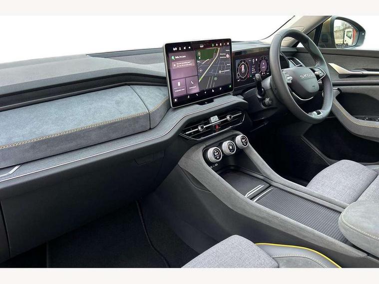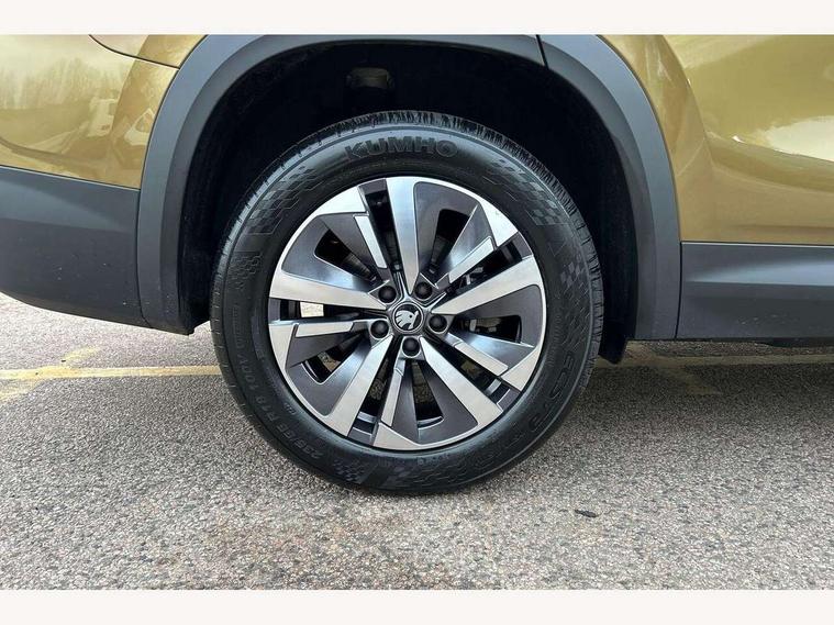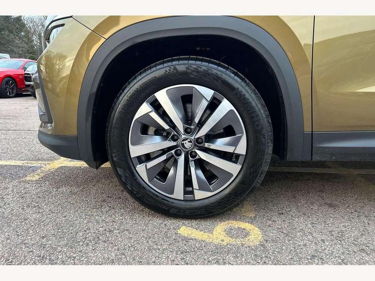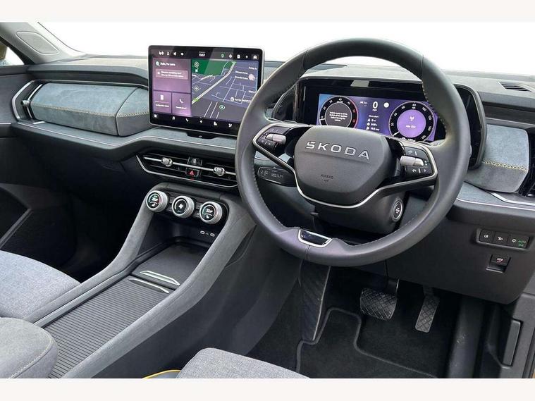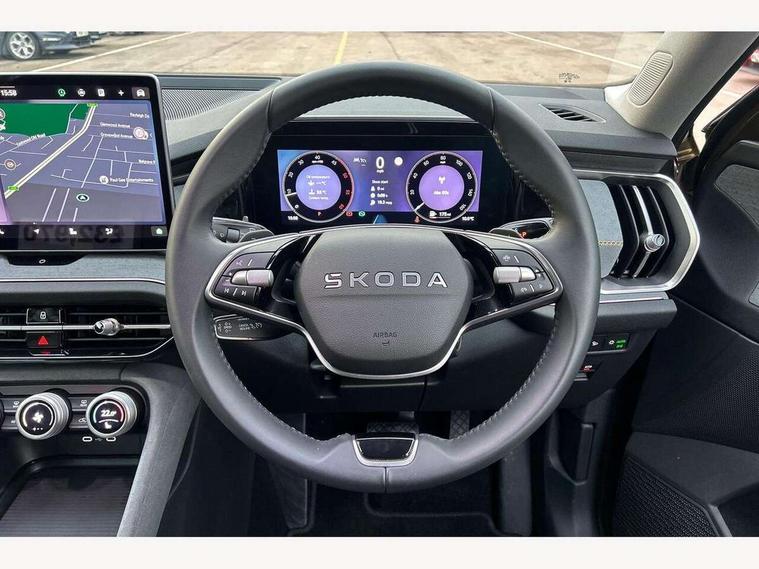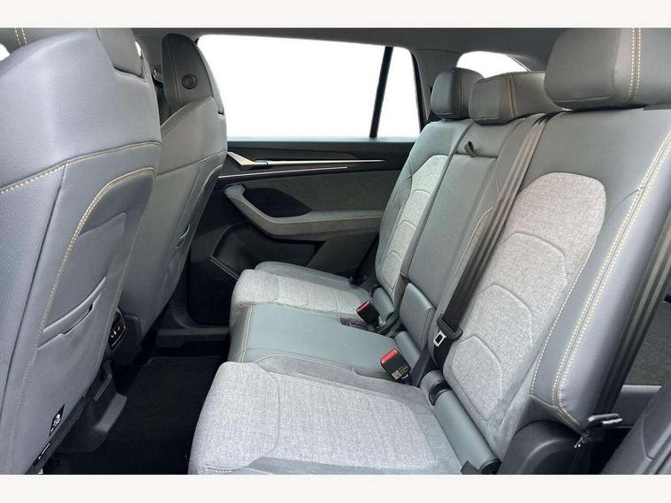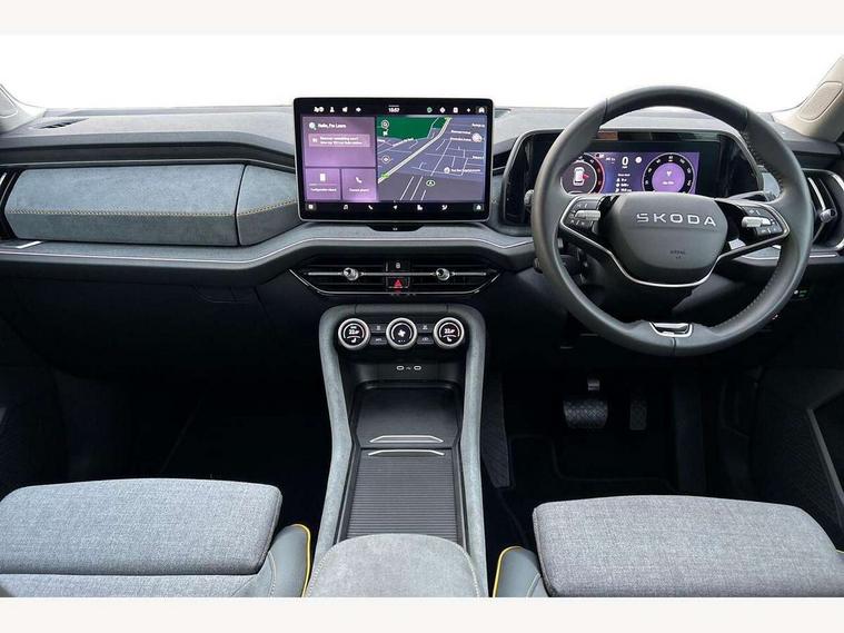 13" satellite navigation touchscreen display, Blind spot detection with door exit warning, Bluetooth system, ChatGPT functionality, Driver alert - Fatigue and drowsiness monitor, Dry display cleaner, Emergency call, Front and rear parking sensors, Front cross traffic assist, Lane assist, PAS, Rear traffic assist, Rear view camera, Tailgate unlocking from outside, Traffic sign recognition, USB C Port x 2 in front centre console, Virtual Cockpit - 10.25" digital display, Voice control system, Wireless charging for two smartphones (15W) with cooling function, Wireless SmartLink for Apple CarPlay and Android Auto, Stop/start function, 2x USB-C in the rear, 8 Speakers, DAB Digital radio, Aero front windscreen wipers with intermittent function, All weather light, Auto dimming rear view mirror, Black wheel arch surrounds, Body colour bumpers, Body colour door mirrors and handles, Cornering light and poor weather light, Electric folding /adjustable/separted heated/folding door mirrors, auto dimming with boarding sports and memory function, Electric front and rear windows, Exterior black decorative trims, Heat insulating glass in windshield, Heated rear window, Ice scraper in fuel tank cap, Invisible tailpipe, LED daytime running lights, LED front fog lamps, LED Headlights, LED rear fog light, LED rear lights, LED third brake light in rear spoiler, Light assistant with automatic headlight control and coming home feature, Logo projection in door mirrors, Rear roof spoiler, Rear side wing doors, Rear window wiper, Safety reflectors on front and rear doors, Unique dark chrome design logo on alloy wheels, Window control switches with black trim, Windscreen wipers with rain sensor, Without engine designation, 1.5l bottle holder points in all door, 1x centre rear reading light, 2 seat bench in 3rd row, 3 configurable smart dials with 32mm coloured display, 3 seat bench in 2nd row, 4 foldable roof handles with rear coat hooks, Ambient interior lighting - Dashboard, front-door stowage compartments, front and rear door panels and footwell lighting, Automatic gear selector on steering column, Chrome interior door handles, Driver/front passenger reading lights, Fabric headlining, Fixed bench 40:60:40 split folding backrests, Front and rear floor mats, Front centre armrest with jumbo box storage compartment, cup holder and 12V socket, Height adjustable front headrests, Isofix child seat fittings in outer middle row rear seats and front passenger with top tether, Manual height adjustment for front passenger seats and thigh support extender, Manual lumbar support for front passenger seat, Manually adjustable steering column, Pollen filter, Rear centre armrest with cupholders, Rear seat boot backrest release, Single front passenger seat, Skoda lettering on steering wheel, Storage pocket including mobile phone pockets on the backs of the front seats, Sunvisors with illuminated vanity mirrors, Three rear height adjustable headrests, Ticket holder on A Pillar, Tri zone climate control, Umbrella in door panel x1 made from sustainable materials, Upper and lower glovebox with card holder and coin compartment, USB C port by rear view mirror for charging only (15W), Variable boot floor, Auto door release and activation of warning lights in the event of an accident, Driver and front passenger airbag with knee airbag and front passenger airbag deactivation, Electric child locks, Electronic parking brake, ESC (incl. ABS+EMD+MSR+ASR+EDL+HBA+DSR+RBS+ESBS+MCB+TSA+XDS), Front assist with braking reaction to vehicles, pedestrians and cyclists, Front disc brakes, Fuel cut off safety device, Height adjustable front 3 point seatbelts + pretensioners, Hill hold assist, Junction assist with automatic emergency braking, Rear disc brakes, Safety vest holder in door, Seat belt reminder for all seats, Three point rear seat belts, Two tone horn, Tyre pressure monitor, Alarm with interior monitoring and tilt sensor with safe function, Anti-theft wheel bolts, Immobiliser, Remote central locking with 2 keys, Breakdown kit, Tool kit,