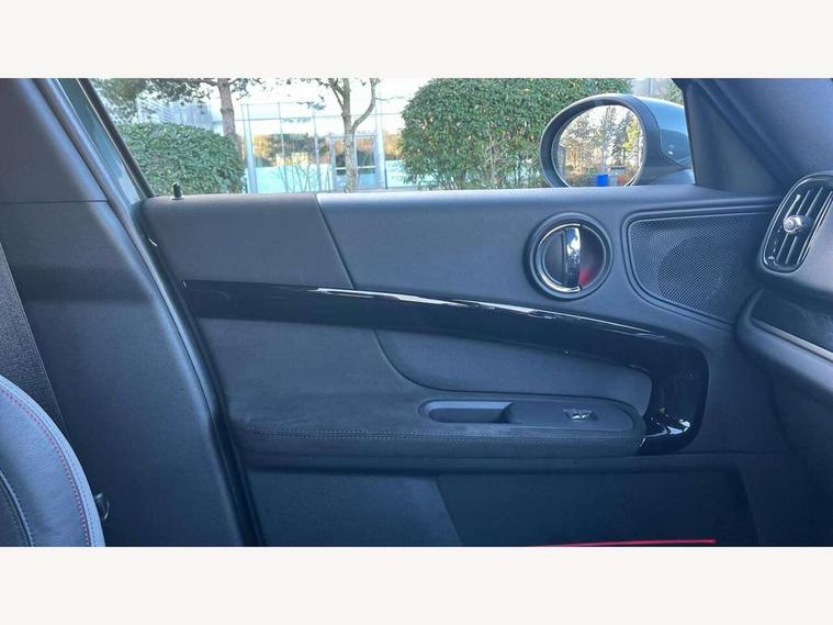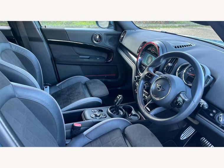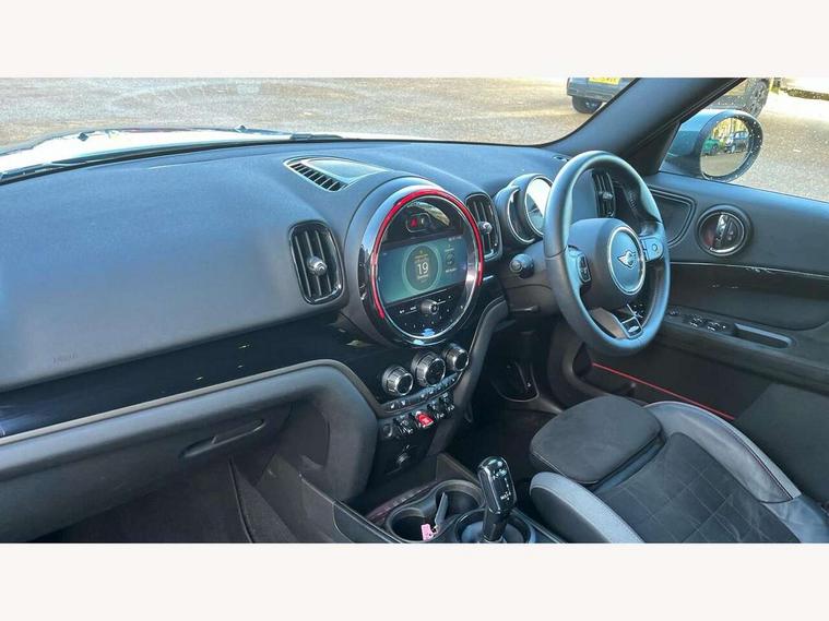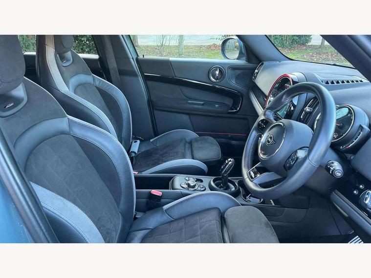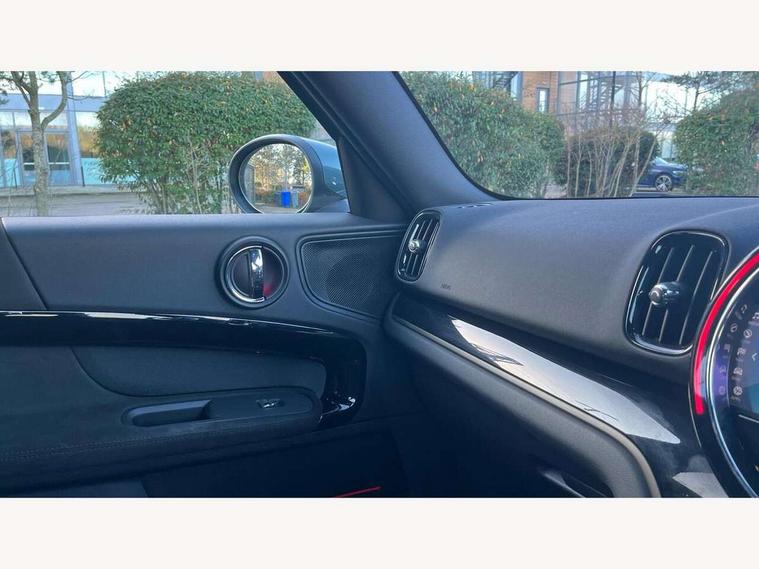 Active Guard incl speed limiting and lane departure functions with auto steering, and front collision warning with brake intervention, Automatic start/stop function with brake energy recuperation, Compatible mobile phone bluetooth with audio streaming, Cruise control with brake assist, Electro-mechanical speed dependant steering assistance, Instrument cluster, MINI Driving Modes - centre toggle switch to control driving setting (sport, mid and green), Mini E-call, On board computer, Rear parking distance control, 51 Litre fuel tank, Double Vanos system, Fully variable valve control, High precision injection, Performance Control, Steptronic transmission with double clutch, FM tuner and DAB digital radio, 3rd brake light, Body colour fuel filler cap, Day time driving lights, Door sill strips, Dynamic brake lights, Electric windows, Heated rear window, Heated windscreen washer jets, John Cooper Works - aerodynamic kit (front and rear apron, spoiler), front and rear sport bumpers and part-painted side sills with door sill finishers, John Cooper Works Logo, LED fog lights, LED Headlights, Model logo, Model logo on Tailgate, Rain sensor with auto headlights, Rear fog lights, Rear side wing doors, Rear window wiper, Side scuttle panel with integrated indicator, Split rear doors, Sun/heat protection glass, White indicator lenses, 12V socket in centre console, 3 seat bench in 2nd row, 360L luggage compartment capacity, 4 lashing eyes in luggage compartment, 40:20:40 split folding rear seats, Anthracite headlining with grab handles and clothes hooks, Chrome interior highlights, Colour line - Carbon black, Cupholders, English handbook, Floor mats, Front headrests, Glove compartment, Height and length steering column adjustment, Interior lighting with 12 basic colours selectable via toggle switch in roof, Isofix rear child seat preparation, LED reading lights, vanity mirror lights, front foot well light and spotlight on front seats, Manual air conditioning, Mini John Cooper Works leather gearshift lever and handbrake gaiters, Multifunction steering wheel, Nappa leather steering wheel with MINI Yours logo, Rear headrests, Single front passenger seat, Stainless steel pedals and foot rest, Storage compartments in doors, Sunvisors with vanity mirrors, Excitement pack - Countryman, Navigation pack - Countryman, Piano black exterior pack - Countryman, 2 tone horn, 3 point seatbelts on all seats, 6 Airbags - front, side, head and seat belt tensioners, Anti-lock braking system (ABS), DSC - Dynamic Stability Control, Electronic handbrake, Front and rear disc brakes, Hill start assist, Manual rear child locks, Tyre pressure monitoring system, Alarm system with tilt sensor, monitoring doors, bonnet interior and tailgate, Auto drive away locking, Deadlocking function, Electronic vehicle immobiliser, Locking wheel bolts, Start/stop toggle with keyless go, Piano black JCW interior trim, Tool kit,