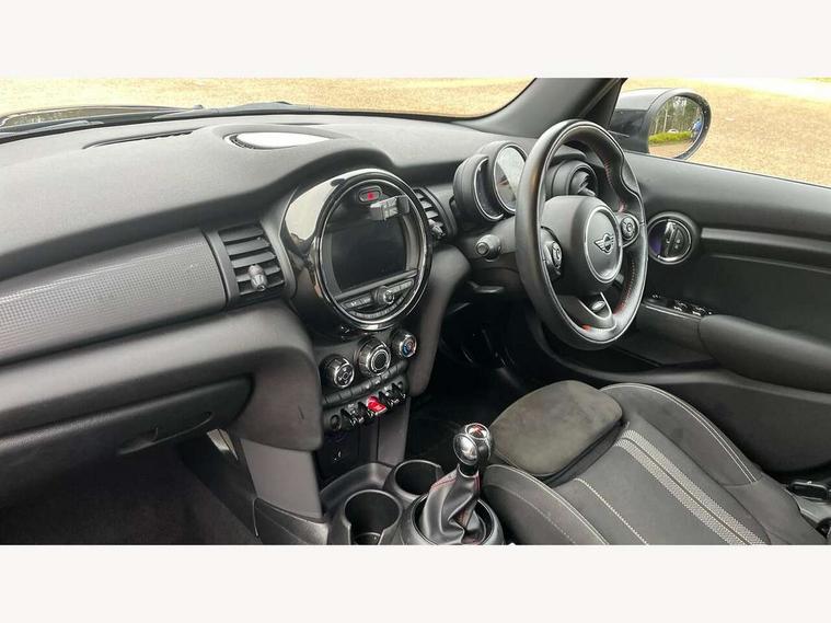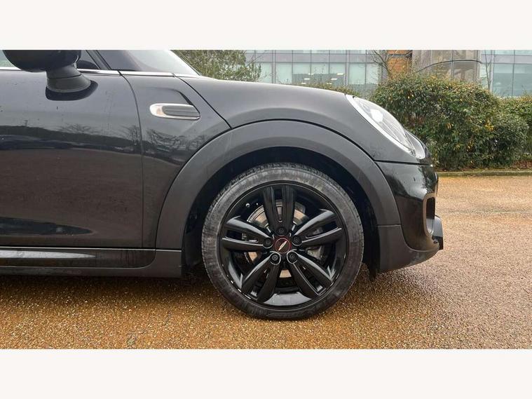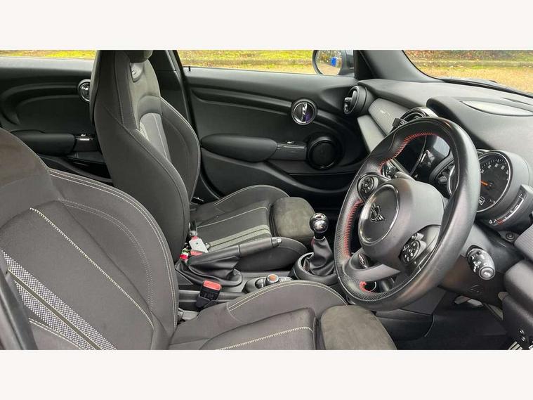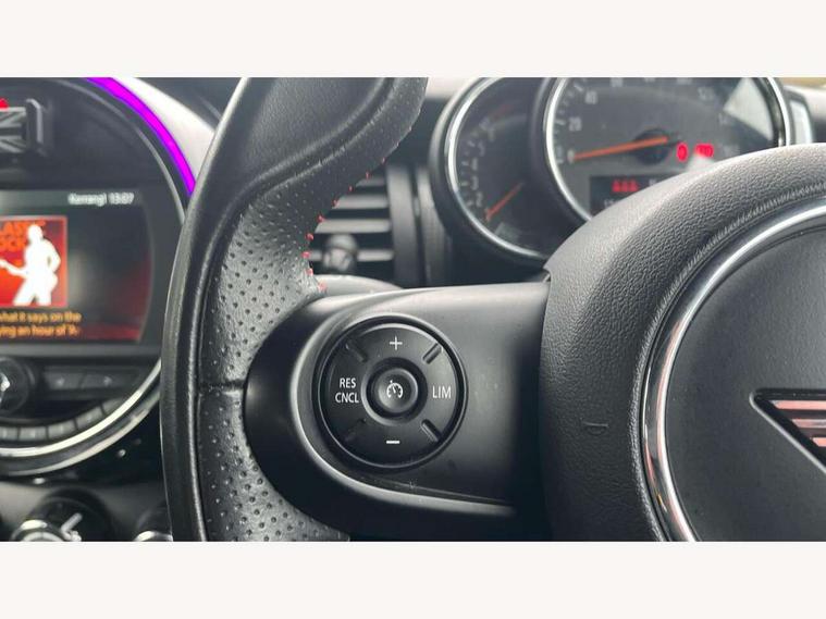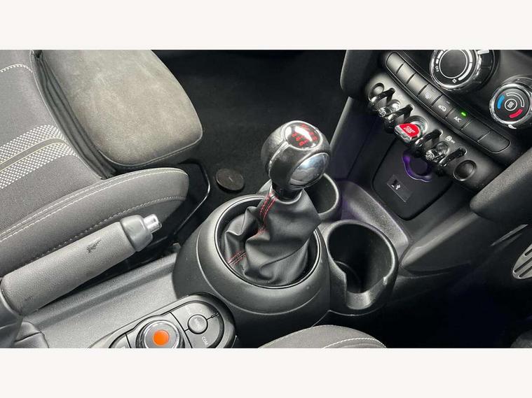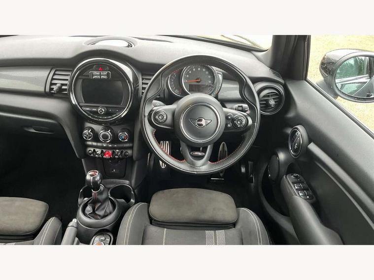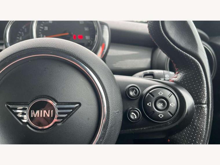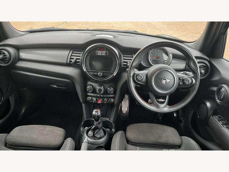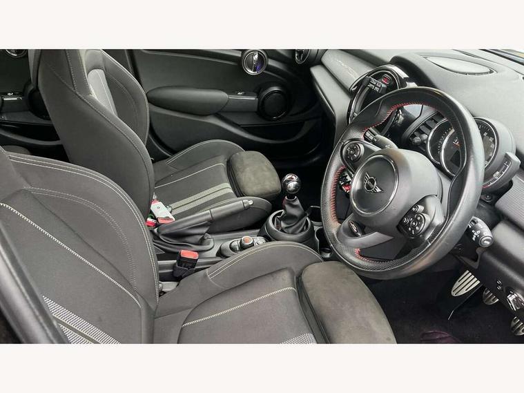 Automatic start/stop function with brake energy recuperation, Compatible mobile phone bluetooth with audio streaming, Electro-mechanical speed dependant steering assistance, Instrument cluster, MINI Driving Modes - centre toggle switch to control driving setting (sport, mid and green), Mini E-call, MINI TeleServices, On board computer, Service interval indicator, Double Vanos system, Fully variable valve control, Gear change indicator display, High precision injection, Performance Control, 6.5" touchscreen with LED ring, FM tuner and DAB digital radio, Automatic headlight activation switch, Body colour fuel filler cap, Chrome border high gloss black slats radiator grille, Dynamic brake lights, Electric front+rear windows, Heated rear window, Heated windscreen washer jets, John Cooper Works - aerodynamic kit (front and rear apron, spoiler), front and rear sport bumpers and part-painted side sills with door sill finishers, John Cooper Works rear spoiler, LED headlight with closed ring and daytime driving lights, Left exhaust tailpipe with chrome finisher, Metal door sill strips with MINI imprint, Model logo Cooper on right of tailgate, Rain sensor window wipers, Rear fog lights, Rear LED lights with union jack design, Rear window wiper, Side scuttle panel with integrated indicator, Sun/heat protection glass, White indicator lenses, 12V Accessory socket in centre console, 4 lashing eyes in luggage compartment, 60/40 split folding rear seat, Carbon Black colour line, knee roll and door armrests, Chrome interior highlights, Cupholders, Front and rear head restraints, Front and rear isofix with front passenger airbag deactivation, Glove compartment, Height and length steering column adjustment, Interior lighting with 12 basic colours selectable via toggle switch in roof, John Cooper Works leather steering wheel with contrasting stitching in Chilli Red with John Cooper Works logo, John Cooper Works Logo in seat, Leather gearshift lever and handbrake gaiters, LED reading lights, vanity mirror lights, front foot well light and spotlight on front seats, Manual air conditioning, Mechanical seat adjustment, driver seat height adjust, forward/back and front seats backrest, Mini logo projection on floor from drivers exterior mirror, Multifunction steering wheel, Storage compartments in doors, Sunvisors with vanity mirrors, 3 point seatbelts on all five seats, 6 Airbags - front, side, head and seat belt tensioners, Anti-lock braking system (ABS), DSC - Dynamic Stability Control, Front and rear disc brakes, Hill start assist, Single tone fanfare horn, Tyre pressure monitoring system, Alarm system with tilt sensor, monitoring doors, bonnet interior and tailgate, Electronic vehicle immobiliser, Start/stop toggle with keyless go, Tool kit,