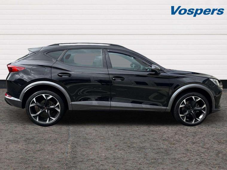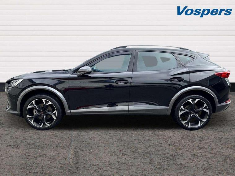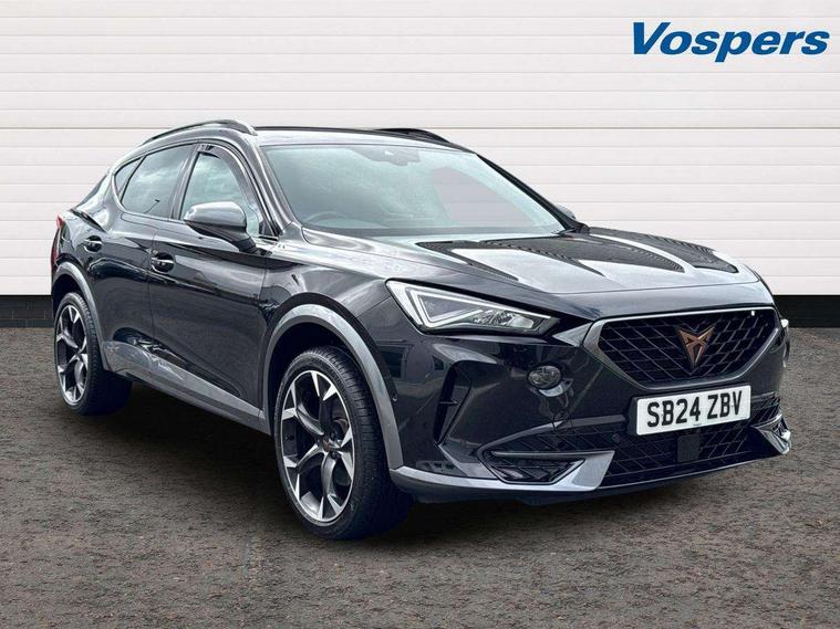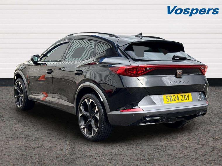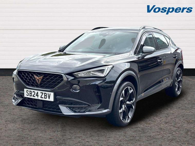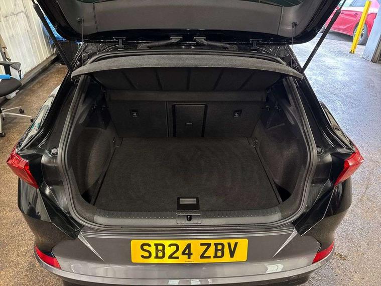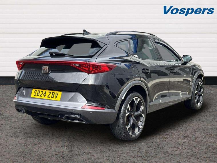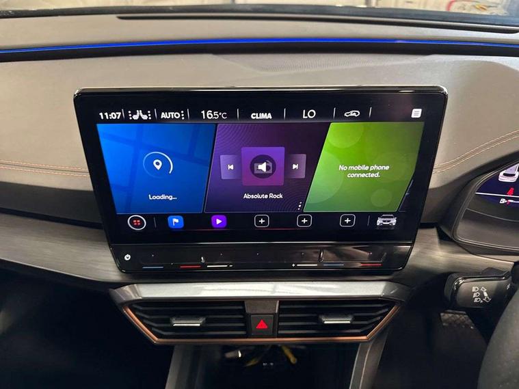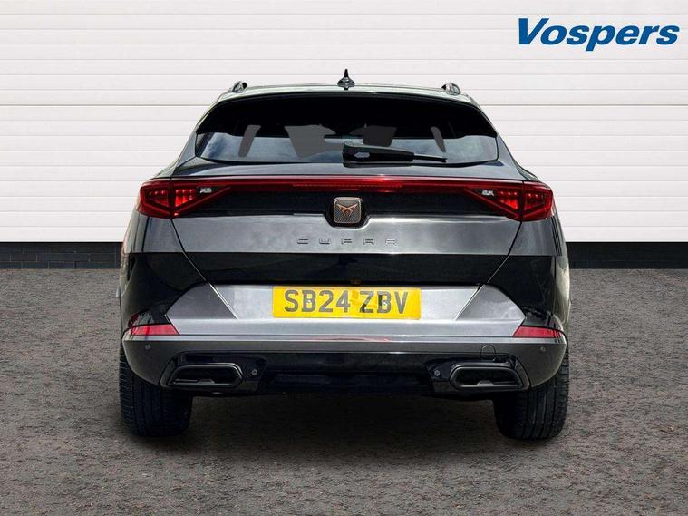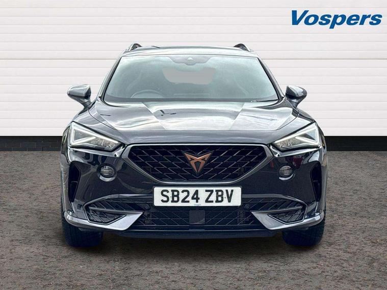 Digital cockpit and configurable dashboard, Driver alert system, Driving profile selection, Forward collision warning with automatic braking, Lane assist, Navigation system with 12'' Touchscreen Display, Park assist (inc front/rear parking sensors), PAS, Predictive adaptive cruise control with speed limiter, Rear view camera, RPM, trip computer, outside temp gauge, instrument light brightness, low fuel warning light, lights on reminder, gearshift indicator, Service interval indicator, Start/stop system with regenerative braking, Voice control system, Wired Android Auto, Wireless apple carplay, Wireless phone charger, Electronic locking differential and dynamic traction support, Standard suspension, 2 front and 2 rear USB type C sockets, Auxiliary input socket, DAB radio, Auto dimming rear view mirror, Body colour door handles, Body coloured bumpers, Dark grey wing mirror, Daytime running light with automatic headlight control and coming home feature, Dynamic headlight range control, Electric front/rear windows, Electrically adjustable heated and folding door mirrors with memory function, Front fog lamps with cornering function, Gloss black roof rails and window surrounds, LED Headlights, LED Taillights with dynamic indicator, Rain sensing wipers, Rear diffuser with black simulated exhaust pipes, Rear side wing doors, Rear wash/wipe, Third brake light, Tinted rear windows, Welcome lights, 12v power supply in centre console, 12V socket, 12v socket in loadspace, 2 front and 2 rear reading lights, 230V socket, 3 seat bench in 2nd row, 60/40 split rear bench seat with armrest and mechanical seat release, Black headlining, Dust/pollen filter, Front and rear head restraints, Front centre armrest, Height/reach adjust steering wheel, Illuminated interior front door sills, Illuminated sunvisor with mirror, Isofix, Leather multi function heated steering wheel with gear shift paddles, Luggage tie-down hooks, Single front passenger seat, Three zone climate control with control panel in rear, Variable luggage/load compartment floor, Wraparound lighting, Genuine Nappa leather Pack - Cupra, 3 point seatbelts on all rear seats, ABS, Brake control system - ESC and brake booster, Child proof door locks, Driver and front passenger airbags with front passenger airbag de-activation, Electronic parking brake, Front and rear disc brakes, Front side curtain airbags, Hill hold control, Public e-call, Seat belt reminder for front and rear seats, Tyre pressure monitoring system, Anti theft alarm system, Keyless entry and start system (KESSY), Locking wheel bolts, Copper and aluminium interior detailing, 19" 'Exclusive' machined sport matte black and silver alloy wheels,
