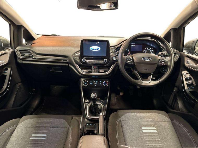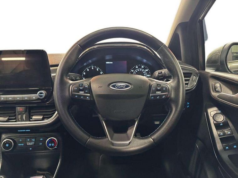 4.2" Colour TFT Ice blue illumination analogue cluster, Driver alert system, Electric power steering, Ford easy fuel, Lane keep assist, Lane keeping aid, Rear parking distance sensors, Selectable drive modes (Normal, Sport, Track), Trip computer, Rough road suspension with increased ride height adjust, 3rd brake light, Auto high beam, Automatic headlights, Body colour bumpers, Body coloured electrically operated with side indicators, Electric front windows/one touch facility, Electric rear windows, Quickclear heated windscreen, Rain sensing wipers and auto dimming rear view mirror, Rear privacy glass, Rear side wing doors, Rear wiper, Rugged bodystyling kit with active front wing badges, 3 rear headrests, 3 seat bench in 2nd row, Adjustable head restraints, Centre console with opening armrest, 2x cupholders, 12v and USB, Cloth upholstery with dark blue stitching, Leather gear knob, Manual 2 way passenger seat adjust, Manual 4-way driver seat adjust, Manual air conditioning, Premium floor mats, Sensico wrapped steering wheel, Single front passenger seat, 3 point seatbelts on all rear seats, Electronic stability control with hill start assist, Front and rear seat belt warning, Manual child lock in rear doors, Tyre pressure monitoring system, Keyless start with 'Ford Power' starter button, MyKey system, Remote central locking, Thatcham alarm with power door dead locks, 17" 5 spoke alloys with rough metal machined finish,