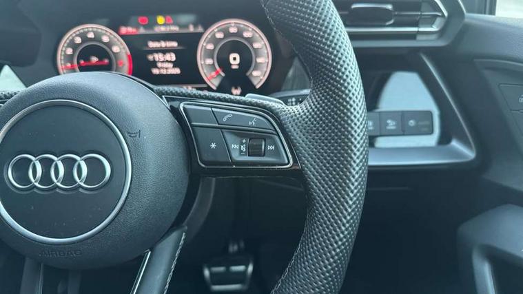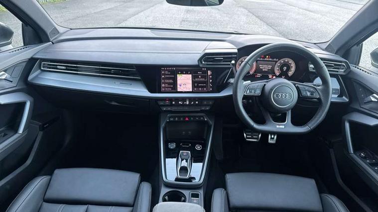Adjustable speed limiter, Audi drive select, Audi smartphone interface with app store includes wireless Apple carplay, Android auto and Amazon alexa integration, Audi virtual cockpit plus - 12.3" full HD resolution dynamic digital instrument cluster, Automatic start/stop system with recuperation, Bluetooth interface, Camera based traffic sign recognition, Collision avoidance assistant, Cruise control, Distraction and Fatigue warning, e-Call (emergency call), Electromechanical power speed sensitive steering, Emergency assist, Lane departure warning system, MMI Navigation Plus with high resolution 10.1" colour touch screen display, Park Assist with parking system Plus, Service indicator, Trip computer, Voice control system with natural language interaction, Sports suspension, Audi Phonebox light with wireless charging, Audi sound system - 10 loudspeakers including centre loudspeaker and subwoofer, DAB Digital radio, USB ports with charging function in the rear, Acoustic glass windscreen, All weather light, Aluminium window trim, Auto dimming frameless rear view mirror, Automatic dynamic range control, Body colour exterior mirrors, Chrome exhaust tailpipes, Dipped beam, main beam, position light and turning light, Electrically adjustable/heated/folding/auto dimming door mirrors with integrated LED indications + kerb view function for passenger side, Exterior model badging, Front and rear side air inlets in grained matt black with dark liquid chrome frame, Front electric windows, Front radiator grill in high gloss dark chrome, Heat insulating glass windscreen, Illuminated door sills with aluminium inserts at the front with S logo, Intersection light, LED 3rd brake light, LED brake lights, LED daytime running x3, LED headlights with LED rear lights and dynamic rear indicators, LED rear number plate lights, LED reverse light, LED tail lights, Light and rain sensors, Manoeuvring light, Motorway light, Privacy glass - dark tinted rear window, rear door and side windows, Rear boot, Rear diffuser and grill in grained matt black with inlay in dark liquid chrome, Rear electric windows, Rear side wing doors, S line bumpers, Side S line emblems on front wings, Side sill trim in dark liquid chrome, Static cornering light, 12V socket and storage compartment in front centre console, 3 seat bench in 2nd row, 3 spoke flat bottomed leather multifunction sport steering wheel with gear shift paddles, 3-zone deluxe automatic air conditioning, 4 way electrically adjustable lumbar support for driver and front passenger, 40/20/40 split folding rear seat bench, Black cloth headlining, Black front and rear floor mats, Front and rear centre armrest in artificial leather with contrasting stitching on armrests and instrument panel, Front and rear headrests, Heated front seats, Height and reach adjustable steering wheel, Manual boot compartment lid, Manually adjustable front seats, Rear centre armrest with cupholder, S badging on the steering wheel, Seat side bolsters, Single front passenger seat, Stainless steel pedals and front footrest in black, Twin leather upholstery with front sports seats S embossed logo, Aluminium interior elements pack - A3, Multi-coloured LED interior lighting package with Multi-coloured contour lighting of instrument panel - A3, 3x3 point rear seat belts, Driver and front passenger airbag with passenger airbag deactivation, Electronic Stabilisation Control (ESC) including ABS, ASR and EDL, First aid kit with warning triangle and 2 safety vests, Front side airbags with head airbags and interaction airbag, Hill hold assist, Pre-sense front with pedestrian and cyclist detection, Seatbelt monitoring, Tyre pressure loss indicator, Anti theft alarm, Anti-theft wheel bolts, Electronically operated child locks, Immobiliser, Remote central locking with safelock, Black dashboard, Inlay in dark aluminium spectrum,
