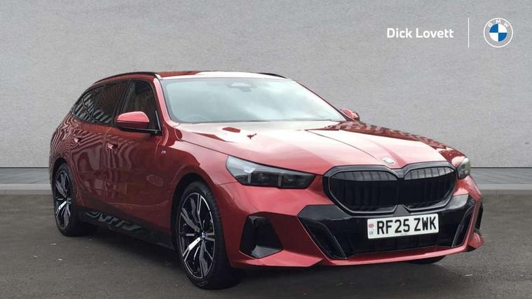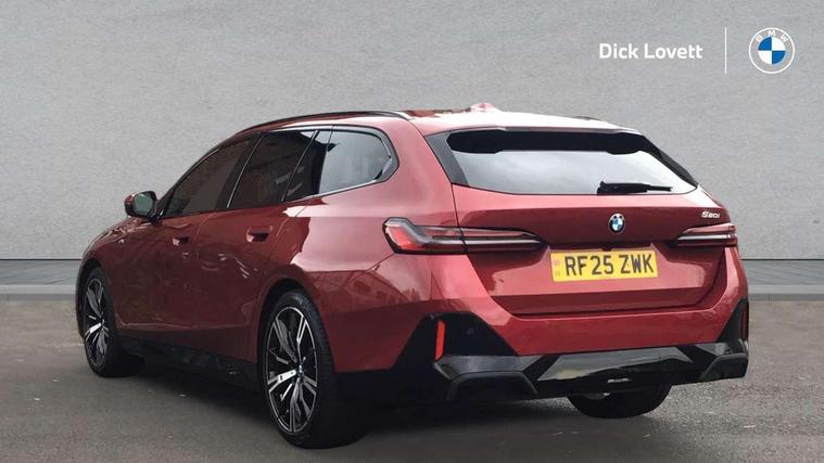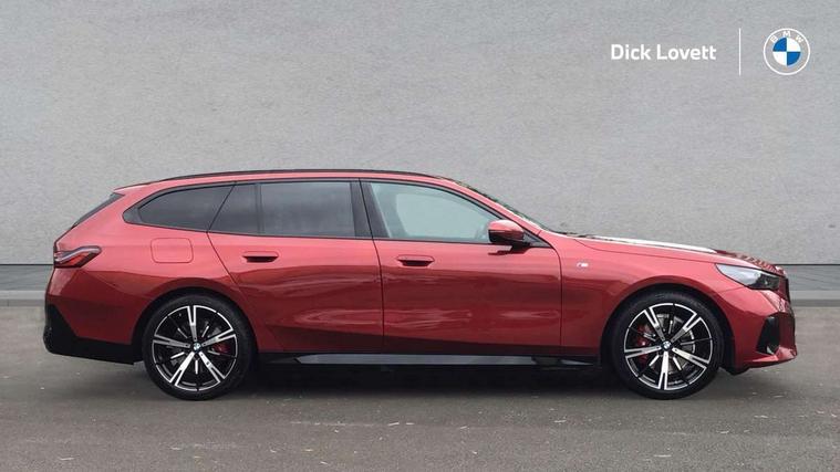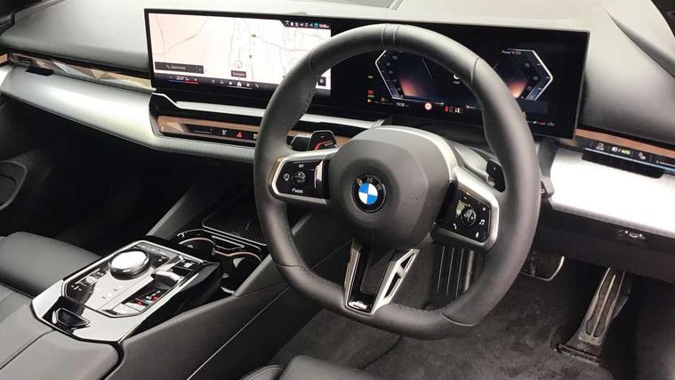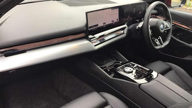 Automatic tailgate operation, BMW ConnectedDrive online services, BMW legal emergency call, BMW Teleservices, Brake pad wear indicator, Cruise control with brake assist, Driving Assistant Plus Preparation, Front collision warning with brake intervention, Lane departure warning with active return, Left turn warning with brake function, Multifunctional instrument panel, Oil sensor for level and grade, On board computer inc. average speed, fuel consumption, liquid crystal Info display, journey computer, outside temperature display, personal profile, On-board diagnosis - OBD, PAS, Personal e-SIM, Powered by Operating System 7.0, Run flat indicator, Service interval indicator, Speed limit Info with manual speed limit assist, Stop/start button, 8 speed automatic steptronic transmission with gearshift paddles, Expert mode, Launch control, DAB tuner, Acoustic glazing, Adaptive LED Headlights, Automatic cornering lights, Automatic windscreen wipers and automatic headlight, BMW selective beam, Body colour door handles, Body coloured bumpers, Dynamic brake lights with LED technology, Electric adjustable door mirrors, Electric front and rear windows with fingertip open/close + anti-trap facility and comfort closing function, Follow me home headlight function, Headlight elements in blue, Heated windscreen washer jets, LED daytime running lights, LED third brake light, Light colour close to that of ordinary daylight, M high gloss shadow line with extended contents - Radiator grille frame, struts and strip in rear light, M light shadowline - Dark design of selected elements of the headlight and rear lights, M Sport rear boot spoiler, Optimum, homogeneous illumination of the road, Rear side wing doors, Rear wiper, 2 zone automatic air conditioning, 3 seat bench in 2nd row, 3 spoke leather M steering wheel in BMW M specific design with M badge, Armrest - front and rear integrated door trim, centre console includes storage compartment, rear centre includes 2 cupholders, Child seat ISOFIX attachment with rear outer seats includes top tether, Electric adjustable front sports seats, Electric adjustable steering column, Electrically adjustable lumbar support for driver and front passenger, Heated driver and front passenger seats, High-gloss black door switch cluster, power window switch and tailgate button on first and second row seat, M Anthracite headlining, M Sport pedal covers in stainless steel, Rear headrests, Single front passenger seat, Through loading system with 40/20/40 rear seat backrest split, Velour floormats, Wireless charging tray, Ambient lighting pack - 5 Series/I5, BMW Iconic glow kidney grille exterior package, Connected package professional - 5 Series/I5, Driving assistance pack - 5 Series/I5, Expanded exterior mirror package - 5 series/I5, M high gloss shadow line pack - 5 Series/ I5, M Sport exterior styling pack - 5 Series/I5, 3 rear three point seatbelts, Active protection, Airbag deployment is controlled with respect to the intensity and scope, Anti-lock braking system (ABS), Brake assist, Brake energy regeneration, Cornering brake control (CBC), Crash sensor activating central locking release, hazard warning lights, fuel cut off and interior lighting, Driver and front passenger airbags, Driver central airbag, Driver/front passenger side airbags, DSC - Dynamic Stability Control, Dynamic brake control, Dynamic Traction Control - DTC, Electromechanical parking brake with automatic drive away release and auto hold function, Electronic brake force distribution, Engine drag torque control, Front and rear brake discs with interior ventilation, Front and rear curtain airbags, Front head restraints with anti-whiplash, Head airbags for first and second row seats, Hill start assist, Locking of doors after driving off, M seat belts, Mechanical child proof lock on rear doors, PC iBrake PostCrash approach control warning with light braking function, Side impact protection, Trailer stability control, Two tone horn, Tyre pressure monitoring system, Warning triangle and first aid kit, Alarm system, Locking wheel bolts including wheel bolt adapter, Tyre repair kit,