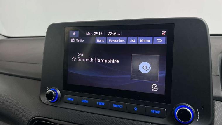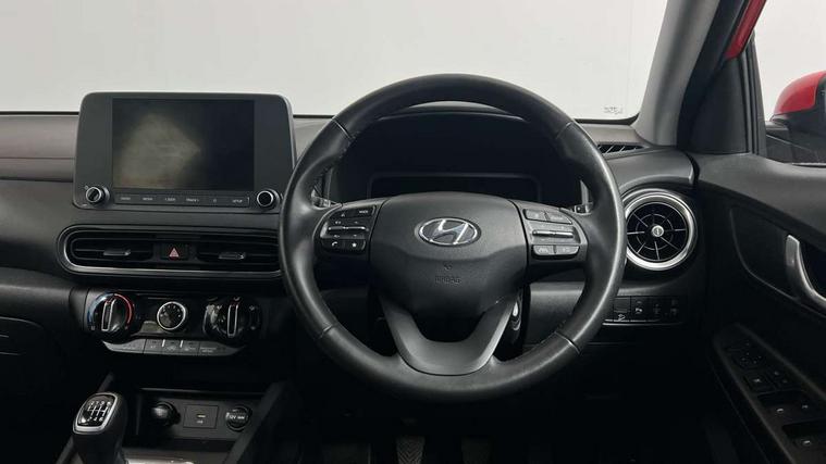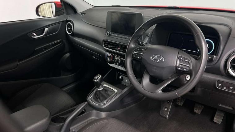 8" Touchscreen display audio + smart device integration, Bluetooth connectivity, Cruise control + speed limiter, Digital clock, Driver attention warning, Driver supervision instrument cluster with 10.25" LCD display, eCall emergency call system, Forward collision avoidance assist with pedestrian detection, Lane follow assist, Lane keep assist, Leading vehicle departure alert (LVDA), Parking system with rear camera and guidance system, PAS, Phone connection with apple carPlay and android auto, Rear parking sensor, Roadside assistance, Windscreen washer fluid sensor and warning indicator, 6 speakers (2 front, 2 tweeters, 2 rear), Front USB ports, RDS and Digital DAB, Steering wheel mounted audio/phone controls, Automatic headlights with dusk sensor, Body colour door mirrors and handles, Door mirror integrated indicators, Electric front/rear windows with drivers one touch/anti-trap, Electrically adjustable and heated door mirrors, Halogen headlights, Halogen rear lights, LED daytime running lights, Positioning Lights - LED, Rear spoiler with integrated LED brake light, Rear wiper, Roof rails, Tinted glass with front door glass and windscreen with shade band, 12V power outlet in front console, 60/40 split folding rear seat, Adjustable head restraints, Air conditioning, Centre interior light, Cloth upholstery, Door scuff plate, Driver's seat height adjustment, Driver/passenger sunvisors and illuminated vanity mirrors, Front interior light, Front passenger seat manual adjustments, Height/reach adjustable steering column, Isofix rear child seat fastenings, Leather wrapped steering wheel and gear knob, Luggage compartment lighting, Luggage hooks, Metal paint effect interior door handles, Parcel shelf, Rear centre console with air vents, Sunglasses holder, Vertical adjustment rear head restraints, Trailer wiring package - Kona, Airbags - front, front side and curtain airbags, Anti-lock brake system, Childproof rear door locks, Downhill brake control, EBD + Brake Assist, Electronic stability control, Fasten seatbelt reminder, Fixed 3 point for second row centre passenger seatbelt, Front seatbelt pretensioners, Height adjustable front seatbelts, Hill start assist control (HAC), Manual parking brake, Passenger airbag deactivate switch, Rear seat alert, Traction control, Tyre pressure monitoring system, Alarm/immobiliser, Deadlocks, Folding key, Locking wheel nuts, Remote central locking, 17" alloy wheels,