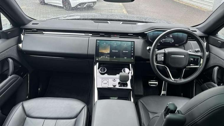 13.1" Touchscreen, 3D 360 degree surround camera with wade sensing, Adaptive cruise control with steering assist, Android Auto, Apple car play, Blind spot assist, Bluetooth connectivity streaming, Driver condition response, Eco mode, Electric power assisted steering (EPAS), Interactive Driver display instrument cluster, Lane departure warning system, Lane keep assist, Push button start, Rear collision monitor, Rear traffic monitor, Remote, Traffic sign recognition with adaptive speed limiter, Trip computer, Wireless device charging with phone signal booster, 8 speed automatic transmission, Adaptive dynamics, All wheel drive system, Automatic access height, Home charging cable, Public charging cable, Terrain Response 2, Twin speed transfer box, DAB Radio (Digital Audio Broadcasting), Incontrol protect - SOS emergency call with automatic collision detection, optimised assistance call and Incontrol remote app essential, Pivi pro connected, USB/aux input socket, Adaptive brake lights, Automatic headlight levelling, Automatic headlights, Centre high mounted stop light, Electric heated/power fold memory door mirrors with approach lights and auto dimming driver side, Electric windows with one touch open/close and anti trap, Flush deployable exterior door handles, Follow me home lighting, Front and rear recovery eyes, Headlight power wash, Heated rear window, Heated washer jets, Heated windscreen, Integrated twin tailpipes, LED tail lights, No badges, Rain sensing windscreen wipers, Rear animated directional indicators, Rear fog lights, Rear side wing doors, Rear wash/wipe, Remote window closing, Side repeater indicators in mirror, Trailer stability assist, Winter wiper park position, 3 seat bench in 2nd row, 60:40 seats with power recline and loadthrough, Air quality sensor, Auto air recirculation, Bright metal foot pedals, Centre console with armrest, Customer configurable single point entry, Driver's footrest, Easy boot loading, Ebony console door armrests and seatbelts, Electric adjustable steering column, Front and rear cupholders, Front door storage space, Front head restraints, Front map lights, Front seat back map pockets, Front stowage pocket, Front/rear passenger grab handles, Gearshift paddles, Heated steering wheel, Isofix child seat preparation, Loadspace cover, Loadspace Hook, Loadspace light, Loadspace mounting provisions, Lockable glovebox, Luggage tie-downs in loadspace, Multifunction steering wheel, Pollen filter, Power socket, Rear centre armrest, Rear head restraints, Rear ISOFIX, Single front passenger seat, Three 12V accessory power outlets, Upper secondary glovebox, Online pack with data plan - Range Rover Sport, 3 point seatbelts on all seats, Anti-lock braking system (ABS), Brake pre-fill technology, Configurable autolock, Cornering brake control (CBC), DSC - Dynamic Stability Control, EBD - Electronic brakeforce distribution, Electric parking brake, Electronic traction control, Emergency braking, Front seatbelt pretensioners, Front side airbags, Height adjustable front seatbelts, Hill descent control, Hill launch assist, Low traction launch, Occupant protection assist, Passenger seat occupant detector with front airbags, Power operated child locks, Roll stability control, Seatbelt warning, TPMS (Tyre pressure monitoring system), Immobiliser, Intrusion sensor, Keyless entry, Locking wheel nuts, Perimetric and volumetric anti theft alarm, Remote locking, Moonlight noble chrome interior finishers,