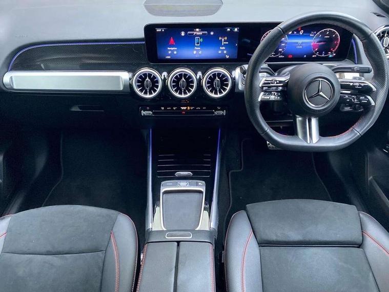10.25 inch touchscreen central media display, 10.25" Digital instrument cluster display screen, 12 ultrasonic sensors in front and rear bumpers, 180 degree reversing camera with parking guidelines, Additional drive program "OFF-ROAD", Assisted parking: reversing backwards into perpendicular and parallel parking spaces, Attention assist - Monitors steering behaviour and long journey fatigue, Bluetooth connection, Brake pad wear indicator warning light, Car wash mode, Convenience opening and closing, Direct steering, DYNAMIC SELECT with a choice of driving modes (ECO, Comfort, Sport and Individual), ECO start/stop function, Engine start/stop button, Fluid level warning indicator for fuel, oil, coolant and washer fluid, Hard disk navigation, Hey Mercedes Voice activation, Lamp failure indicator, Lane keep assist, MBUX navigation premium, Mercedes me connect including emergency call system, accident recovery, breakdown and maintenance management, Mercedes me remote services, Outside temperature gauge, Owners manual and service booklet in English, Pre-installation of private car share, Preinstallation for parking damage notification, Radio aerial integrated into front and rear windshields, Remote boot closing, Service indicator (ASSYST), Smartphone integration with Apple CarPlay and Android auto, Speed limit assist, Tailgate, Trip computer in multifunction display with current consumption indicator, Ultrasound sensors - positioned in the handle of the tailgate, Wireless charging, Comfort suspension with ride height lowering, Rear axle multi-link, 1 USB-C port in the oddments compartment (Charge + Data transfer), 2 USB-C ports for the rear on the centre armrest (Charge only), 2 USB-C ports under the front centre armrest (Charge + Data transfer), DAB digital radio tuner, MBUX multimedia system, Mercedes Benz sound system (100 W) with 6 speakers, Pre installation for Mercedes Benz Link, Adaptive brake lights, Adaptive high beam assist, AMG front apron with front splitter in the colour of the vehicle with chrome trim element, AMG rear apron with visible tailpipe trim and chrome trim element, AMG specific/dual flow exhaust pipes in chrome (non-functional), Auto dimming rear view mirror, Beltline trim and window line trim strip in high gloss aluminium, Black grained side sill trim with chrome inlay, Body coloured door handles, Electric adjustable and heated door mirrors with integrated LED side indicators, Electric folding door mirrors, Front and rear electric windows, Headlamp assist automatic headlamp activation, Heat insulating dark-tinted glass starting from B-pillar, Heated glass rear windscreen + timer control, High level LED third brake light, Interior mirror with black reading lamps and frameless, LED high performance headlamps with integrated LED daytime running lights, LED tail lamp, Polished aluminium roof rails, Radiator grille as a diamond grille with chrome pins and central Mercedes star, Rain sensor windscreen wipers, Rear fog lamp, Rear side wing doors, Rear wiper, Single louvre in matt grey with chrome inserts and black highlights, Two visible tailpipe trim elements exhaust, Ultrasonic sensors - positioned in the front and rear bumpers, Wheel arch liners in the colour of the vehicle, 12V socket in the oddments compartment, 3 seat bench in 2nd row, 3 twin spoke flattened multifunction steering wheel in nappa leather - horizontal twin spoke in high gloss black, vertical twin spoke in silver chrome, 4 way adjustable lumbar support, 40:20:40 split folding rear seats, Air vents with silver chrome surrounds, AMG floor mats, AMG sports pedals with brushed stainless steel surfaces and black rubber studs, Automatic child seat recognition sensor, Black roof lining, Door handles with chrome inserts, Fluorescent jacket, Front and rear headrests, Front centre armrest with stowage, Galvanised steering wheel gearshift paddles in silver chrome, Handle recess lighting, Heated front seats, Height adjustable head restraints, Height/reach adjustable steering column, Interior lighting - 64 colour Ambient lighting, Luggage net on driver/front passenger seat backrest, Single front passenger seat, Sports seats, Stowage compartment with retractable cover, Sun visors with illuminated vanity mirrors, THERMATIC automatic climate control, Third row of seats for two people on rear seat, Twin front cup holders, Two outer rear seat isofix and top tether child seat fixing points, Easy pack tailgate, Interior lighting with light and sight pack - GLB, Seat comfort package - GLB, 3 rear 3 point seatbelts, Active bonnet pedestrain safety measure which detects an impact and raises bonnet by 65mm, Active brake assist includes forward collision warning system with autonomous braking, Adaptive brake assist with hold function and hill start assist, Airbags - kneebag for driver, Anti-lock braking system (ABS) with brake assist, Black seatbelts, Bonnet with power domes, Childproof locks manually operated for rear doors and electrically operated for rear power windows, Crash responsive emergency lighting, Curve dynamic assist, Downhill speed regulation (DSR), Driver and front passenger head and sidebags, Driver and front passenger windowbags, Dual stage driver and front passenger airbags, Electric parking brake, Electronic stability programme with acceleration skid control, Front and rear seatbelt reminder, Front brake callipers with Mercedes Benz lettering, Front passenger seat occupancy sensor, Perforated front brake discs, Tyre pressure monitoring system, Warning triangle and first aid kit, Guard 360 degree vehicle protection - Anti theft alarm system, tow away protection with visual, acoustic warning and alarm, Interior monitoring system, Keyless Go Access and drive authorisation system, KEYLESS-GO starting function, Remote central locking and crash sensor with emergency opening function, Thatcham category 1 alarm system with immobiliser and interior protection, Vehicle key with KEYLESS GO functionality, Carbon structure 