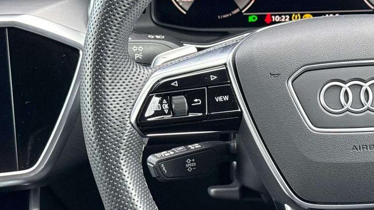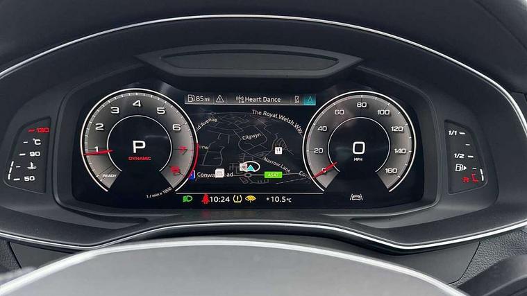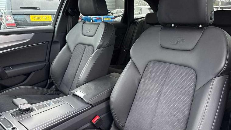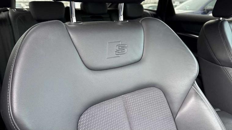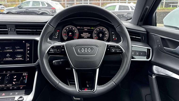 7" high resolution colour driver information display system, Audi connect safety and service (e-call), Audi connect with Amazon Alexa Integration, Audi drive select, Audi parking system plus - acoustic and visual park assist system for front and rear, Automatic start/stop system with coasting functionality, Bluetooth interface, Lane departure warning system, Power operated tailgate, Progressive steering, Rear view camera, Service interval indicator, Smartphone interface includes wireless Apple carplay/Android Auto, Voice control system, Sports suspension, Audi front music interface, Audi sound system, Auxiliary input socket, DAB Digital radio, USB connection, Aluminium roof rails, Body coloured door mirrors, Electric front/rear windows, Frameless auto dimming interior rear view mirror, Front intermittent wipers, Headlight washers, Heat insulating darkened glass in side and rear windows, Heat insulating glass in windshield, LED signature front daytime running light, LED third brake light, Matrix LED headlights, Matt black side air intake grille with inlay in matt aluminium, Privacy glass, Radiator grille in anthracite black matt, single frame in chrome and horizontal struts in matt aluminium silver, Rain and light sensors, Rear side wing doors, Rear wiper, S line air inlet design with inlay in matt aluminium, S Line badge on front fender, S Line front and rear bumpers, S line rear diffuser and grille in matt black with matt aluminium tailpipes, S Line roof edge spoiler, S Line side skirts, Signature rear LED light design, 2 zone deluxe electronic climate control, 4 way electric lumbar support for driver and front passenger, 40/20/40 split folding 3 rear seat bench in 3 parts with rear centre armrest, Black cloth headlining, Black steering wheel insert, Electrically adjustable front seats with driver memory, Front centre armrest, Front head restraints, Heated front seats, Height/reach adjust steering wheel, Illuminated door sill trims with S logo, Illuminated sun visors with vanity mirrors, ISOFIX child seat mounting and Top Tether with front passenger airbag deactivation, Leather gear knob, Luggage compartment system, Perforated leather steering wheel with contrast stitching, Rear headrests, S line front and rear black carpet floor mats with contrast stitching, Single front passenger seat, Stainless steel pedals and foot rest, LED Interior Ambient Lighting Pack - A6, Non smoking pack - A6, Technology pack - A6, 3 point seatbelts on all seats, Airbags - Front side, front and rear including head, Audi pre-sense front, Black seatbelts, EBD - Electronic brakeforce distribution, Electromechanical parking brake, Electronic Stability Control (ESC) including ABS, ASR and EDL, Extended pedestrian protection measures, Manual child proof rear door locks, Seatbelt monitoring, Tyre pressure warning light, Warning triangle and first aid kit, Anti theft alarm with tow away protection, Anti-theft wheel bolts and wheel loosening detection, Immobiliser, Keyless Go, Remote central locking, Matt brushed aluminium dark inlays,