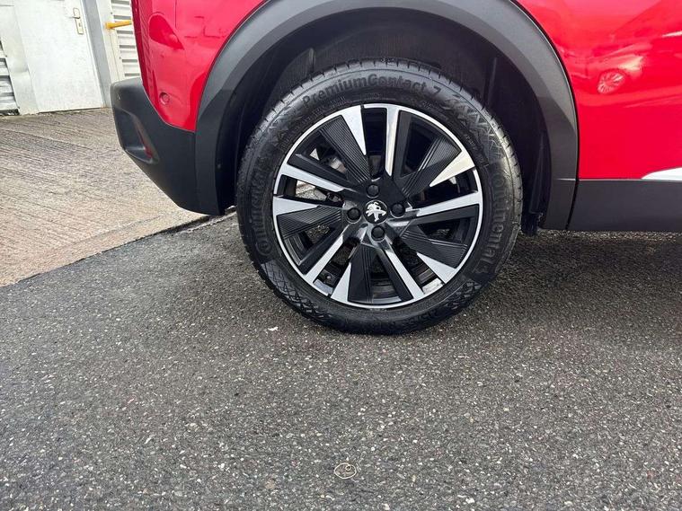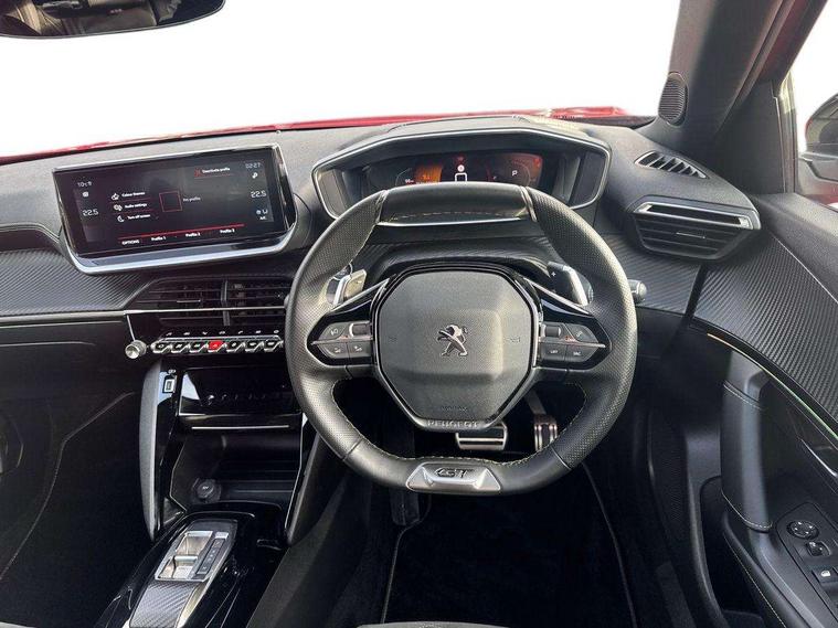 Blind spot monitoring, Bluetooth telephone facility, Connected 3D navigation, Driver attention warning, e-Toggle driving selector, Exterior temperature indicator with ice warning, Lane keep assist, Mirror screen with mirror link, apple carplay and android auto, Multi function trip computer, PEUGEOT i-Cockpit with 10" capacitive colour touchscreen, PEUGEOT i-Cockpit with compact steering wheel, PEUGEOT i-Cockpit with configurable 3D headup instrument panel, PEUGEOT SOS and assistance, Smart phone docking station, Speed limit recognition and recommendation, Start/stop system, Visio Park 1 with 180 degree Colour reversing camera, 2 front USB socket with USB-C, 2 USB sockets in rear, DAB Radio (Digital Audio Broadcasting), Voice recognition for radio, navigation and telephony features, 2 X Rear number plate lights, Acoustic windscreen, Automatic front windscreen wipers, Automatic hazard light activation upon heavy brake application, Black diamond roof, Black front wing trim with gloss black detail and GT badging, Body coloured exterior door handles, Chrome Lion Badge front and rear, Dark tinted rear side and tailgate windows, Diamond black mirror shells, Diamond black rear spoiler (roof), Electric, heated, and power folding door mirrors, Frameless electrochrome interior rear view mirror, Front bumper - Silver lower trim, Full LED headlights with smartbeam assist, Gloss black finish on B pillar, Gloss black longitudinal roof rails, Gloss black rear cluster connecting strip, Gloss black roof bars, Gloss black window surround, GT model designation badging on tailgate, Headlights left on audible warning, LED daytime running lights with 3 claw headlight with distinctive tooth design, LED front fog lamps with remote cornering function, LED side indicator lights integrated into door mirrors, LED third brake light, Model designation badges front and rear, One touch electric front/rear windows with pinch protection, Radiator grille - Dark chrome chequered and gloss black edge trim, Radiator grille - gloss black top edge trim, Rear full LED 3D peugeot signature claw effect lights with daylight function, Rear reversing lights, Rear side wing doors, Rear windscreen wiper triggered automatically in reverse gear, Stainless steel door sill scuff plates, Tailgate with heated rear windscreen and wiper blade, Trailer Stability Programme, Twin chromed exhaust pipes, Variable front intermittent wipers, Welcome lighting, Wheel arch extensions, 1/3 to 2/3 split folding rear seats, 12v power outlet - front, 12V socket, 3 seat bench in 2nd row, 8 Colour personalisable ambient lighting, Aluminium pedals, Automatic air conditioning with pollen and active carbon filter, Central front armrest with storage compartment, Driver and front passenger sport seats, Electric power steering with reach and rake adjustable steering column, Front and rear carpet mats in black with lime green stitch detail, Front centre armrest, Front LED interior light with 2 reading spotlights and rear interior light with timer, Front passenger seat manual adjustment - height, longitudinal and back rest angle, High centre console, ISOFIX child seat mounting points on passenger seat, Lime green contrast stitching to front centre console, door panels and dashboard facia, Mistral full-grain perforated leather steering wheel with Lime Green stitch detail and satin chrome 'GT' emblem, Modular boot floor, Multifunction steering wheel, Paddle shifts, Piano keys: Gloss black and chrome toggle switches to access main functions of the vehicle and touchscreen functions, Roof lining - Mistral black, Seatbelt unfastened on the move audible and visual alert for front and rear seats, Single front passenger seat, Switch for Push Button Start finished in black with chrome surround, Drive assist Plus pack - 2008, Visibility pack - 2008, 2x 2nd row ISOFIX child seat mountings, ABS (Anti-lock Braking System) with EBD (Electronic Brakeforce Distribution) and EBA (Emergency Braking Assistance), Acoustic vehicle alerting system, Active safety brake with night function/cyclists/pedestrians, Adaptive driver and front passenger airbags with passenger airbag deactivation function, Child locking functionality on rear doors, Driver/front passenger side airbags, Electric parking brake, ESP (Electronic Stability Program) + Hill Start Assist, Front and rear curtain airbags, Front and rear disc brakes, Front and rear three-point retractable seatbelts, with force limiters, Front optimised safety headrests and rear retractable headrests (x3), height adjustable, Tyre pressure sensor, Alarm system with anti-lift sensor, Automatic door locking when moving off, Deadlocks, Electronic code immobiliser, Exterior door lock x1 (Left-hand or passenger’s side), Peugeot Open and Go (keyless entry and push button start), Remote central locking, Carbon effect Dashboard, front and rear door panel finish,