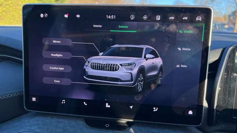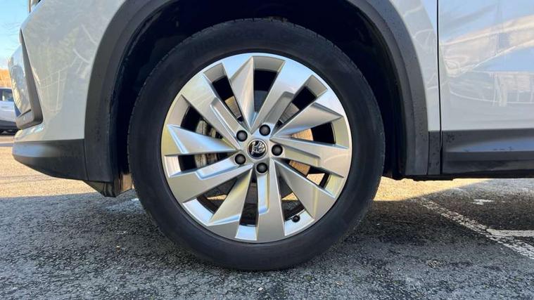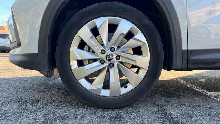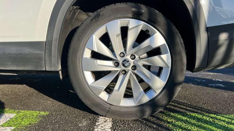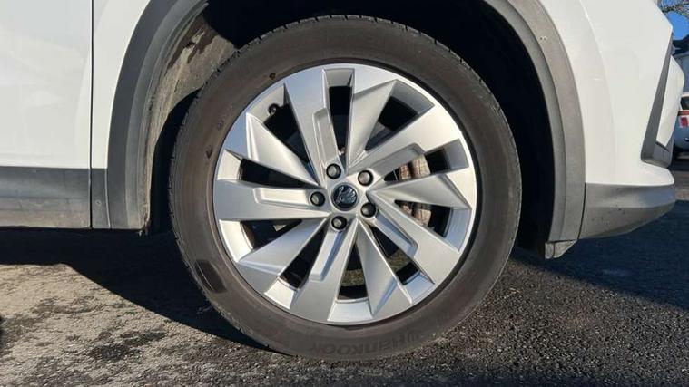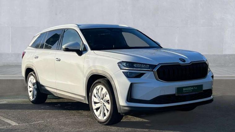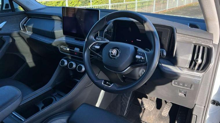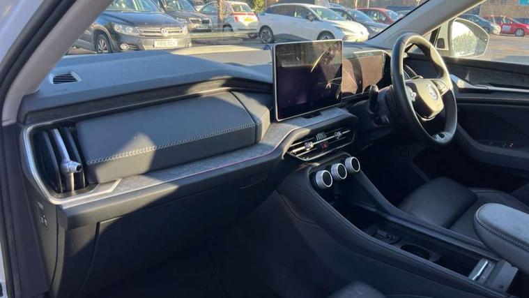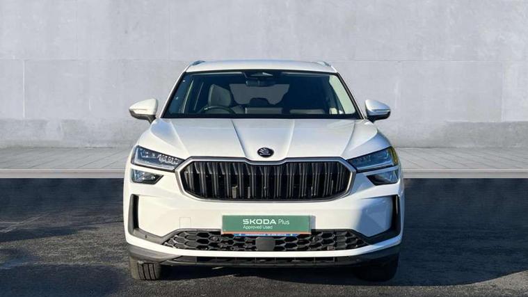 13" satellite navigation touchscreen display, Blind spot detection with door exit warning, Bluetooth system, ChatGPT functionality, Drive mode selector, Driver alert with fatigue sensor, Driver drowsiness alert system, Dry display cleaner, e call+, Front cross traffic assist, Lane assist, PAS, Rear traffic assist, Tailgate unlocking from outside, Traffic sign recognition, USB C Port x 2 in front centre console, Virtual Cockpit - 10.25" digital display, Voice control system, Wireless charging for two smartphones (15W) with cooling function, Wireless SmartLink for Apple CarPlay and Android Auto, Stop/start function, 2x USB-C in the rear, DAB Digital radio, Aero front windscreen wipers with intermittent function, Auto dimming rear view mirror, AWL (all weather lighting) and all weather light with cornering function, Black wheel arch surrounds, Body colour bumpers, Body colour door mirrors and handles, Cornering light and poor weather light, Electric folding /adjustable/separted heated/folding door mirrors, auto dimming with boarding sports and memory function, Electric front and rear windows, Exterior black decorative trims, Heat insulating glass in windshield, Heated rear window, Ice scraper in fuel tank cap, Invisible tailpipe, LED daytime running lights, LED third brake light in rear spoiler, Light assistant with automatic headlight control and coming home feature, Logo projection in door mirrors, Privacy glass, Rear side wing doors, Rear spoiler, Rear window wiper, Red decorative strip between rear LED lights, Safety reflectors on front and rear doors, Unique dark chrome design logo on alloy wheels, Window control switches with black trim, Windscreen wipers with rain sensor, Without engine designation, 1.5l bottle holder points in all door, 12V socket in boot, 1x centre rear reading light, 2 seat bench in 3rd row, 3 configurable smart dials with 32mm coloured display, 3 seat bench in 2nd row, 4 foldable roof handles with rear coat hooks, Ambient interior lighting - Dashboard, front-door stowage compartments, front and rear door panels and footwell lighting, Automatic gear selector on steering wheel, Chrome interior door handles, Driver/front passenger reading lights, Fabric headlining, Fixed bench 40:60:40 split folding backrests, Front and rear floor mats, Front centre armrest with jumbo box storage compartment, cup holder and 12V socket, Front courtesy lights, Height adjustable front headrests, Isofix child seat fittings in outer middle row rear seats and front passenger with top tether, Manually adjustable steering column, Pollen filter, Rear centre armrest with cupholders, Rear seat boot backrest release, Retractable luggage compartment cover, Single front passenger seat, Skoda lettering on steering wheel, Sliding trunk cover, Small Bags on the inner sides of the front backrests, Storage pocket including mobile phone pockets on the backs of the front seats, Sunvisors with illuminated vanity mirrors, Three rear height adjustable headrests, Ticket holder on A Pillar, Tri zone climate control, Umbrella in door panel x1 made from sustainable materials, Upper and lower glovebox with card holder and coin compartment, USB C port by rear view mirror for charging only (15W), Exterior styling pack - Kodiaq, Auto door release and activation of warning lights in the event of an accident, Driver and front passenger airbag with knee airbag and front passenger airbag deactivation, Electric child locks, Electronic parking brake, ESC (incl. ABS+EMD+MSR+ASR+EDL+HBA+DSR+RBS+ESBS+MCB+TSA+XDS), Front assist with braking reaction to vehicles, pedestrians and cyclists, Front disc brakes, Fuel cut off safety device, Height adjustable front 3 point seatbelts + pretensioners, Hill hold control, Junction assist with automatic emergency braking, Rear disc brakes, Safety vest holder in door, Seat belt reminder for all seats, Three point rear seat belts, Two tone horn, Tyre pressure monitor, Anti-theft wheel bolts, Immobiliser, Remote central locking with 2 keys, Breakdown kit,