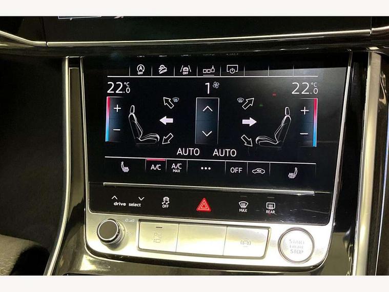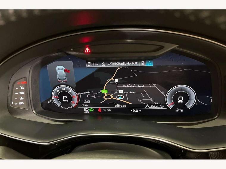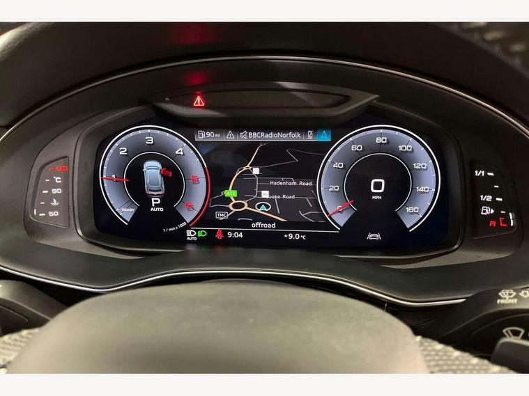 10.1" and 8.6" Dual colour touchscreens, Audi connect safety and service (e-call), Audi drive select, Audi lane departure warning, Audi phone box with wireless charging, Audi smartphone interface, Automatic start/stop system, Electro-mechanical PAS, Low washer fluid indicator, MMI - Multi Media Interface control system, MMI navigation plus with MMI touch, On board computer, Operating buttons in black, glass look with haptic feedback, Power operated tailgate, Rear view camera, Service interval indicator, Virtual cockpit, Voice control system, Adaptive air suspension, Diesel particulate filter, 2 USB ports, Audi music interface, Aux-in socket, DAB Digital radio, Acoustic windscreen, Auto dimming rear view mirror, Coming/leaving home lighting function, Electric front+rear windows, Electric/heated/folding door mirrors with memory, HD Matrix LED headlights with dynamic front and rear indicators, Headlight washers, Heat insulating glass, LED daytime running lights, LED signature DRL, Privacy glass, Rain and light sensors, Rear wiper, S line badges on front wings, S Line body styling, S line front and rear bumpers, air inlets and door trim strips, 4 way electrically adjustable lumbar support for drivers seat, 4 way electrically adjustable lumbar support for front passenger seat, 40:20:40 split folding rear bench seat, Black cloth headlining, Door sill trims with S line logo, Front centre armrest with storage compartment and angle adjustment, Front head restraints, ISOFIX on front passenger and rear outer seats, Luggage compartment sill protection in stainless steel, Rear centre armrest with 2 cupholders, Rear headrests, Self-locking centre differential, Stainless steel pedals, Sunvisors with illuminated vanity mirrors, Tool kit, Top tether anchor plate for isofix child seat, 3 point seatbelts on all seats, ABS, Curtain airbags, Driver and passenger airbags, EDL + ASR, Electromechanical parking brake, Electronic stability control, ESP, Front passenger airbag deactivation, Front side airbags, Hill descent control, Hill hold assist, Pre sense front, Predictive pedestrian protection, Seatbelt warning, Traction control, Tyre pressure monitoring system, Warning triangle and first aid kit, Anti theft alarm, Anti-theft wheel bolts and wheel loosening detection, Immobiliser, Keyless Go access/ignition system, Remote central locking, Tyre repair kit,