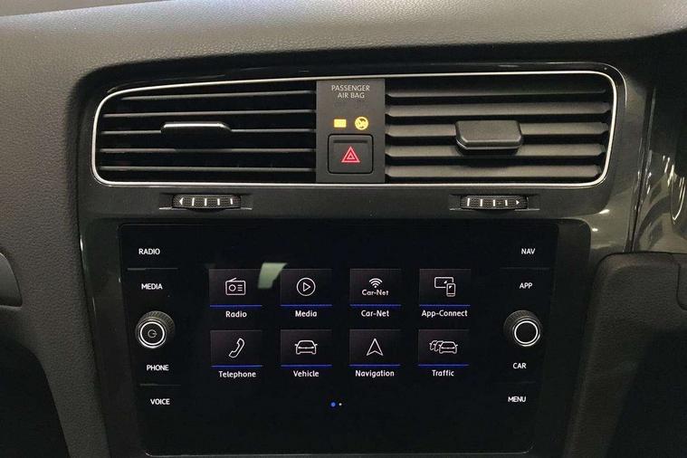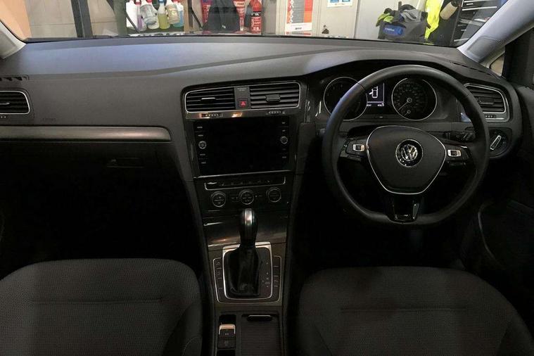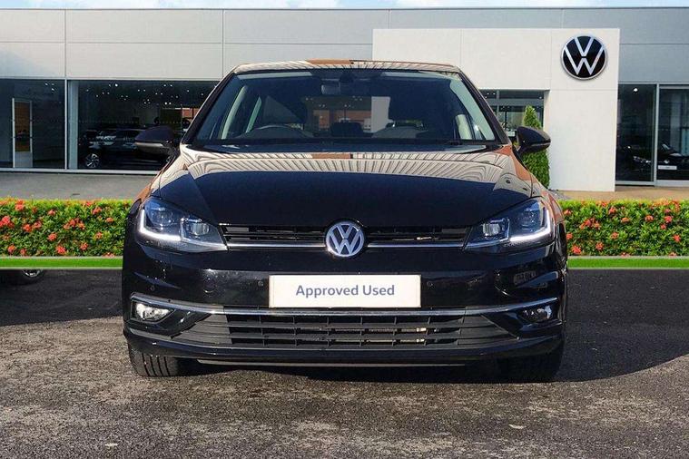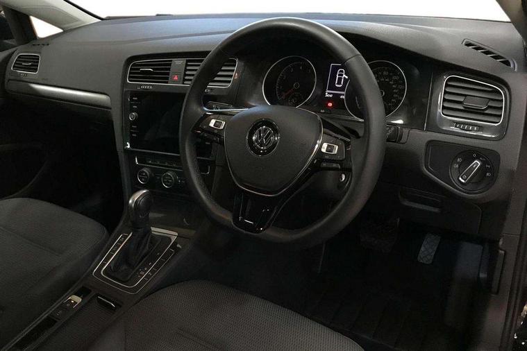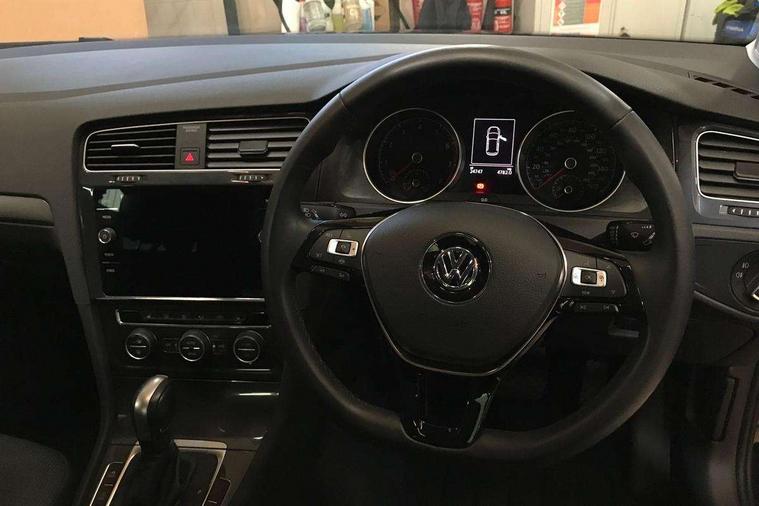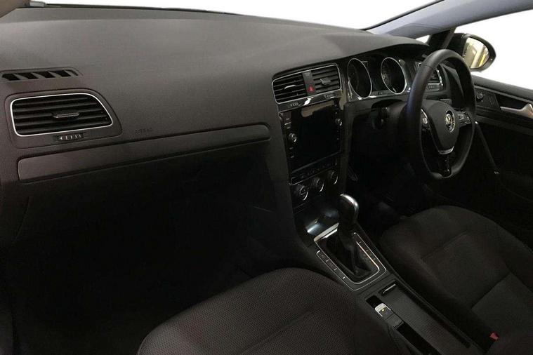 'Lights On' Reminder warning buzzer, ACC - Adaptive cruise control with front assist, forward collision warning, distance monitoring, city emergency brake and speed limiter, Bluetooth telephone and audio connection for compatible devices, Brake pad wear indicator warning light, Driver alert system, Driving Mode Selection with four preset modes - Eco, normal, sport or individual modes, Multifunction computer with visual gear change recommendation for fuel consumption, Power assisted speed sensitive electro-mechanical steering, Push tank flap, Speed limit display, Speedo, rev counter, electronic odometer, trip, service interval display, exterior temperature and fuel gauge, Stop/start system, Think blue trainer driver tips and journey analysis, Warning buzzer and light for front seatbelts unfastened, Battery regeneration during braking, XDS electronic differential lock, Composition media system, DAB Digital radio receiver, Driver Personalisation profile selection, MP3/WMA compatability, Multi device interface (MDI) via USB connection, Premium USB cable in choice of either Apple or Android smartphone compatibility, SMS Functionality, Title and cover art display, USB and SD card connectivity, Volkswagen media control, Black front air intake and radiator grille with chrome insert, Black rear diffuser, Body colour bumpers, Body colour door handles, Body colour door mirrors with integrated indicators, Dusk sensor + automatic driving lights, Electric front windows, Electric rear windows, Electrically adjustable and heated door mirrors, Fully galvanised body, Heated rear windscreen, High level 3rd brake light incorporating LED Technology, LED front fog lights with static cornering light function, Range adjustable headlights via infotainment system with LED daytime running lights, Rear fog lamp, Rear number plate lights incorporating LED technology, Rear tinted glass 65% light absorbing from B pillar backwards, Rear window aerial, Rear window wash/wipe with intermittent wipe, Reflectors in all doors, Tailgate with integrated rear roof spoiler, Windscreen wipers/ intermittent wipe + 4 position delay, 12V socket in luggage compartment, 3 rear headrests, 4 load lashing points in luggage compartment, 60/40 split folding rear seat backrest, Bag hook in luggage compartment x 2, Climate control - 2 zone electronic air conditioning with automatic air recirculation and allergy filter, Cooled glovebox, Cover for storage compartment in centre, Dust/pollen filter, Front and rear reading lights X 2, Front centre armrest with storage compartment and two rear air vents, Front seat back storage pockets, Grab handles front x 2, rear x 2 with integrated coat hooks, Height and reach adjustable steering wheel, Illuminated vanity mirrors, Instrument lighting white adjustable panel illumination, Interior light delay, Isofix preparation for 2 rear child seats, Load through provision with rear centre armrest and cupholders x2, Luggage compartment lighting, Overhead storage box, Pearl grey headlining, Storage box in luggage compartment, Storage compartment in roof console with cover, Storage compartments in centre console, Storage compartments in front doors, Storage compartments in rear doors, Stowable luggage compartment cover, Sun visors, Variable boot floor, height adjustable and removable, Convenience Pack - Golf, Mirror pack - Golf, Winter pack - Golf, 3 rear three point seatbelts, Airbags - Driver's and front passenger's, curtain airbag, Driver's knee, front side impact and passenger's airbag deactivation switch, Anti-lock Braking System (ABS) with Hydraulic Brake Assist (HBA), Automatic post collision braking system, Child locks on rear doors, Driver/Passenger optimised head restraints, Electronic parking brake with auto hold, Electronic stability control (ESC) including Electronic differential lock (EDL) and ASR (Traction control) with deactivation via infotainment system, Front ventilated disc brakes and rear disc brakes, Pre crash preventive occupant protection, Three point height adjustable front seatbelts with tensioners, Tyre pressure loss indicator, Alarm with interior protection and deactivation via infotainment system, Electronic engine immobiliser, Brushed dark silver decorative inserts in dash and door panels, Chrome plated air vent surround, Chrome-plated light switch surround, Polar night black decorative inserts in centre console, Steel space saver spare wheel,