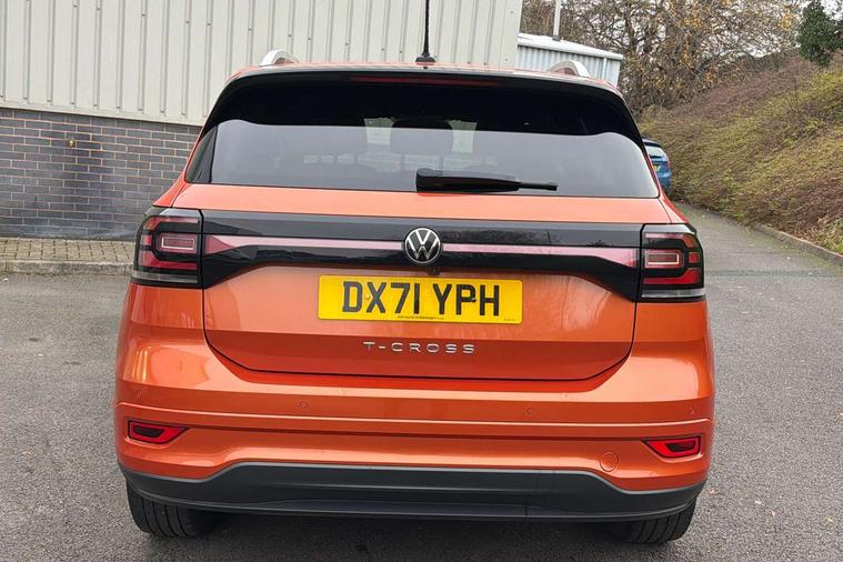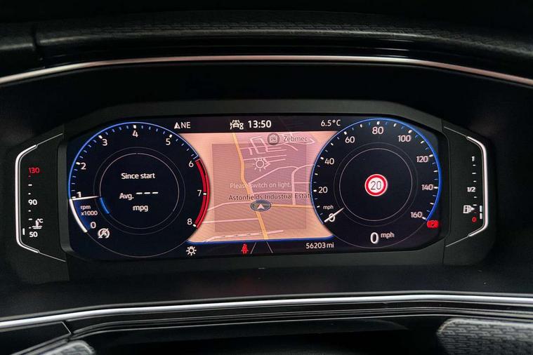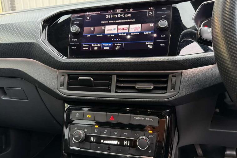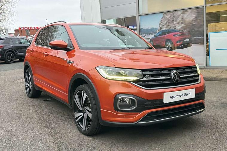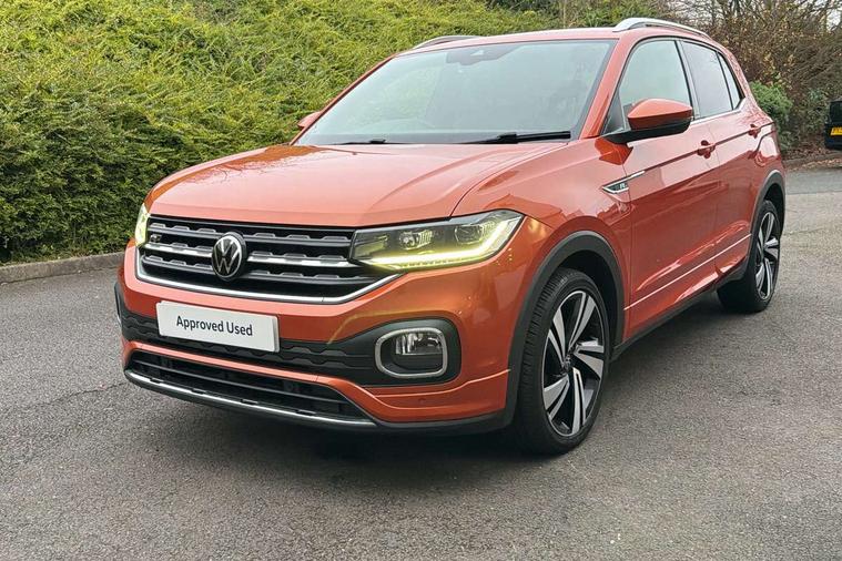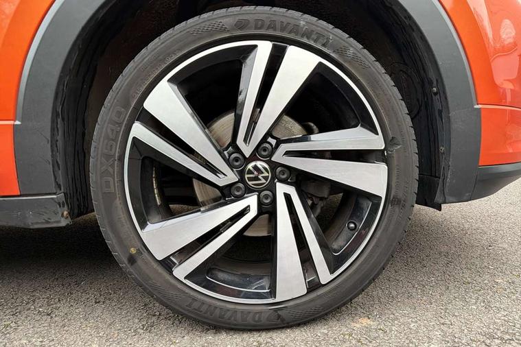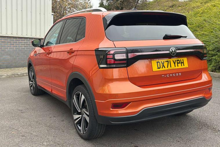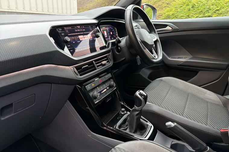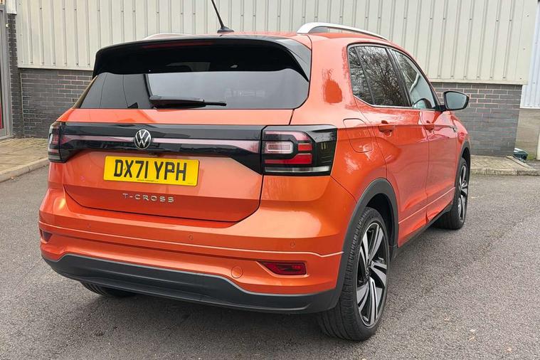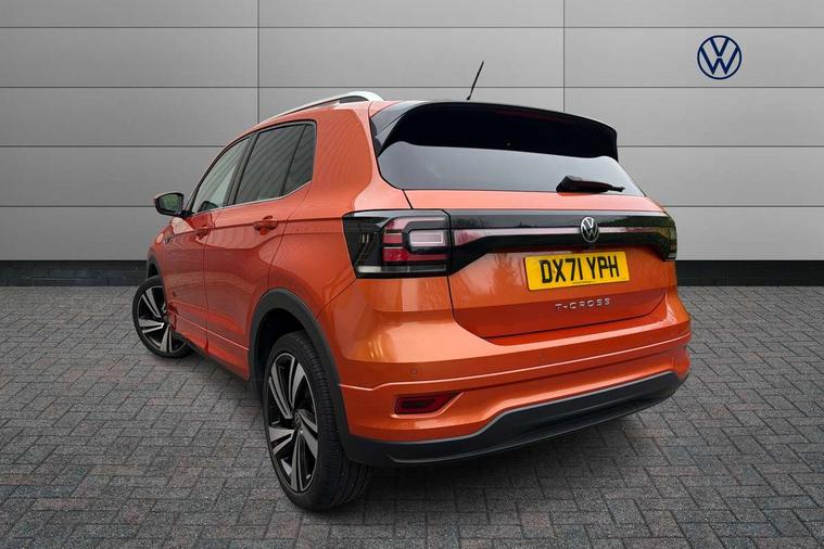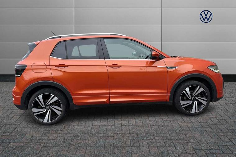 'Lights On' Reminder warning buzzer, 2D/3D map view, Adaptive cruise control including front assist, forward collision warning, autonomous emergency braking, speed limiter, Blind spot monitoring, Bluetooth telephone and audio connection for compatible devices, Car information display, Digital Cockpit Pro - Active info display, Driver alert system, eCall emergency call system, Lane assist, Low washer fluid warning light, Multifunction computer with visual gear change recommendation for fuel consumption, Operating permit alteration, Power assisted speed sensitive steering, Speed limit display, Speedo, rev counter, electronic odometer, trip, service interval display, exterior temperature and fuel gauge, Stop/start system, Warning sound and light for doors and tailgate open, Warning sound and light for front seatbelts unfastened, We connect plus preparation, Wireless Car net app connect with Apple CarPlay, combined functionality of Apple CarPlay/Android Auto and MirrorLink, Battery regeneration during braking, Misfuel prevention device, 2x USB connection with USB charging sockets and in rear centre console, DAB Digital radio receiver, Diversity antenna for FM reception, Multi device interface (MDI) with USB connection, Music playback - MP3, WMA and AAC files, Premium USB cable for Apple or Android smartphone compatibility, Simultaneous pairing of 2 compatible mobile devices, SMS Functionality, Three route options - Fast, Short, Eco, Title and cover art display, Automatic hazard lights activation under emergency braking, Body colour door handles, Body colour rear roof spoiler, Body coloured bumpers, Dusk sensor + automatic driving lights, Electrically foldable, adjustable and heated door mirrors with reverse activated kerb view adjustment on passenger's side, Front and rear electric windows, Front fog lights with static cornering function, Galvanised body, Heated rear window, High level 3rd brake light, Lower door sills and door pillars in black, Radiator grille with chrome trim and chrome bezel front fog lamp, Rear fog light on one side, reversing light on both sides, Rear lights incorporating LED technology, Rear tinted glass 65% approx light absorbing from B pillar backwards, Rear window aerial, Rear windscreen washer and wiper with interval delay, Reflectors in all doors, Silver roof rails, Stainless steel door sill protection, Tailgate with integrated roof spoiler, Unique R Line badging, Windscreen wipers/ intermittent wipe + 4 position delay, 12V Accessory socket in centre console, 2 Front and rear reading lights incorporating LED technology, 2 Zone electronic climate control with automatic air recirculation, 3 rear head restraints and 3 rear three point seat belts with ECE label, 60/40 split folding rear seat backrest, Ambient lighting and sourround lighting, Black headlining, Branded points of interest, Brushed stainless steel pedals, Carbon flag cloth upholstery, Drawer under drivers seat, Driver and front passenger sunvisor with vanity mirror, Driver's sunvisor with ticket holder, Dust and pollen filter, Front and rear carpet mats with contrast stitching, Front centre armrest with storage compartment, Front footwell illumination, Front seat back storage pockets, Front seat R Line logo with rear seat backrest, Front sports seat with height and lumbar adjustment, Glovebox, Heating and fresh air system with 4 stage blower, Height/reach adjust steering wheel, Instrument lighting white adjustable panel illumination, Interior light with delay, Isofix child seat preparation for 2 rear child seats, Leather trimmed three spoke multifunction steering wheel with contrast stitching and aluminium inserts with R Line logo, Luggage compartment cover, Luggage compartment lighting, Moveable and foldable Rear bench seat, Scuff plates in door apertures, Steering wheel paddle shift, Storage compartment in drivers and front passengers door, Variable boot floor, R Line styling pack - T-cross, Anti-lock Braking System (ABS) with Hydraulic Brake Assist (HBA), Automatic post collision braking system, Driver and front passenger safety-optimised head restraints, Drivers and Front Passengers airbags with front passengers airbag deactivation switch, ESC with EDL, ASR, EDTC and trailer stabilisation function, Extended and proactive pedestrian protection, Front and rear curtain airbags, Front seat side impact airbags, Height adjustable 3 point automatic front seatbelts with pretensioners, Hill start assist, Pre crash preventive occupant protection, Rigid safety cell with front and rear crumple zones, Single torn horn, Tyre pressure loss indicator, Volkswagen roadside assistance, Alarm with interior protection and deactivation via infotainment system, Child security locks in rear doors, Electronic engine immobiliser, Remote tailgate unlocking using key fob, Race decorative inserts in dash and doors, 18" Nevada black alloy wheels, Breakdown kit,