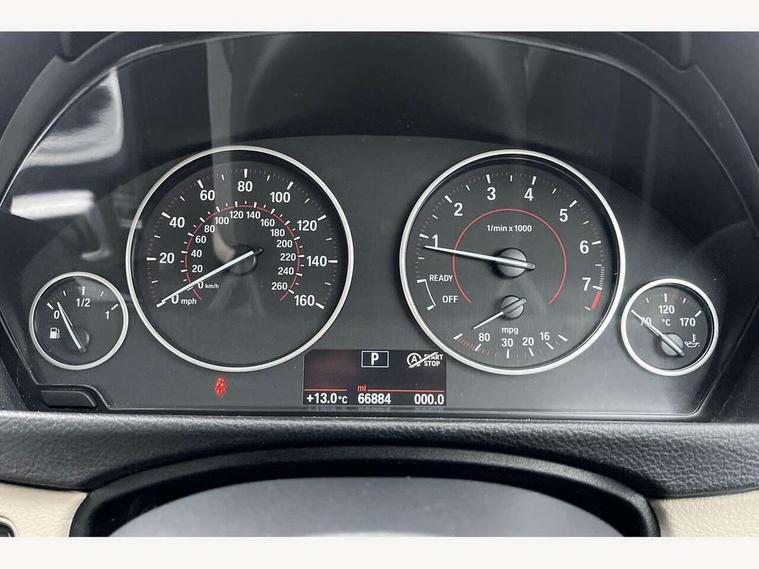Automatic tailgate operation, BMW Online services, BMW Teleservices, Brake pad wear indicator warning light, Check control system, Digital clock, Door/boot open warning light, Lights on warning, Navigation system Business advanced, Oil temperature gauge, On board computer, Outside temperature display, Push button starter, Service interval indicator, Traffic message channel (TMC), Drive Performance Control, Electronic differential lock, Sports function on gearbox with steering wheel mounted gearshift paddles, Auxiliary point for auxiliary devices, BMW professional radio/CD/MP3, DAB Digital radio, 'Guide me home' headlamps, 2 speed adjustable intermittent wipers with wash/wipe function, Active rear spoiler, Auto dimming rear view mirror, Body colour bumpers, Body colour door handles, Body colour door mirrors, Body colour roof mouldings, Daytime running lights, Electric adjustable door mirrors, Electric front and rear windows with one touch/convenient open/close function, Front ornamental grille with black kidney bars and chrome bezel, Heated door mirrors, Heated rear window with automatic switch off, Heated windscreen washer jets, High gloss black door sill finishers, High gloss shadow line, LED front fog lights, LED rear lights, M aerodynamic body styling, Rain sensor + automatic driving lights control, Rear wash/wipe, Shark fin roof aerial, 12V socket in luggage compartment, 12V sockets in front centre console and passenger footwell, 2 bag hooks in luggage compartment, 2 x folding cupholders in instrument panel above glovebox, 4 foldable grab handles - rear with clothes hook, 4 lashing points to secure luggage, 40:20:40 split folding rear bench seat, Automatic interior light soft on/soft off system, Dakota leather upholstery, Driver and passenger sunvisors with vanity mirrors + slide cover, Dual zone automatic air conditioning, Foldable boot floor with storage compartment, Folding rear seat head rests, Front and rear door armrests, Front and rear velour floor mats, Front door storage bins with bottle holder, Front sports seats with electric side bolster adjustment, Height adjustable front headrests, Indirect front interior illumination - soft-light function, Individual anthracite headlining, Isofix system on outer rear seats, Leather gear knob, Leather gear selector lever handle, Leather handbrake grip, Lockable glovebox, Luggage compartment lighting, M sports leather steering wheel, Multi-function controls for steering wheel, Reach + rake adjustable steering column, Rear centre armrest with 2 cupholders, Rear door pockets with bottle holders, Rear storage compartment in multifunction centre console with sliding cover, Reclining rear seats, Storage compartment in rear doors, Through load system, Toolkit located in luggage compartment, Extended lighting package - 3 Series, 3 point inertia reel seatbelts + pre-tensioners on outer rear seats, ABS, Automatic Stability Control (ASC), BMW emergency call, Cornering brake control (CBC), Crash sensor, Driver and passenger airbags, DSC+, Dynamic brake control, Dynamic Traction Control - DTC, Front and rear head airbags, Front passenger airbag deactivation, Front seat side impact airbags, Front seatbelt pretensioners + load limiters, Hill start assist, Rear child proof door locks, Seatbelt warning, Three 3 point rear seatbelts, Twin horns, Tyre pressure monitor, Warning triangle and first aid kit, Automatic drive away locking facility, Central locking fuel filler cap, Electronic immobiliser, Key integrated remote control central locking, Remote control alarm, Low rolling resistance tyres, Run-flat tyres,