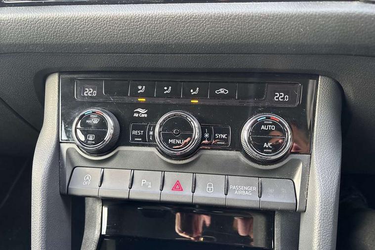 Amundsen satellite navigation with 8" touchscreen, integrated Wi-Fi, web radio, Bluetooth system, Colour multifunction trip computer, Digital voice enhancement, E-call, ECO Stop/start function, Exterior temperature indicator, Power assist steering, Rear view camera, Smartlink wireless for apple carplay and wired for android auto, Speed limiter, Tailgate unlocking from outside, USB C Port x 2 in front centre console, 8 Speakers, DAB Digital radio, Aero front windscreen wipers with intermittent function, Aero rear window wiper, Auto dimming rear view mirror, Black wheel arch surrounds, Body colour bumpers, Body colour door mirrors and handles, Electric front and rear windows, Extended rear spoiler with finlets in gloss black, Front fog lights, Headlight washers, Heated rear window, Invisible tailpipe, LED rear fog light, LED third brake light in rear spoiler, Light assistant (coming/leaving home/tunnel light), Off-road style lower front bumper element, Privacy glass, Radiator grille frame in matt black with chrome strip, Rain and light sensors, Rear LED lights (high functionality) with welcome effect and dynamic indicators, Rear side wing doors, Safety reflectors on front and rear doors, Window control switches with black trim, 12V socket in boot, 2 rails with 2 hooks, 3 seat bench in 2nd row, 4 foldable roof handles with rear coat hooks, 60:40 foldable rear seat with sliding adjustment and backrest angle adjustment, Bottle holders in door panel in the 1.5 litre front and 1 litre rear, Chrome interior door handles, Cloth upholstery, Coat hooks on B pillar, Covered storage compartment on driver side, Dual zone automatic air conditioning with humidity sensor and control, Front centre armrest with storage compartment, cup holder and 12V socket, Gear shift lever with chrome frame and black gloss insert, Grey headlining, Grey stitching in front and rear armrests and door armrests + door inserts, Height adjustable front headrests, Height adjustable front seats, Illuminated and cooled glovebox, Illuminated glovebox, Illuminated luggage compartment, Isofix child seat fittings in outer rear seats with top tether, Manually adjustable steering column, Net programme in boot (1x horizontal Net, 2x vertical Nets), Overhead glasses storage compartment, Pollen filter, Rear centre armrest with cupholders, Single front passenger seat, Sliding trunk cover, Small Bags on the inner sides of the front backrests, Sunvisors with illuminated vanity mirrors, Three rear height adjustable headrests, Ticket holder on A Pillar, Umbrella in door panel, Auto door release and activation of warning lights in the event of an accident, Child locks on rear doors, Driver and front passenger airbag with knee airbag and front passenger airbag deactivation, Electronic parking brake with hill start assist, Emergency rear braking signal, ESC (incl. ABS+MSR+ASR+EDS+HBA+DSR+RBS+MKB), Front assist with autonomous emergency braking, Front side airbags with curtain airbags, Fuel cut off safety device, Height adjustable front 3 point seatbelts + pretensioners, Hill hold control, Rear disc brakes, Safety vest holder in door, Seat belt reminder for all seats, Three point rear seat belts, Two tone horn, Tyre pressure monitor, Alarm with interior monitoring and tilt sensor with safe function, Anti-theft wheel bolts, Immobiliser, Keyless entry and start system (KESSY), Remote central locking with 2 keys, Grey stitching in dashboard,