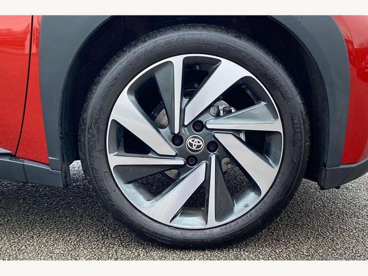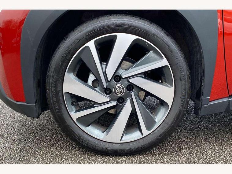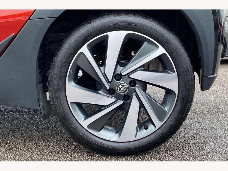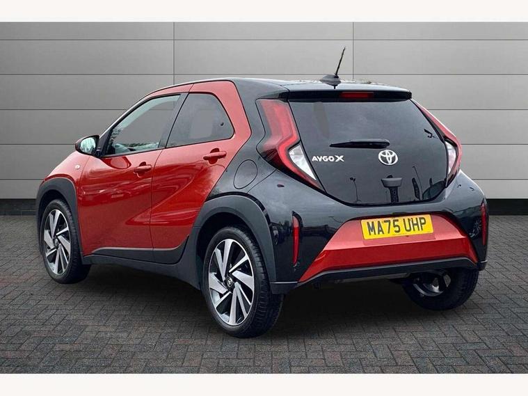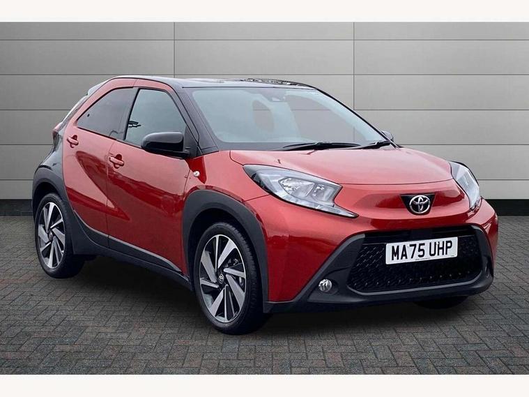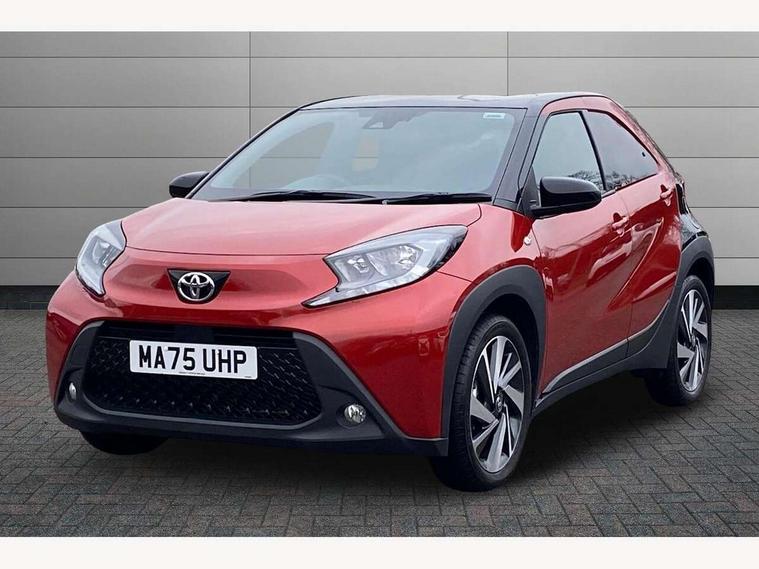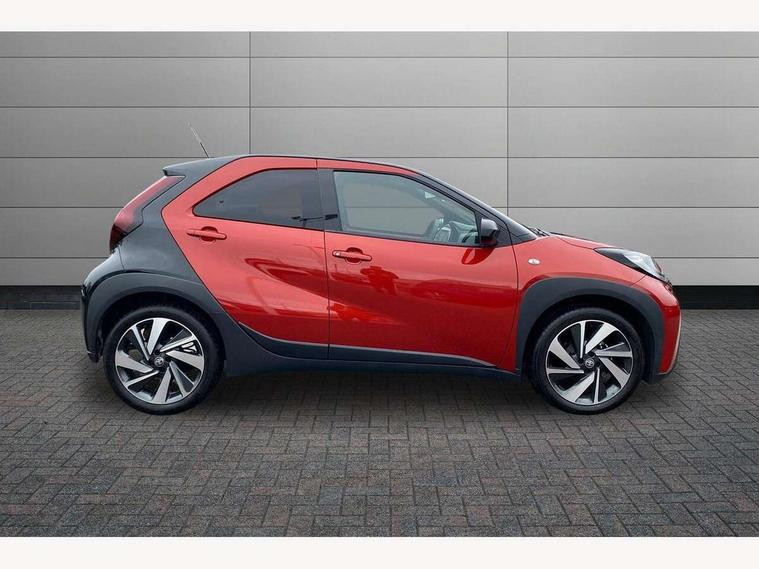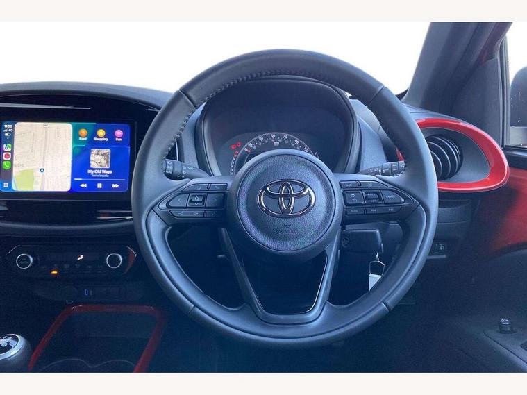 4.2" TFT colour screen, Adjustable speed limiter, Analogue speedometer, Bluetooth connectivity, Digital tachograph, Driver attention alert system, eCall emergency call system, Electric power steering, Intersection turn assist, Key reminder warning, Noise reduction kit, Pre collision system with emergency steering assist, Reversing camera with static guide lines, Smart phone integration with Apple car play/Android Auto, Speed limit display, Start and stop, Vehicle Stability Control (VSC), 4 speakers, 9" HD multimedia display touch screen with Toyota smart connect, DAB digital audio broadcast, USB connector, Auto headlights, Auto wipers, Automatic headlights cut-off, Bicycle towing hook, Black contrast roof, Black side protection mouldings, Black wheel arch mouldings, Body colour door handles, Body coloured front bumper, Boot door scuff plate, Eclipse black rear bumper, Electric heated door mirrors, Follow me home headlights, Front fog lights, Front power windows, Gloss black door mirrors, Gloss black upper front grille, Headlight cut-off reminder, LED daytime running lights, LED front light guide, LED High mounted stop lamp, Manual day/night rear view mirror, Manual headlight levelling, Pagoda roof, Power adjustable door mirrors, Power back door, Privacy glass, Projector halogen headlights, Rain sensor, Rear combination lights LED bulb type, Rear side wing doors, Rear windscreen defogger, Rear windscreen wiper, Short antenna, Variable intermittent windscreen wipers, 12v power outlet - front, 2 seat bench in 2nd row, 3 spoke leather steering wheel, 50/50 split folding rear seat, Adhesive roof headlining, Adjustable speed limiter switch on steering wheel, Audio and telephone switches on steering wheel, Auto air conditioning, Black insert on steering wheel, Black roof lining, Boot light, Centre room light, Chrome interior door handles, Chrome surround on air conditioning buttons, Clean air filter, Console box storage in body color, Fabric upholstery, Floor mats, Front and rear cup holders, Front head rest deco art, Front head restraints, Height adjustable driver seat, Intelligent adaptive cruise control switch on steering wheel, ISOFIX child restraint system on rear seats, Lane departure alert switch on steering wheel, Leather gearshift knob, Manual tilt steering wheel, Manually reclining and sliding driver seat, Manually reclining and sliding front passenger seat, Multimedia switches on steering wheel, Pollen filter, Rear door pockets, Rear head restraints, Satin silver insert on gear shift knob, Single compartment glovebox with lights, Single front passenger seat, Soft tonneau cover, Sun visors with mirror on driver and passenger side, Voice recognition switch on steering wheel, Toyota safety sense pack - Aygo X, Anti lock braking system + Electronic brake force distribution, Child safety door lock, Emergency brake light signal (EBS), Hill start assist control (HAC), Passenger airbag on/off switch, Seat belt reminder for front and rear seats, Supplement restraints system (SRS) - 6 airbags, Traction control, Tyre pressure warning system, Immobiliser, Remote power door locks, Black wheel centre caps, Tyre repair kit,