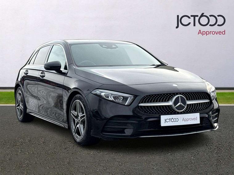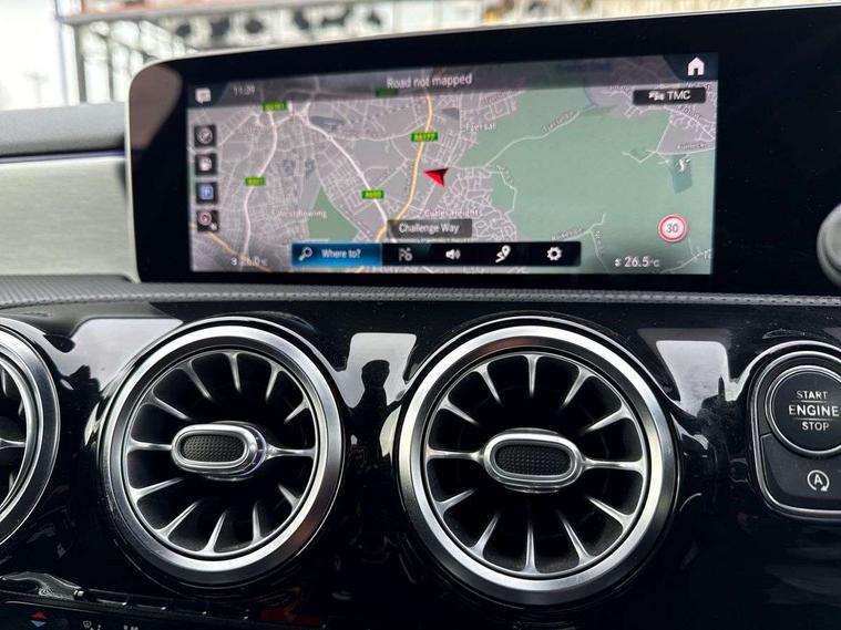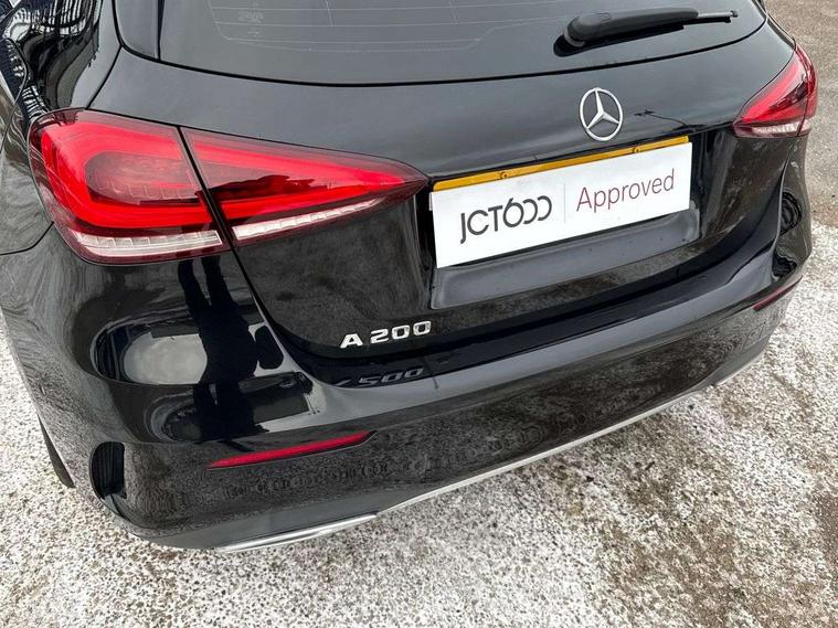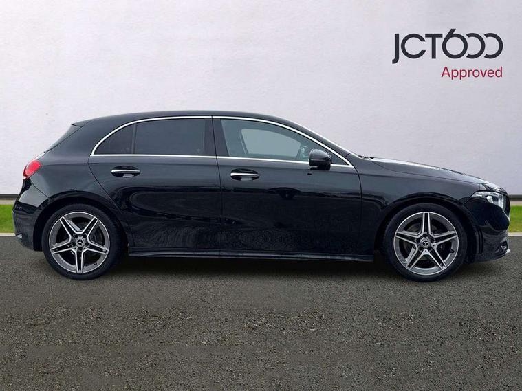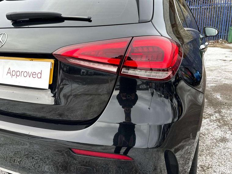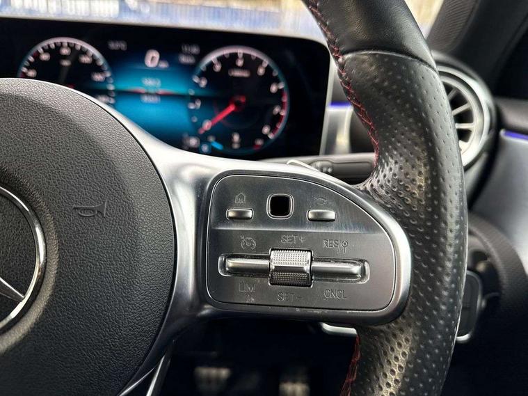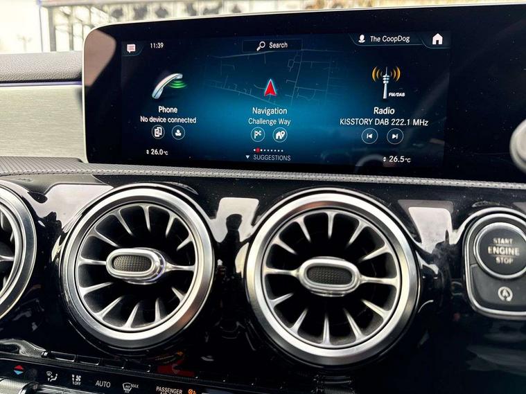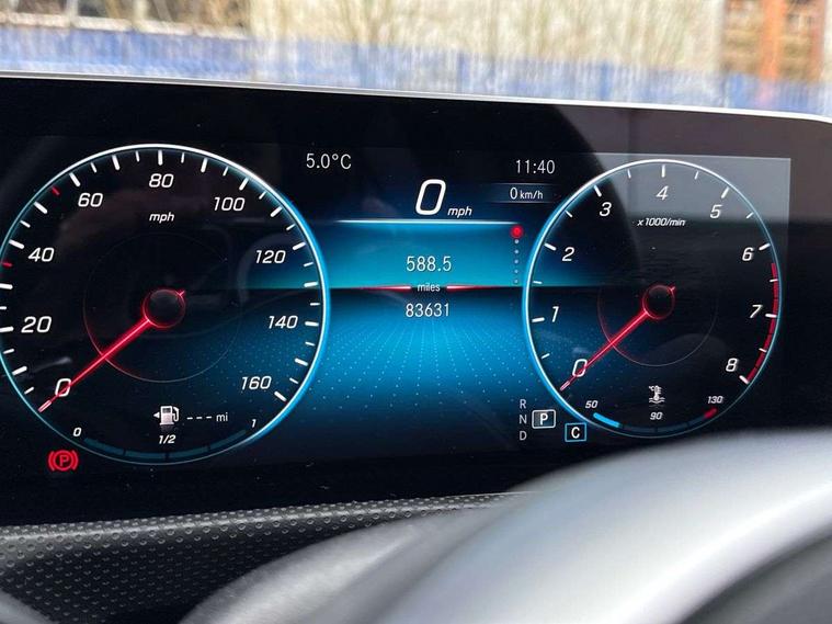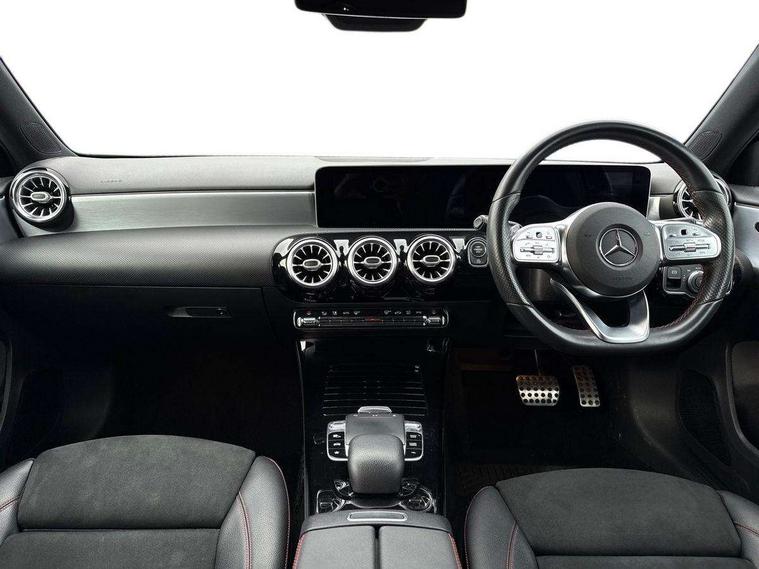 10.25" Digital instrument cluster display screen, 10.25" media display, Active lane keep assist, Active park assist with parktronic system, Attention assist, Bulb failure indicator, Cruise control + speed limiter, Direct steering, DYNAMIC SELECT with a choice of driving modes (ECO, Comfort, Sport, Sport+ and Individual), External temperature gauge, Low fluid warning light, Mercedes connect me with remote online services, Radio aerial integrated into roof spoiler, Reversing camera, Service indicator (ASSYST PLUS), Speed sensitive power steering, Stop/start system, Trip computer, Voice control system, Warning lamp for direction indicators, Lowered comfort suspension, 2 USB ports in centre console, DAB Digital radio, MBUX Multimedia system including digital instrument cluster and phone mirroring, Mid-range sound system, Adaptive brake lights, AMG body styling, Auto dimming driver's door mirror, Auto dimming rear view mirror, Body colour bumpers, Body colour door handles, Body colour side skirt, Body coloured door mirrors, Chrome beltline trim, Diamond radiator grille with chrome pins and silver louvre + chrome insert, Electric adjustable heated door mirrors, Electric folding door mirrors, Electric front windows, Electric rear windows, Headlamp assist, Heated rear window with timer, High beam assist, High level third brake light, LED daytime running lights, LED Headlights, LED rear lights, Rain sensor windscreen wipers, Rear fog lights, Rear wiper, Twin Trapezoidal tailpipes, 1/3 to 2/3 split folding rear seats, 12V socket, 3 spoke flat bottomed nappa leather sport steering wheel, AMG floor mats with red stitching, Artico man-made leather/Dinamica upholstery, Auto Mercedes-Benz child seat recognition sensor, Black headlining, Brushed stainless steel sports pedals with rubber studs, Controller on centre console with chrome surround, Dual zone automatic climate control, Exit lights, Footwell lights, Front and rear reading lights, Front centre armrest with storage compartment, Front door sills with Mercedes benz lettering, Front head restraints, Front seat backs luggage nets, Front sport seats, Gearshift paddles on steering wheel, Heated front seats, Height adjustable front seats, Height/reach adjustable steering column, Illuminated cup holders, Illuminated door sills, Illuminated glovebox, Illuminated storage compartment, Integrated head restraints, Interior door handle illumination, Interior lighting - 64 colour Ambient lighting, Isofix rear child seat preparation, Load securing rings in luggage compartment, Luggage compartment cover, Multifunction steering wheel, Oddments tray lighting, Reading lights, Rear armrest, Rear head restraints, Storage compartment under load area floor, Sunvisors with illuminated vanity mirrors, Touchpad, Twin front cupholders, Seat comfort pack - A Class, 3 rear 3 point seatbelts, ABS with Brake Assist, Active bonnet, Brake calipers with Mercedes-Benz lettering + perforated brake discs, Child proof door locks, Crash responsive emergency lighting, Drivers knee airbag, Dual stage driver/passenger airbags, Electronic parking brake, ESP with ASR, Front and rear seatbelt reminder, Front head airbags, Front passenger seat occupancy sensor, Front side airbags, Hill start assist, Tyre pressure monitoring system, Warning triangle and first aid kit, Window airbags, Alarm system/interior protection/immobiliser, Keyless Go access/ignition system, Remote central locking, Chrome air vent surrounds, 18" AMG 5 twin spoke light alloy wheels in titanium grey with highsheen finish, Tirefit sealant with electric air pump,