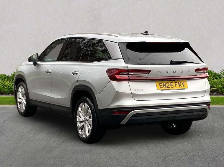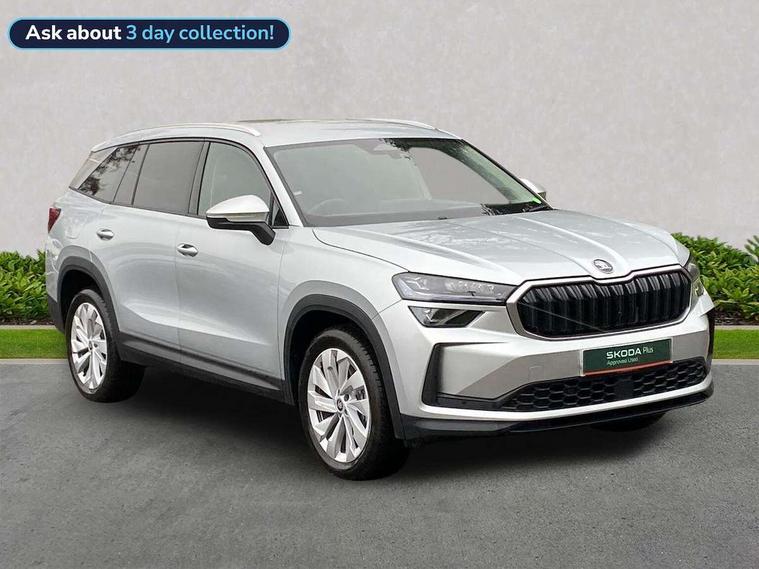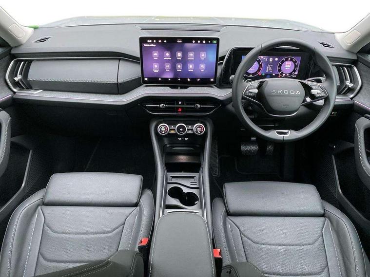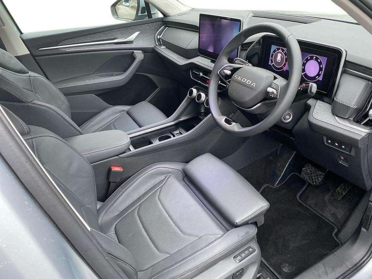 13" satellite navigation touchscreen display, Blind spot detection with door exit warning, Bluetooth system, ChatGPT functionality, Driver alert - Fatigue and drowsiness monitor, Dry display cleaner, Emergency call, Front and rear parking sensors, Front cross traffic assist, Lane assist, PAS, Rear traffic assist, Tailgate unlocking from outside, Traffic sign recognition, USB C Port x 2 in front centre console, Virtual Cockpit - 10.25" digital display, Voice control system, Wireless charging for two smartphones (15W) with cooling function, Wireless SmartLink for Apple CarPlay and Android Auto, Stop/start function, 2x USB-C in the rear, DAB Digital radio, Aero front windscreen wipers with intermittent function, Auto dimming rear view mirror, AWL (all weather lighting) and all weather light with cornering function, Black wheel arch surrounds, Body colour bumpers, Body colour door mirrors and handles, Cornering light and poor weather light, Electric folding /adjustable/separted heated/folding door mirrors, auto dimming with boarding sports and memory function, Electric front and rear windows, Exterior black decorative trims, Heat insulating glass in windshield, Heated rear window, Ice scraper in fuel tank cap, Invisible tailpipe, LED daytime running lights, LED third brake light in rear spoiler, Light assistant with automatic headlight control and coming home feature, Logo projection in door mirrors, Privacy glass, Rear roof spoiler, Rear side wing doors, Rear window wiper, Red decorative strip between rear LED lights, Safety reflectors on front and rear doors, Unique dark chrome design logo on alloy wheels, Window control switches with black trim, Windscreen wipers with rain sensor, Without engine designation, 1.5l bottle holder points in all door, 1x centre rear reading light, 2 seat bench in 3rd row, 3 configurable smart dials with 32mm coloured display, 3 seat bench in 2nd row, 4 foldable roof handles with rear coat hooks, Ambient interior lighting - Dashboard, front-door stowage compartments, front and rear door panels and footwell lighting, Automatic gear selector on steering column, Chrome interior door handles, Driver/front passenger reading lights, Fabric headlining, Fixed bench 40:60:40 split folding backrests, Front and rear floor mats, Front centre armrest with jumbo box storage compartment, cup holder and 12V socket, Height adjustable front headrests, Isofix child seat fittings in outer middle row rear seats and front passenger with top tether, Manually adjustable steering column, Pollen filter, Rear centre armrest with cupholders, Rear seat boot backrest release, Single front passenger seat, Skoda lettering on steering wheel, Storage pocket including mobile phone pockets on the backs of the front seats, Sunvisors with illuminated vanity mirrors, Three rear height adjustable headrests, Ticket holder on A Pillar, Tri zone climate control, Umbrella in door panel x1 made from sustainable materials, Upper and lower glovebox with card holder and coin compartment, USB C port by rear view mirror for charging only (15W), Exterior styling pack - Kodiaq, Auto door release and activation of warning lights in the event of an accident, Driver and front passenger airbag with knee airbag and front passenger airbag deactivation, Electric child locks, Electronic parking brake, ESC (incl. ABS+EMD+MSR+ASR+EDL+HBA+DSR+RBS+ESBS+MCB+TSA+XDS), Front assist with braking reaction to vehicles, pedestrians and cyclists, Front disc brakes, Fuel cut off safety device, Height adjustable front 3 point seatbelts + pretensioners, Hill hold assist, Junction assist with automatic emergency braking, Rear disc brakes, Safety vest holder in door, Seat belt reminder for all seats, Three point rear seat belts, Two tone horn, Tyre pressure monitor, Anti-theft wheel bolts, Immobiliser, Remote central locking with 2 keys,