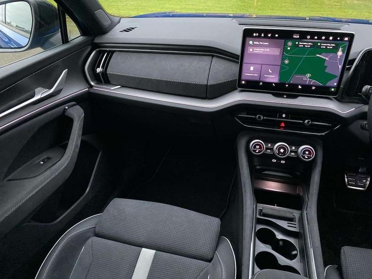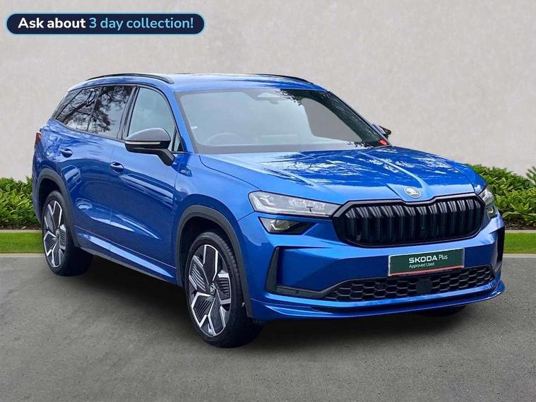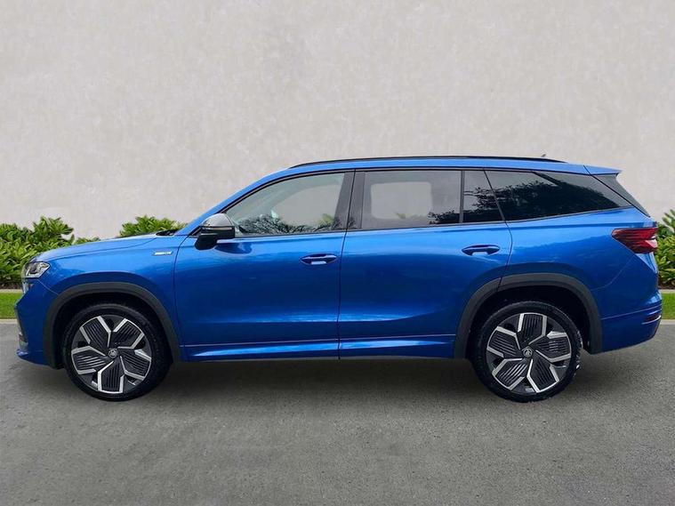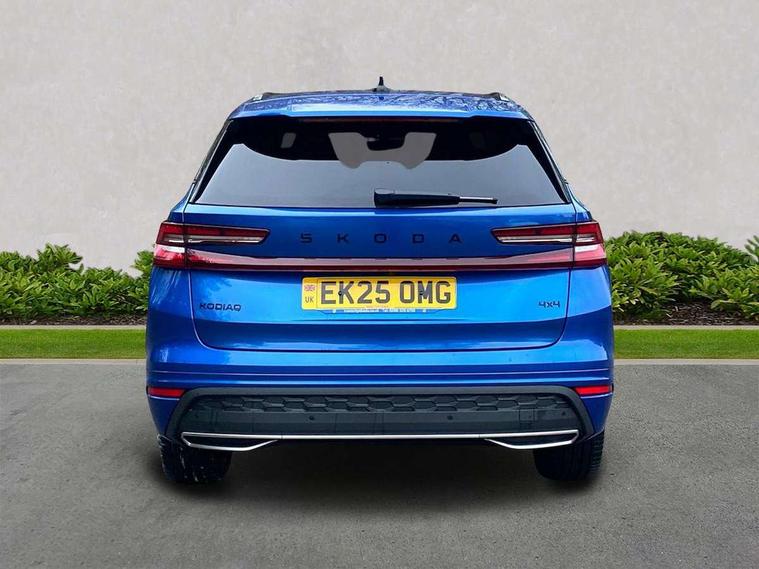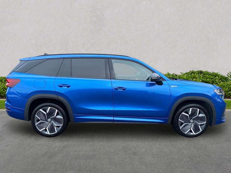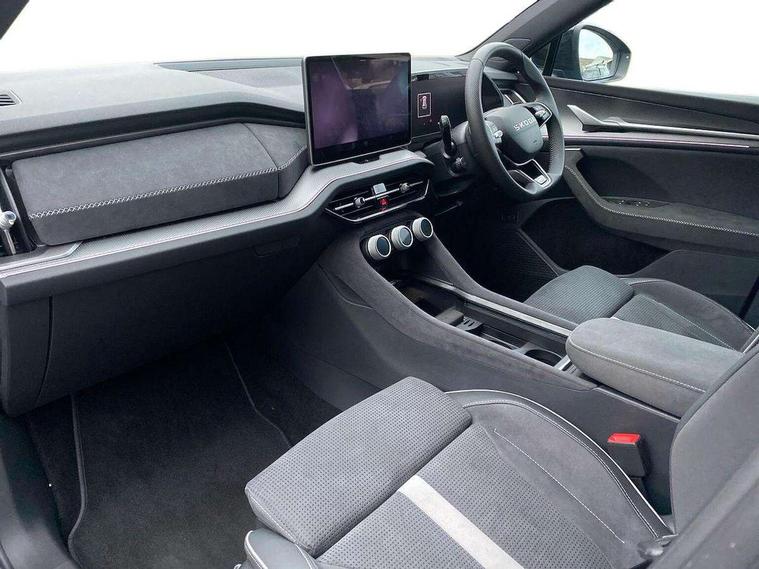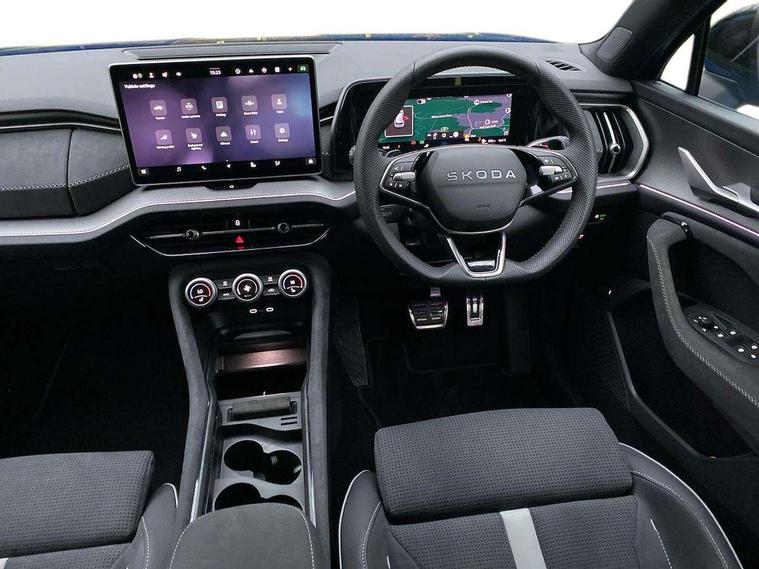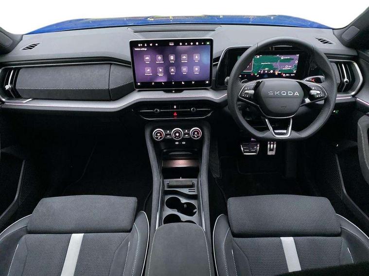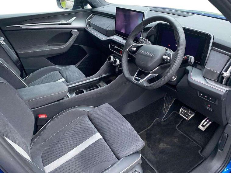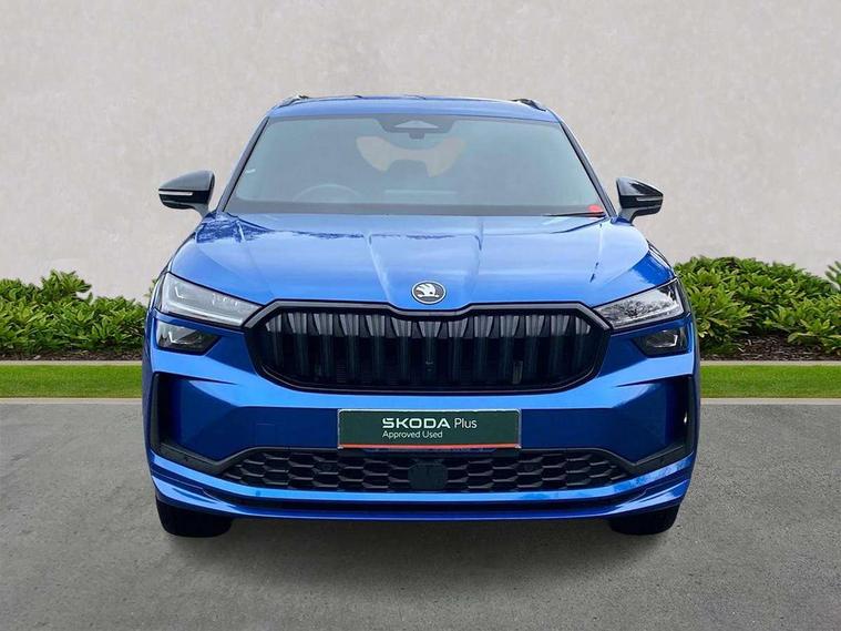 13" satellite navigation touchscreen display, Blind spot detection with door exit warning, Bluetooth system, ChatGPT functionality, Driver alert - Fatigue and drowsiness monitor, Dry display cleaner, Emergency call, Front and rear parking sensors, Front cross traffic assist, Lane assist, Off road modes, PAS, Rear traffic assist, Tailgate unlocking from outside, Traffic sign recognition, USB C Port x 2 in front centre console, Virtual Cockpit - 10.25" digital display, Voice control system, Wireless charging for two smartphones (15W) with cooling function, Wireless SmartLink for Apple CarPlay and Android Auto, Stop/start function, 2x USB-C in the rear, DAB Digital radio, Aero front windscreen wipers with intermittent function, Auto dimming rear view mirror, AWL (all weather lighting) and all weather light with cornering function, Black diffuser and decorative tailpipe with a unique dark chrome finish, Black roof rails, Black sports styling including front grille and window surrounds, Black wheel arch surrounds, Body colour door handles, Cornering light and poor weather light, Electric folding /adjustable/separted heated/folding door mirrors, auto dimming with boarding sports and memory function, Electric front and rear windows, Exterior black decorative trims, Front and rear sports bumpers including lower rear chrome strip, Gloss black door mirrors, Gloss black window frame and D pillar, Heat insulating glass in windshield, Heated rear window, Ice scraper in fuel tank cap, LED daytime running lights, LED third brake light in rear spoiler, Light assistant with automatic headlight control and coming home feature, Logo projection in door mirrors, Privacy glass, Rear roof spoiler, Rear side wing doors, Rear window wiper, Red decorative strip between rear LED lights, Safety reflectors on front and rear doors, Sportline badge on front fenders, Tailgate lettering in Black, Unique dark chrome design logo on alloy wheels, Window control switches with black trim, Windscreen wipers with rain sensor, Without engine designation, 1.5l bottle holder points in all door, 1x centre rear reading light, 2 seat bench in 3rd row, 3 configurable smart dials with 32mm coloured display, 3 seat bench in 2nd row, 4 foldable roof handles with rear coat hooks, Aluminium pedals, Ambient interior lighting - Dashboard, front-door stowage compartments, front and rear door panels and footwell lighting, Automatic gear selector on steering column, Chrome interior door handles, Driver/front passenger reading lights, Fabric headlining, Fixed bench 40:60:40 split folding backrests, Front and rear floor mats, Front centre armrest with jumbo box storage compartment, cup holder and 12V socket, Front sport seats, Height adjustable front headrests, Interior black decorative trims, Isofix child seat fittings in outer middle row rear seats and front passenger with top tether, Manually adjustable steering column, Pollen filter, Rear centre armrest with cupholders, Rear seat boot backrest release, Single front passenger seat, Skoda lettering on steering wheel, Storage pocket including mobile phone pockets on the backs of the front seats, Sunvisors with illuminated vanity mirrors, Three rear height adjustable headrests, Ticket holder on A Pillar, Tri zone climate control, Umbrella in door panel x1 made from sustainable materials, Upper and lower glovebox with card holder and coin compartment, USB C port by rear view mirror for charging only (15W), Acoustic package - Kodiaq, Performance package - Kodiaq, Sportline design selection pack - Kodiaq, Auto door release and activation of warning lights in the event of an accident, Driver and front passenger airbag with knee airbag and front passenger airbag deactivation, Electric child locks, Electronic parking brake, ESC (incl. ABS+EMD+MSR+ASR+EDL+HBA+DSR+RBS+ESBS+MCB+TSA+XDS), Front assist with braking reaction to vehicles, pedestrians and cyclists, Front disc brakes, Fuel cut off safety device, Height adjustable front 3 point seatbelts + pretensioners, Hill hold assist, Junction assist with automatic emergency braking, Rear disc brakes, Safety vest holder in door, Seat belt reminder for all seats, Three point rear seat belts, Two tone horn, Tyre pressure monitor, Alarm with interior monitoring and tilt sensor with safe function, Anti-theft wheel bolts, Immobiliser, Remote central locking with 2 keys, 20" Rila anthacite polished alloy wheel with black matte aero covers,