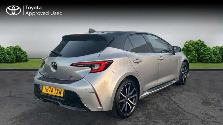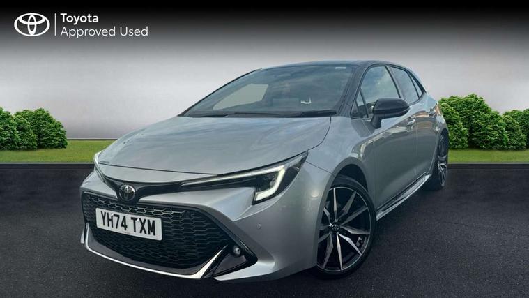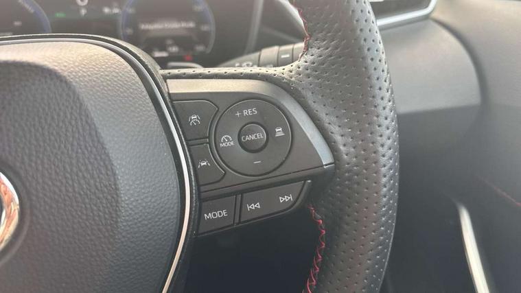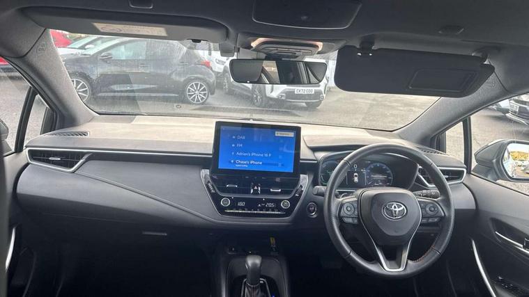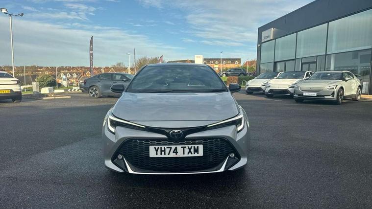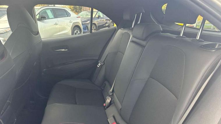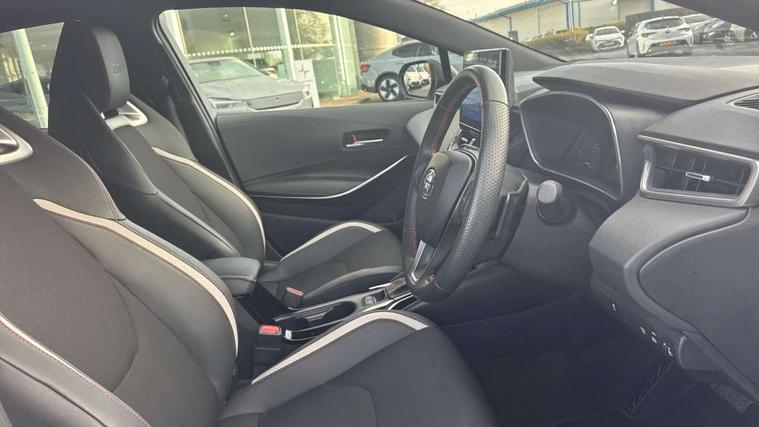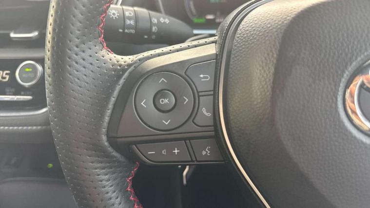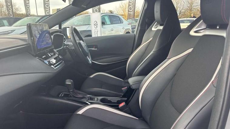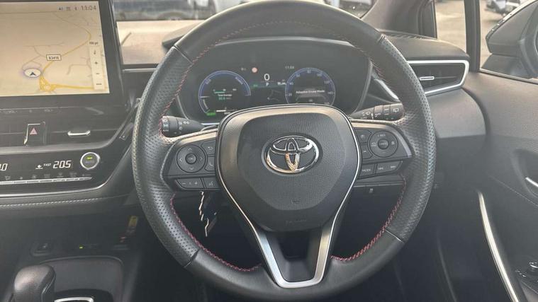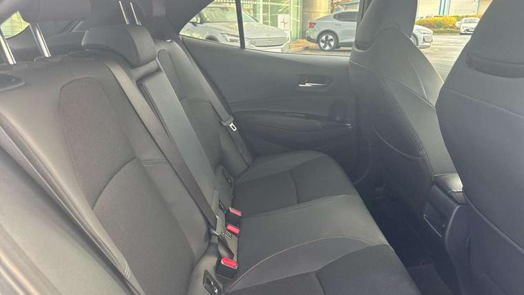 10.5" Multimedia display screen, Bluetooth telephone connectivity, Connected car functionality upgrade, tracker, remote status and e-care, Drive mode select (Eco, Normal), E-call, Electrically assisted power steering, EV drive indicator, Front and rear parking sensors with auto brake, Full Digital 12.3" TFT Digital Combimeter, Key reminder warning, Lane Departure Alert (LDA) switch on steering wheel, Memory on adjustable speed limiter, MyT connected services, Proactive driving assist (PDA), Reversing camera, Smart entry and push button start with GR Logo, Smartphone integration with Apple CarPlay and wired android auto, Tailgate, Toyota remote services, Toyota smart connect navigation, Wireless charger, Gasoline particulate filter, Vehicle Stability Control (VSC), 6 speakers, AM/FM radio, DAB Digital radio, Front USB-C in centre console, Front USB-C in dashboard, Smart voice assist/ Voice recognition, USB and Aux in connectors + 12V front outlet, Anti-jam protection on power windows, Auto up and down function on all power windows, Automatic folding mirrors, Automatic headlights with high beam assist, Black centre and side air vents, Black toyota logo in front, Body coloured bumpers, Body coloured door mirrors, Body coloured outside door handles, Dark chrome lower grille, Electrochromatic mirror, Follow me home headlights, GR Sport dark chrome front mesh grille and black rear grille, GR Sport exclusive under guard, GR sport scuff plates, LED daytime running lights, LED dual beam projector headlights, LED front fog lights, LED High mounted stop light, LED rear combi lights with LED lightguide, Manual headlight levelling system, New grille pattern, Noise reduction layer on windscreen, Piano black diffuser, Power adjustable heated door mirrors, Power front windows, Power rear windows, Privacy glass with UV filter, Rain sensing wipers, Rear side wing doors, Rear window defogger, Rear window wiper, Reverse tilting door mirrors, Rocker and door lower moulding, Roof spoiler, Satin chrome insert on front air vents, Satin chrome insert on front door assist grips, Satin silver front spoiler, Shark fin antenna, Tailgate release with push button, Time adjustment on intermittent wiper, Turning signal integrated indicators in door mirrors, Unique lower skirt, Unique side rocker with black insert, UV-filter on driver and passenger windows, 2 Shopping bag hooks in luggage compartment, 3 rear headrests, 3 seat bench in 2nd row, 3 spoke leather steering wheel with satin insert/red stitching + gear knob, 4 tie down hooks in luggage compartment, 60/40 split folding rear seat, Adaptive cruise control (ACC) switch on steering wheel, Adjustable speed limiter switch on steering wheel, Audio, multimedia and telephone switches on steering wheel, Black armrest on centre console box, Black gear shift console, Boot light, Boot underfloor storage, Centre room light, Driver and front passenger personal light, Driver and passenger assist grip, Driver and passenger seatback pockets, Driver and passenger sun visor with mirror and light, Dual zone automatic air conditioning with ECO mode switch, Fabric/synthetic leather upholstery, Front and rear cup and bottle holders, Front door pockets, Front head restraints, Front passenger seat, Front sliding synthetic leather armrest, GR Sports seats with partial leather bolsters, Heated seats, Illuminated entry system in room lamp, ISOFIX seat fixing (2 fixings on rear outer seats), Manual height adjustable for driver and front passenger seat, Manually tilt with sliding driver and front passenger seat, Nanoe-X air purifier, Paddle shifts, Parcel shelf, Pollen filter, Power window switches with satin chrome inserts, Rear armrest with 2 cupholders, Rear passenger coat hooks (2), Red stitching on gear shift, Remote air conditioning, Satin chrome inside door handles, Satin chrome surround on speedometer, Sliding armrest on centre console box, Slow opening glovebox with lights, Textile floor mats, Tilt/telescopic steering column, Voice recognition switch on steering wheel, Whiplash Injury Lessening (WIL) feature (active headrest) for seats, White ambient lighting on open tray and front cup holder, Toyota safety sense 3 pack - Corolla, 3x3 point rear seatbelts, Adjustable driver and front passenger seat belt extender to top anchor point, Anti lock braking system + Electronic brake force distribution, Brake assist function, Child locks on rear doors, Downhill Assist Control (DAC), Electronic parking brake, Emergency brake light signal (EBS), Front passenger airbag on/off switch, Front seatbelt reminder, HAC-Hill-start Assist Control, Rear seat belt reminder, Seatbelt pretensioners and force limiters, Supplemental restraint system (SRS) 7 airbags - dual driver, dual side curtain, side impact and driver knee airbags, Traction control, Tyre pressure warning system, Acoustic vehicle alert system (AVAS), Alarm with motion sensor and immobilizer, Power passenger window lock, Remote central locking + deadlocks, GR Sport interior styling with accents and exterior styling, Satin chrome dash trim, Soft touch texture on upper dashboard, Stitching on lower dashboard, 18" Black machined face 10 spoke alloy wheels, Tyre repair kit, Unique wheel finish with red wheel cap,