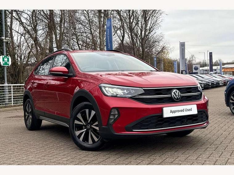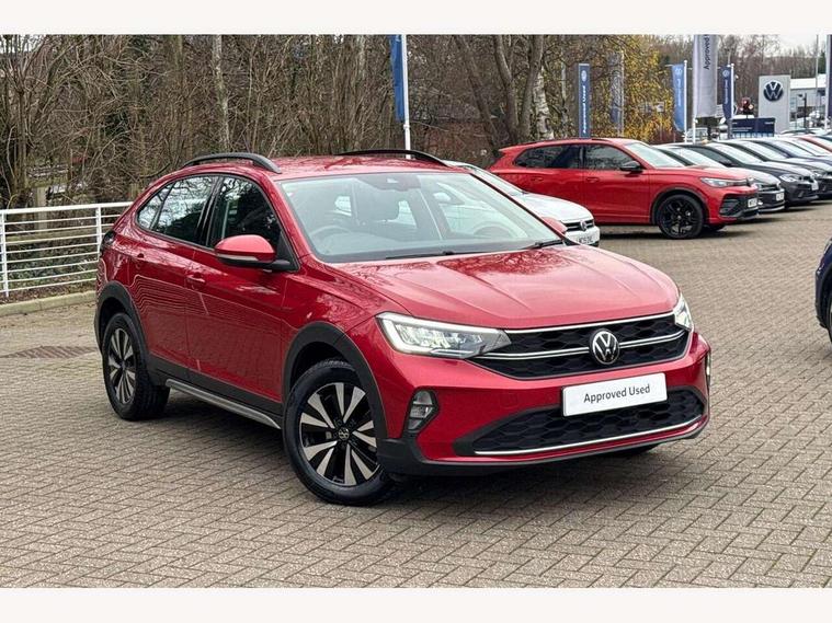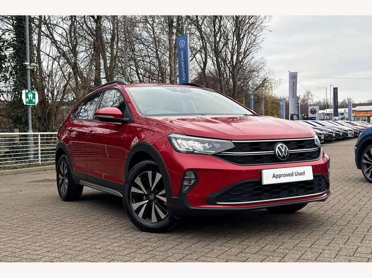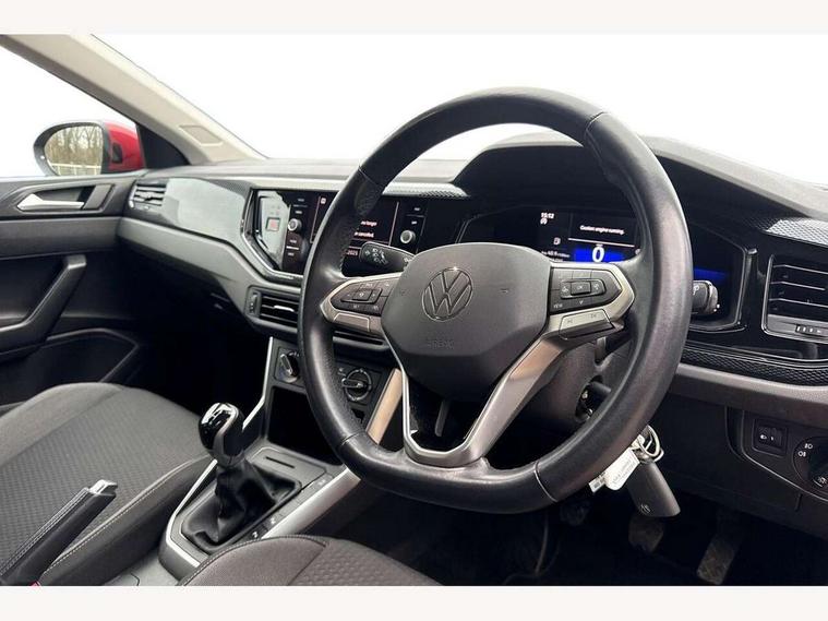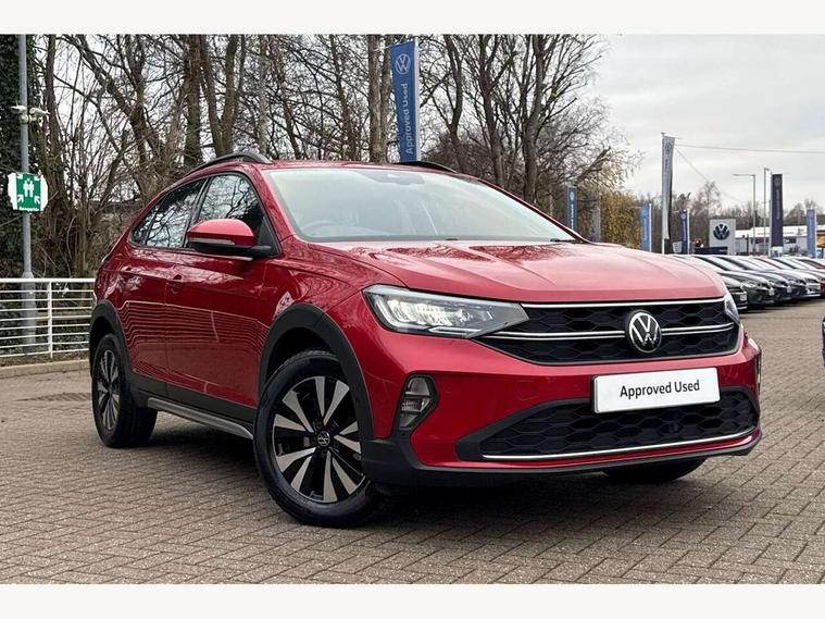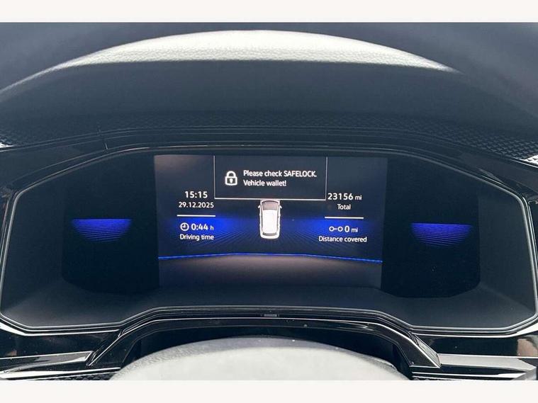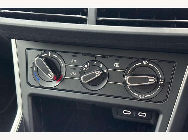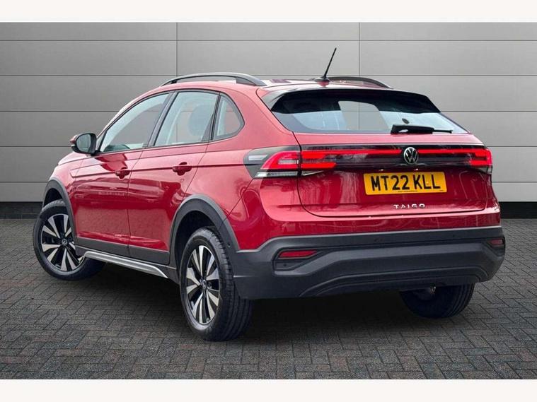 App-Connect including App-Connect Wireless, Driver alert system, e-Call (emergency call), Power Steering, Travel assist including emergency assist, Washer fluid level indicator, Wireless Charging including Bluetooth, Start-stop system with battery regeneration (recuperation - energy recovery during braking), Digital radio reception (DAB+), Diversity antenna for FM reception, WeConnect plus, Ambient lighting with logo projection, Aspherical driver's exterior mirror, Auto headlights, Body coloured bumpers, Body coloured exterior mirror housings and door handles, Electric windows, External USB type C socket and charging sockets, Front fog lamps with cornering function, Headlight range control, Heat insulating glass windscreen, LED headlamps, LED rear combination lamp, LED third brake light, Left convex exterior mirror, Power folding adjustable/heated exterior mirrors and front passenger exterior mirror lowering function, Rear fog light on one side, reversing light on both sides, Rear side wing doors, Rear wash/wipe with intermittent wipe setting, 'Slash/ Austin' Cloth upholstery, 12V socket in centre console, 2 front reading lights, 3 rear head restraints, 3 seat bench in 2nd row, Black carpets, Child seat anchor for child seat system i-Size, 2x top tether and child seat anchor in front on front passenger side, Door and side trim panels in titan black, Driver and front passenger seat height adjustment, Front centre armrest, Handbrake lever handle in leather, Height and reach adjustable steering wheel, Leather trimmed gear knob, Leather wrapped multifunction steering wheel, Luggage compartment floor, Luggage compartment light, Lumbar support for driver's and front passengers seat, Seat covers in titanium black, Single front passenger seat, Split folding backrest with centre armrest and unsplit rear seat bench, Storage compartment under front seats, Sun visors with illuminated vanity mirrors, Chrome Package - Taigo, Drivers assistance pack - Taigo, Light and Sight pack including High beam assist - Taigo, 2 x 3-point seatbelts/outer rear seats with ECE label, 3-point seat belts in front with pretensioner and height adjustment, 3-point seatbelt for centre rear seat, Driver and front passenger airbags with front passenger airbag de-activation, front side and curtain airbags, Driver and front passenger safety-optimised head restraints, Electronic stability control, Extended and predictive pedestrian/ cyclist protection, Front and rear disc brakes, Front curtain and side airbags with center airbag, Hill start assist, Manual rear child locks, Single tone horn, Tyre pressure loss indicator, Anti-theft alarm system with interior monitoring, backup horn, and towing protection, Anti-theft wheel bolts, Lava stone black gloss/matt decorative inserts in dash and front door panels, Low rolling resistance tyres,