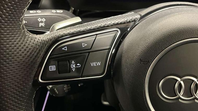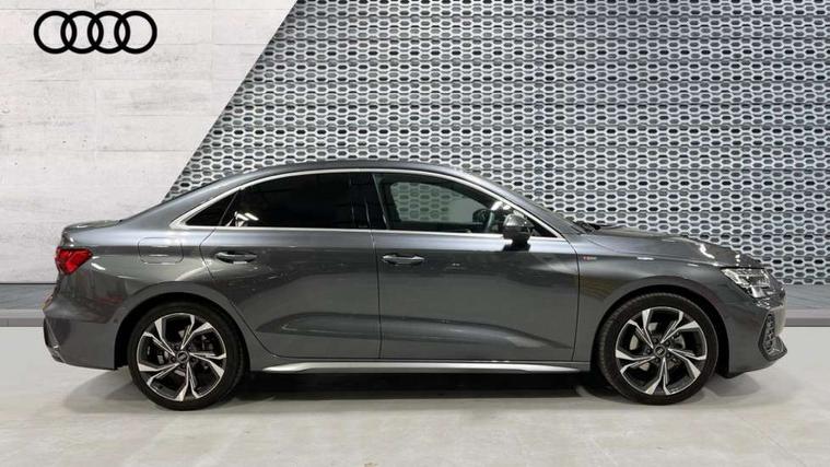 Adjustable speed limiter, Audi drive select, Audi smartphone interface with app store includes wireless Apple carplay, Android auto and Amazon alexa integration, Audi virtual cockpit plus - 12.3" full HD resolution dynamic digital instrument cluster, Automatic start/stop system with recuperation, Bluetooth interface, Camera based traffic sign recognition, Collision avoidance assistant, Cruise control, Distraction and Fatigue warning, e-Call (emergency call), Electromechanical power speed sensitive steering, Lane departure warning system, MMI Navigation Plus with high resolution 10.1" colour touch screen display, Park Assist with parking system Plus, Service indicator, Trip computer, Voice control system with natural language interaction, Sports suspension, Audi Phonebox light with wireless charging, Audi sound system - 10 loudspeakers including centre loudspeaker and subwoofer, DAB Digital radio, USB ports with charging function in the rear, Acoustic glass windscreen, Aluminium window trim, Auto dimming frameless rear view mirror, Body colour exterior mirrors, Chrome exhaust tailpipes, Electrically adjustable/heated/folding/auto dimming door mirrors with integrated LED indications + kerb view function for passenger side, Exterior model badging, Front and rear side air inlets in grained matt black with dark liquid chrome frame, Front electric windows, Front radiator grill in high gloss dark chrome, Heat insulating glass windscreen, Illuminated door sills with aluminium inserts at the front with S logo, LED 3rd brake light, LED daytime running lights, LED headlights with LED rear lights and dynamic rear indicators, Light and rain sensors, Privacy glass - dark tinted rear window, rear door and side windows, Rear boot, Rear diffuser and grill in grained matt black with inlay in dark liquid chrome, Rear electric windows, Rear side wing doors, S line bumpers, Side S line emblems on front wings, Side sill trim in dark liquid chrome, 12V socket and storage compartment in front centre console, 3 seat bench in 2nd row, 3 spoke flat bottomed leather multifunction sport steering wheel with gear shift paddles, 3-zone deluxe automatic air conditioning, 4 way electrically adjustable lumbar support for driver and front passenger, 40/20/40 split folding rear seat bench, Black cloth headlining, Front and rear centre armrest in artificial leather, Front and rear centre armrest in artificial leather with contrasting stitching on armrests and instrument panel, Front and rear headrests, Front/rear floor mats, Heated front seats, Height and reach adjustable steering wheel, Manual boot compartment lid, Manually adjustable front seats, Rear cup holders, S badging on the steering wheel, Seat side bolsters, Single front passenger seat, Stainless steel pedals and front footrest in black, Twin leather upholstery with front sports seats S embossed logo, Aluminium interior elements pack - A3, Multi-coloured LED interior lighting package - A3, 3x3 point rear seat belts, Driver and front passenger airbag with passenger airbag deactivation, Electronic Stabilisation Control (ESC) including ABS, ASR and EDL, First aid kit with warning triangle and 2 safety vests, Front side airbags with head airbags and interaction airbag, Hill hold assist, Pre-sense front with pedestrian and cyclist detection, Seatbelt monitoring, Tyre pressure loss indicator, Anti theft alarm, Anti-theft wheel bolts, Electronically operated child locks, Immobiliser, Remote central locking with safelock, Dash & door Inlay in dark aluminium Spectrum,