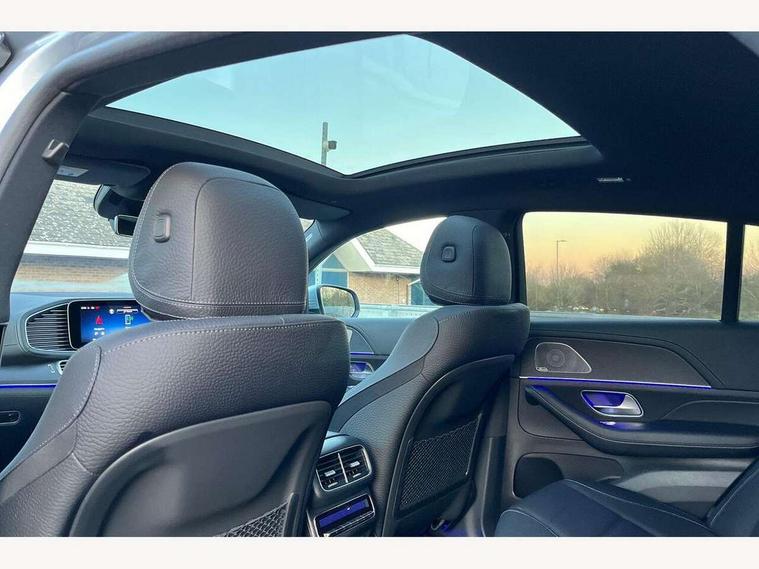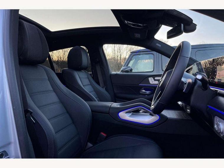 12.3 High resolution wide screen cockpit display with choice of three display styles Classic, Progressive or Sport and unique ambient lighting setting, 360 degree camera, Active parking assist with PARKTRONIC, Attention assist, Brake wear warning display, Direct steer speed sensitive steering, DYNAMIC SELECT with a choice of driving modes (ECO, Comfort, Sport and Individual), Easy-pack tailgate - Powered opening/closing automatically, ECO start/stop function, Hard-disk navigation, Head up Display, MBUX voice control activated by keywords "Hey Mercedes", Mercedes Benz emergency call system, Mercedes me connect - vehicle set up and monitoring, Outside temperature display, Pre-installation for digital key transfer, Service indicator (ASSYST), Status display for rear seat belts in instrument cluster, Traffic sign assist, Trip computer in multifunction display showing current fuel consumption, Wireless charging, Wireless smartphone integration including Apple CarPlay and Android auto, 85 litre fuel tank, 9G TRONIC 9 speed automatic transmission, Airmatic air suspension with adaptive damping system, Diesel particulate filter (DPF), Mild Hybrid starter alternator, Additional USB connection, Bluetooth interface for hands free and audio streaming, Burmester surround sound system, DAB digital radio tuner, Front and rear USB ports, Sound personalisation, Adaptive brake lights, Aluminium look, illuminated running boards with rubber studs, AMG bodystyling front and rear aprons, Auto headlights, Automatically dimming rear view mirror, Body colour door mirrors, Body coloured bumpers, Electric windows with one touch opening/closing and obstruction sensors, Electrically adjustable, heated, folding exterior mirrors, Exterior styling - front bumper, radiator grille and front air intakes, Heat insulating dark tinted glass, Heated windscreen washers, LED 3rd brake light, LED daytime running light signet, LED rear lights, Magic vision control, Multibeam LED headlights with adaptive highbeam assist plus, Panoramic sliding sunroof, Radio aerial integrated into rear window, Rain sensing windscreen wipers, Rear side wing doors, Rear wiper, Roof rail system, Top surround of side windows in polished aluminium, Transparent Bonnet, Visible twin pipe exhaust system integrated into bumper, Waistline in polished aluminium, 3 spoke round bottomed multifunction steering wheel in nappa leather, 4 way adjustable front head restraints and 2 way rear head restraints, 4 way lumbar support for driver and front passenger, 40:20:40 split folding rear seats, Automatic child seat recognition sensor, Black fabric roof liner, Climatised front seats, Double sunvisor, Electric height/reach adjustable steering column, Electrically adjustable front seats with memory function, Front centre armrest with stowage compartment and illuminated grab handles, Gearshift paddles on steering wheel, Glove compartment - lockable, air conditioned and illuminated, Heated rear seats, Heated steering wheel, Illuminated door sill with Mercedes Benz lettering, Interior lighting - 64 colour Ambient lighting, Leather upholstery, Luggage compartment cover, Luxury AVANTGARDE Interior, Seat occupancy sensor for front passenger seat, Second row three seats, Single front passenger seat, Sunvisors with illuminated vanity mirrors, Temperature controlled cupholder, Thermotronic automatic 4 zone climate control, Touchpad, Velour floor mats, Air balance package - GLE, Energizing package - GLE, Exclusive Trim package - GLE, Keyless go comfort package - GLE, Active bonnet, Airbags - driver and front passenger, front sidebag, pelvis bag and window airbags, Anti-lock braking system (ABS), Black seat belts, Childproof locks manually operated for rear doors and electrically operated for rear power windows, Drivers knee airbag, Electronic parking brake, Electronic Stability Programme (ESP), ISOFIX child seat points with automatic child seat recognition, Perforated front brake discs and brake calipers with Mercedes-Benz lettering, Pre safe impulse side, Three point rear seat belts, Tyre pressure monitoring system, Warning triangle and first aid kit, Alarm system/interior protection/immobiliser, Central locking with interior switch, automatic locking and crash sensor with emergency opening function, Chrome surround electric key, Guard 360 degree vehicle protection plus, Dashboard and door beltlines in ARTICO man made leather, Trim - Centre console, anthracite open pore oak wood trim, TIREFIT with tyre inflation compressor,