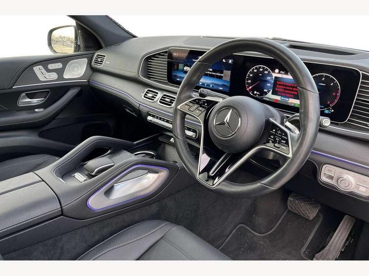 12.3 High resolution wide screen cockpit display with choice of three display styles Classic, Progressive or Sport and unique ambient lighting setting, 360 degree camera, Active parking assist with PARKTRONIC, Attention assist, Brake wear warning display, Direct steer speed sensitive steering, DYNAMIC SELECT with a choice of driving modes (ECO, Comfort, Sport and Individual), Easy-pack tailgate - Powered opening/closing automatically, ECO start/stop function, Hard-disk navigation, Head up Display, MBUX voice control activated by keywords "Hey Mercedes", Mercedes Benz emergency call system, Mercedes me connect - vehicle set up and monitoring, Outside temperature display, Pre-installation for digital key transfer, Service indicator (ASSYST), Status display for rear seat belts in instrument cluster, Traffic sign assist, Trip computer in multifunction display showing current fuel consumption, Wireless charging, Wireless smartphone integration including Apple CarPlay and Android auto, 85 litre fuel tank, 9G TRONIC 9 speed automatic transmission, Airmatic air suspension with adaptive damping system, Diesel particulate filter (DPF), Mild Hybrid starter alternator, Additional USB connection, Bluetooth interface for hands free and audio streaming, Burmester surround sound system, DAB digital radio tuner, Front and rear USB ports, Sound personalisation, Adaptive brake lights, Aluminium look, illuminated running boards with rubber studs, AMG bodystyling front and rear aprons, Auto headlights, Automatically dimming rear view mirror, Body colour door mirrors, Body coloured bumpers, Electric windows with one touch opening/closing and obstruction sensors, Electrically adjustable, heated, folding exterior mirrors, Exterior styling - front bumper, radiator grille and front air intakes, Heat insulating dark tinted glass, Heated windscreen washers, LED 3rd brake light, LED daytime running light signet, LED rear lights, Magic vision control, Multibeam LED headlights with adaptive highbeam assist plus, Panoramic sliding sunroof, Radio aerial integrated into rear window, Rain sensing windscreen wipers, Rear side wing doors, Rear wiper, Roof rail system, Top surround of side windows in polished aluminium, Transparent Bonnet, Visible twin pipe exhaust system integrated into bumper, Waistline in polished aluminium, 3 spoke round bottomed multifunction steering wheel in nappa leather, 4 way adjustable front head restraints and 2 way rear head restraints, 4 way lumbar support for driver and front passenger, 40:20:40 split folding rear seats, Automatic child seat recognition sensor, Black fabric roof liner, Climatised front seats, Double sunvisor, Electric height/reach adjustable steering column, Electrically adjustable front seats with memory function, Front centre armrest with stowage compartment and illuminated grab handles, Gearshift paddles on steering wheel, Glove compartment - lockable, air conditioned and illuminated, Heated rear seats, Heated steering wheel, Illuminated door sill with Mercedes Benz lettering, Interior lighting - 64 colour Ambient lighting, ISOFIX child seat points with automatic child seat recognition, Leather upholstery, Luggage compartment cover, Luxury AVANTGARDE Interior, Seat occupancy sensor for front passenger seat, Second row three seats, Single front passenger seat, Sunvisors with illuminated vanity mirrors, Temperature controlled cupholder, Thermotronic automatic 4 zone climate control, Touchpad, Velour floor mats, Air balance package - GLE, Energizing package - GLE, Exclusive Trim package - GLE, Keyless go comfort package - GLE, Active bonnet, Airbags - driver and front passenger, front sidebag, pelvis bag and window airbags, Anti-lock braking system (ABS), Black seat belts, Childproof locks manually operated for rear doors and electrically operated for rear power windows, Drivers knee airbag, Electronic parking brake, Electronic Stability Programme (ESP), Perforated front brake discs and brake calipers with Mercedes-Benz lettering, Pre safe impulse side, Three point rear seat belts, Tyre pressure monitoring system, Warning triangle and first aid kit, Alarm system/interior protection/immobiliser, Central locking with interior switch, automatic locking and crash sensor with emergency opening function, Chrome surround electric key, Guard 360 degree vehicle protection plus, Dashboard and door beltlines in ARTICO man made leather, Trim - Centre console, anthracite open pore oak wood trim, TIREFIT with tyre inflation compressor,