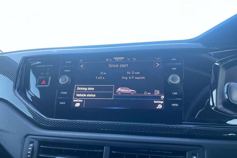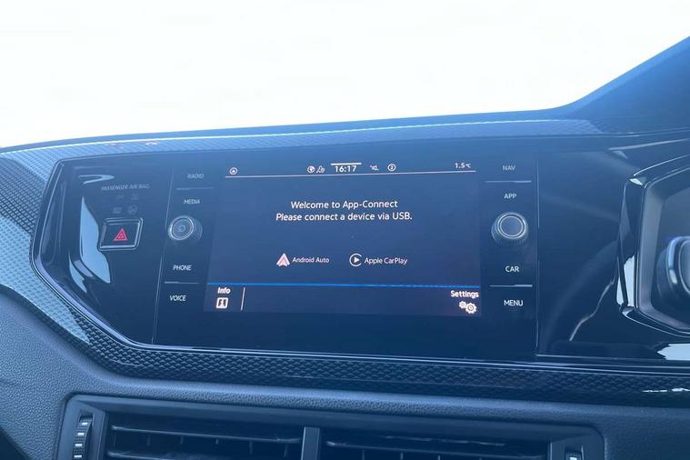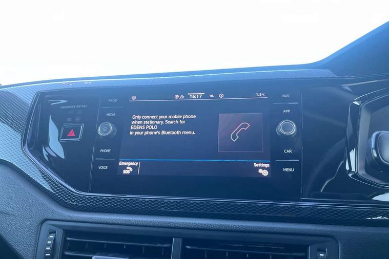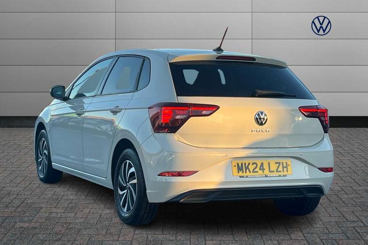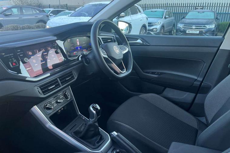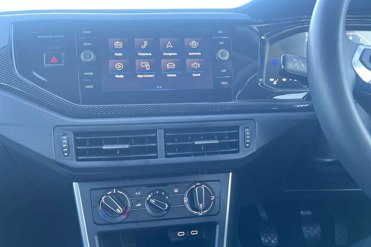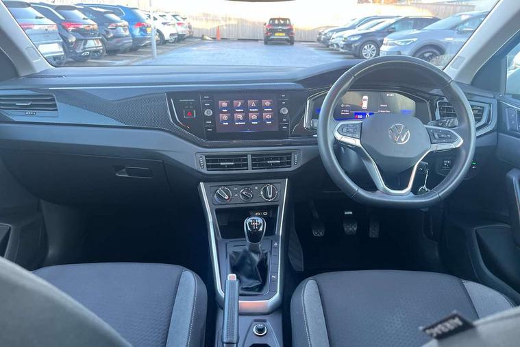Advanced driver attention and drowsiness monitor, Bluetooth mobile phone interface, Cruise control + speed limiter, Dynamic road sign display, Emergency call service, Lane keeping system Lane Assist, Power assisted speed sensitive steering, Preparation for navigation system with media and internet package, Preparation for We connect and We connect plus, Speedo and rev counter, electronic odometer, trip, service interval display and exterior temperature gauge, Standard rear axle, Trip computer, Warning signal and warning light for front and rear seatbelts not fastened, Washer fluid level indicator, Wireless app connect, Front wheel drive, Rear shock absorpion, Start-stop system with battery regeneration (recuperation - energy recovery during braking), DAB Digital radio, Diversity antenna for FM reception, Front and rear 6 speakers, Automatic dimming interior rear view mirror, Automatic headlight control with LED separate daytime running lights with coming/leaving home function, Body colour bumpers with chrome inserts, Body colour door handles, Body colour door mirrors, Electric front windows, Engine badge deletion, Headlight range adjustment, Heat insulating and laminated safety glass windshield, Heat insulating darkened glass in side and rear windows, Heat insulating glass windscreen, LED Headlights, LED rear combination lamps, Power folding adjustable/heated exterior mirrors and front passenger exterior mirror lowering function, Rain sensor, Rear electric windows, Rear fog light, Rear side wing doors, Rear windscreen washer and wiper with interval delay, Third brake light, 12V power socket in centre console, 2 front and 2 rear reading lights with switch off delay and dimmer, 2 USB-C ports in the front, 2 USB-C charging sockets on the center console in the rear, 3 rear head restraints, 60/40 split folding rear seat and rear seat bench not split, Ceramique roof lining, Chrome plated radiator grille inserts, air vent surrounds and light switch surrounds, Door and side trim panel, Driver and front passenger seat height adjustment, Driver/passenger sunvisors with illuminated vanity mirrors, Front centre armrest, Front seat backrest storage pockets, Front standard seats, Handbrake lever handle in leather, Hartley/Thomas cloth upholstery, Headliner in recycled material, Isofix child seat preparation easy-fit (for two outer rear seats, and front passenger seat) compatible with I-size, Leather trimmed gear knob, Luggage compartment cover, Luggage compartment lighting, Removable luggage compartment floor, Single front passenger seat, Standard climatic zones, Standard pedal cluster, Three spoke leather wrapped multifunction steering wheel, Light and vision pack - Polo, 3 point height adj front seatbelts + pretensioners, 3x3 point rear seatbelts, ABS, Driver and front passenger airbag with front passenger airbag deactivation, Drivers and front passengers safety optimised head restraints, ESC (Electronic stability control) + EDL (Electronic Differntial lock) and ASR (Traction control), Extended and predictive pedestrian/ cyclist protection, Front assist with autonomous emergency braking (for Adaptive Cruise Control ACC up to 130 mph), Front curtain and side airbags with center airbag, Front disc brakes, Hill hold control, Manual child lock in rear doors, Rear drum brakes, Single tone horn, Tyre pressure loss indicator, Alarm with interior protection, Anti-theft alarm system with interior monitoring, backup horn, and towing protection, Anti-theft wheel bolts, Electronic engine immobiliser, Lava stone black gloss/matt decorative inserts in dash and front door panels, Low rolling resistance tyres,