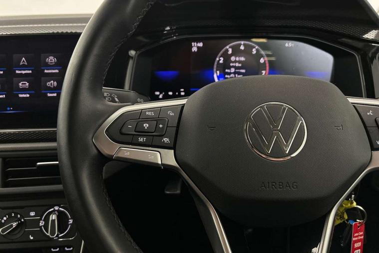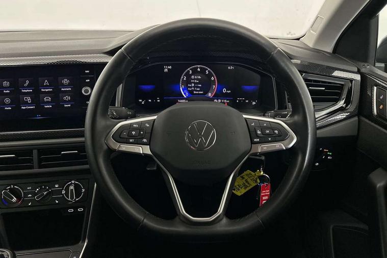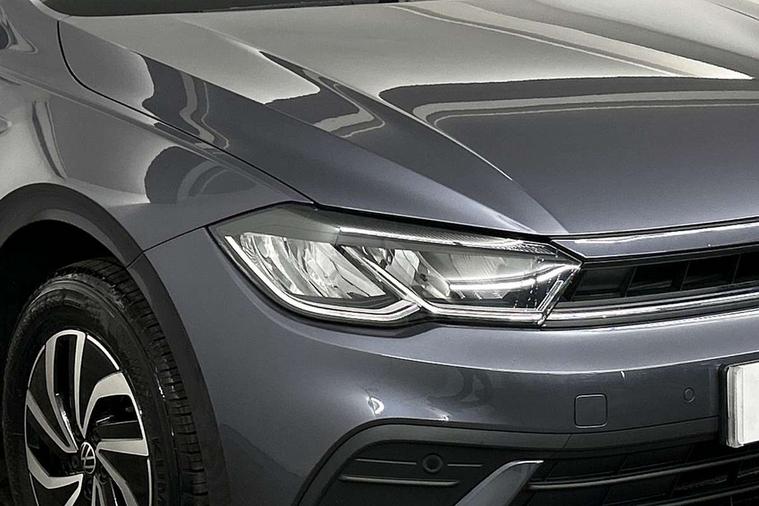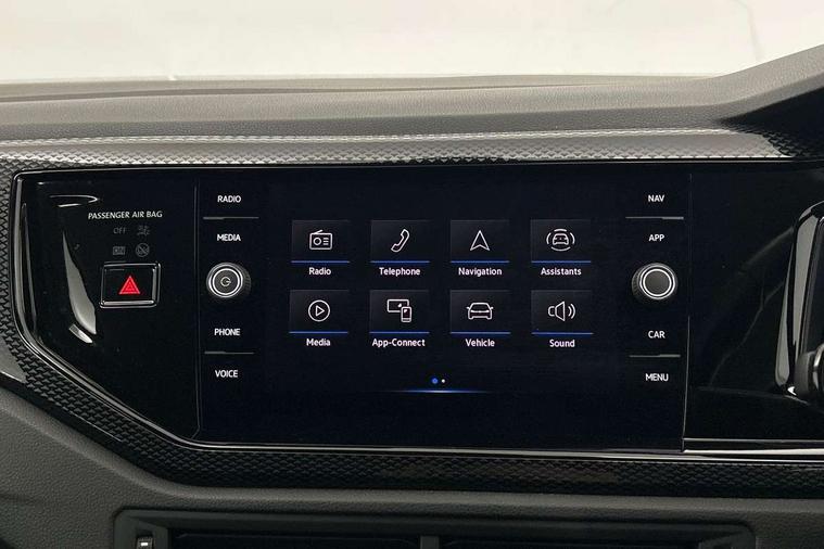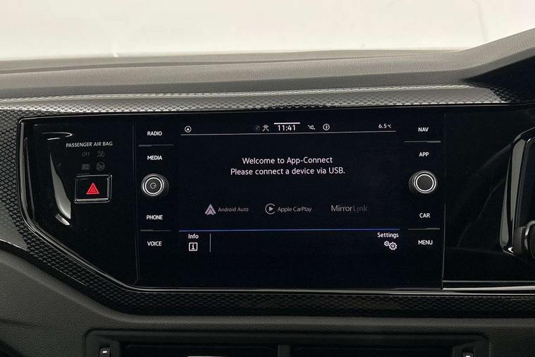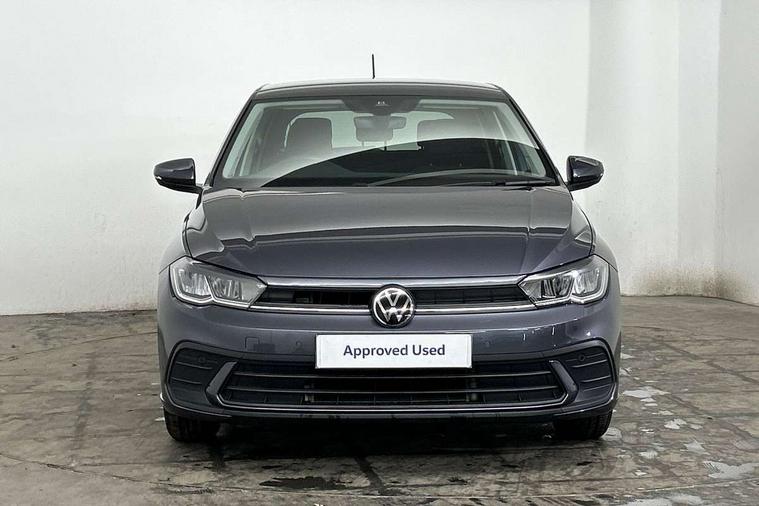 Adaptive cruise control without follow-to-stop and speed limiter, Bluetooth mobile phone interface, Driver alert system, Emergency call service, Front assist system, Power assisted speed sensitive steering, Preparation for We connect and We connect plus, Speedo and rev counter, electronic odometer, trip, service interval display and fuel gauge, Standard rear axle, Travel Assist - Lane keeping system and traffic jam assist, Travel assist including emergency assist, Trip computer, Warning signal and warning light for front and rear seatbelts not fastened, Washer fluid level indicator, Wireless app connect, Front wheel drive, Rear shock absorpion, Start-stop system with battery regeneration (recuperation - energy recovery during braking), DAB Digital radio, Diversity antenna for FM reception, Front and rear 6 speakers, Automatic dimming interior rear view mirror, Body colour bumpers, Body colour door handles, Body colour door mirrors, Electric front windows, Heat insulating darkened glass in side and rear windows, Heat insulating glass windscreen, Power folding adjustable/heated exterior mirrors and front passenger exterior mirror lowering function, Rain sensor, Rear electric windows, Rear fog light, Rear side wing doors, Rear windscreen washer and wiper with interval delay, Third brake light, 12V power socket in centre console, 2 front and 2 rear reading lights, 2 USB-C ports in the front, 2 USB-C charging sockets on the center console in the rear, 3 rear head restraints, 60/40 split folding rear seat and rear seat bench not split, Ceramique headliner, Chrome plated radiator grille inserts, air vent surrounds and light switch surrounds, Door and side trim panel, Driver and front passenger seat height adjustment, Driver/passenger sunvisors with illuminated vanity mirrors, Front centre armrest, Front seat backrest storage pockets, Front standard seats, Handbrake lever handle in leather, Hartley/Thomas cloth upholstery, Isofix child seat preparation easy-fit (for two outer rear seats, and front passenger seat) compatible with I-size, Leather trimmed gear knob, Luggage compartment cover, Luggage compartment floor, Luggage compartment lighting, Multifunction steering wheel, Single front passenger seat, Standard pedal cluster, Light and vision pack - Polo, 3 point height adj front seatbelts + pretensioners, 3x3 point rear seatbelts, ABS, Driver and front passenger airbag with front passenger airbag deactivation, Drivers and front passengers safety optimised head restraints, ESC (Electronic stability control) + EDL (Electronic Differntial lock) and ASR (Traction control), Extended and predictive pedestrian/ cyclist protection, Front curtain and side airbags with center airbag, Front disc brakes, Hill hold control, Manual child lock in rear doors, Rear drum brakes, Single tone horn, Tyre pressure loss indicator, Alarm with interior protection, Anti-theft alarm system with interior monitoring, backup horn, and towing protection, Anti-theft wheel bolts, Electronic engine immobiliser, Lava stone black gloss/matt decorative inserts in dash and front door panels, Low rolling resistance tyres,